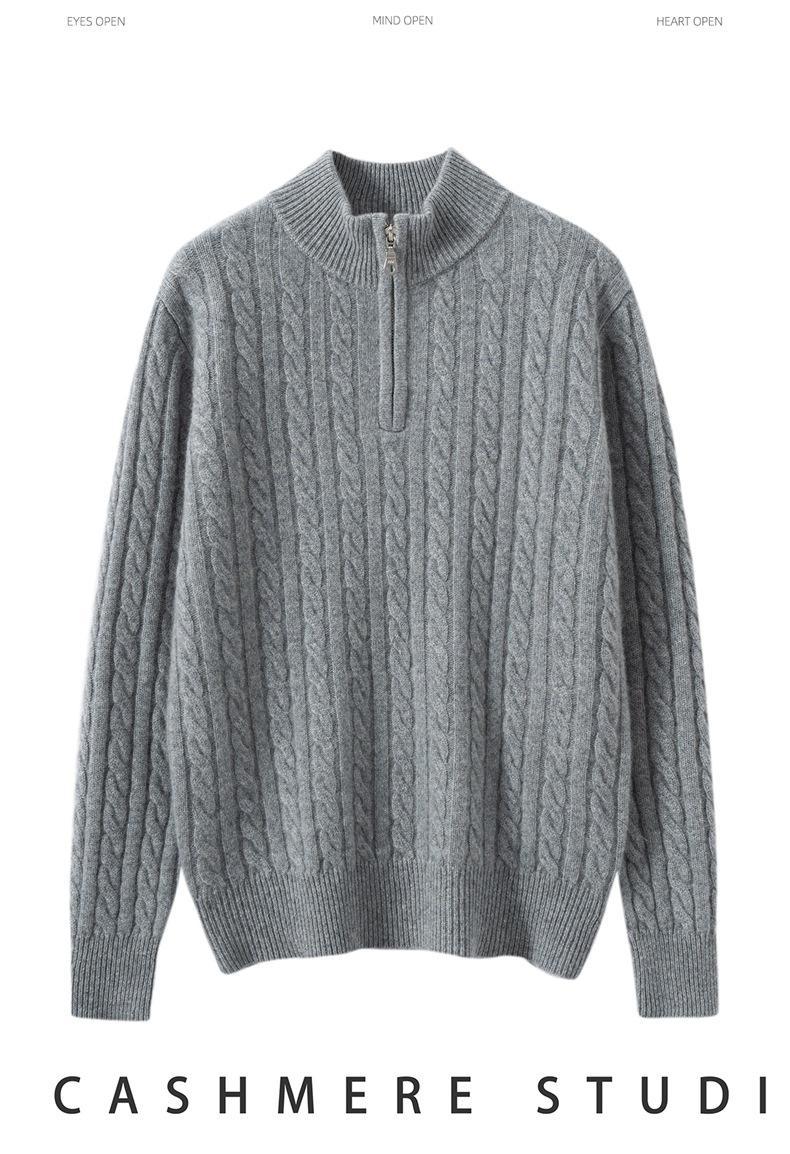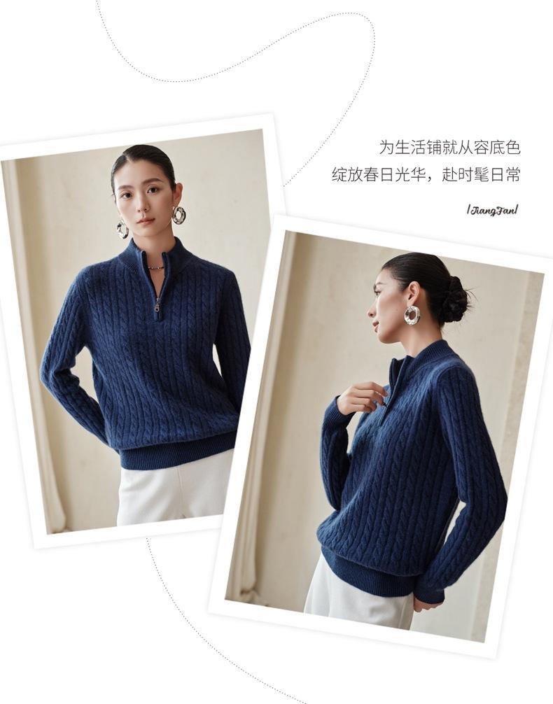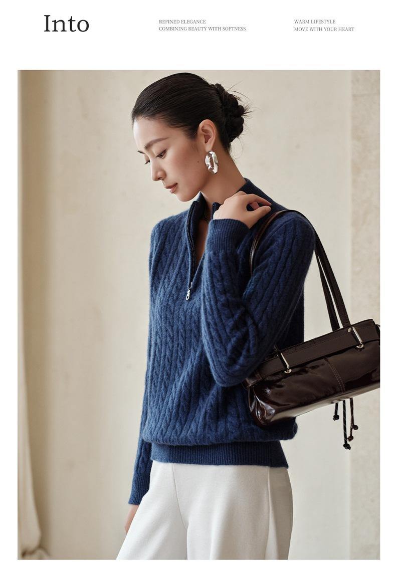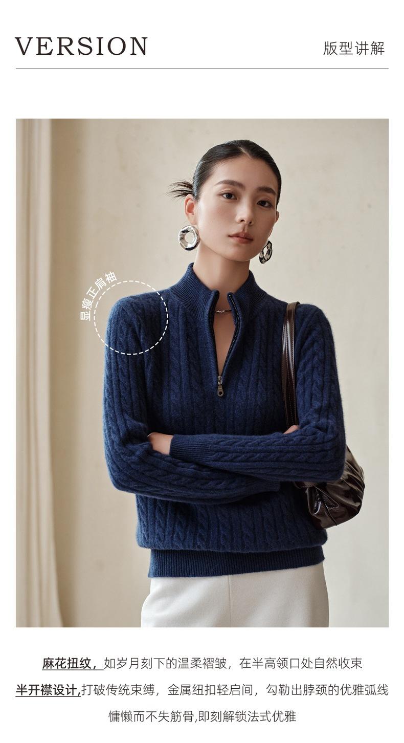 Suéter de cachemira para mujer 100% cachemira pura otoño e invierno nuevo semic cuello alto medio abierto manga larga jersey suéter tejido de cable