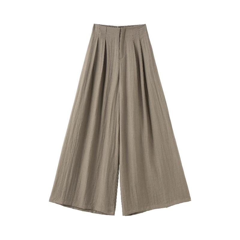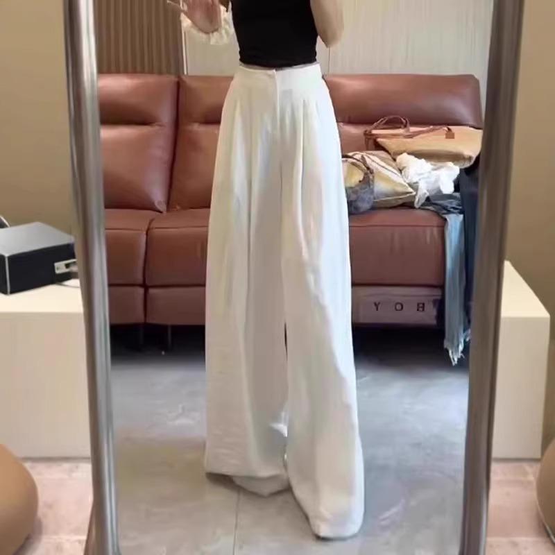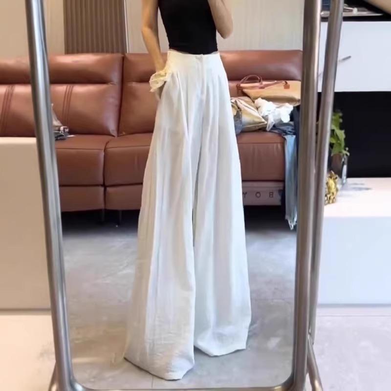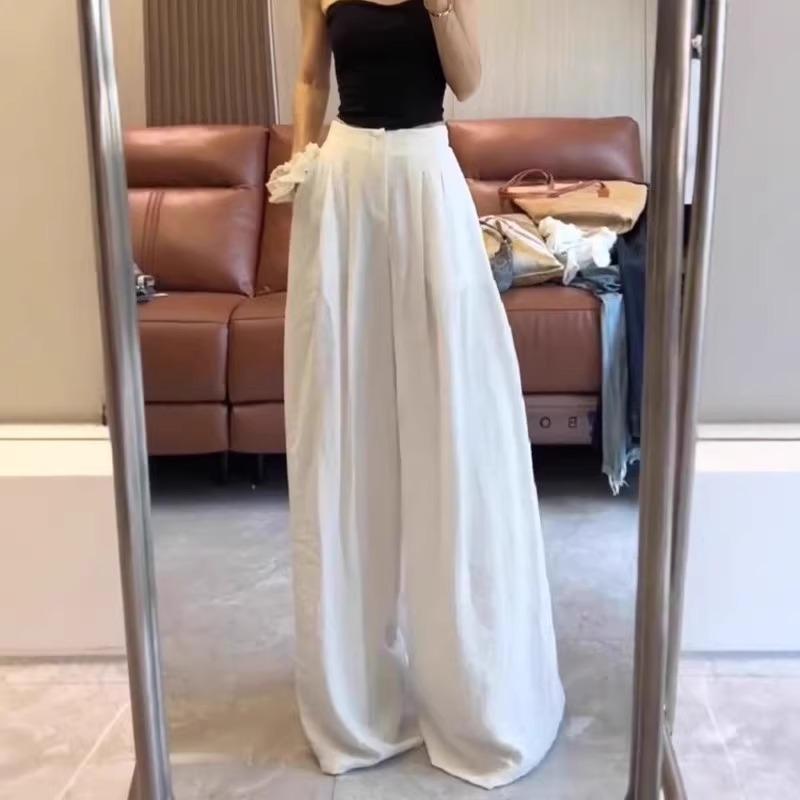 Pantalones blancos casuales de pierna ancha para mujer, verano nuevos pantalones casuales drapeados de cintura alta, pantalones Petite Yamamoto, pantalones falda hasta el suelo