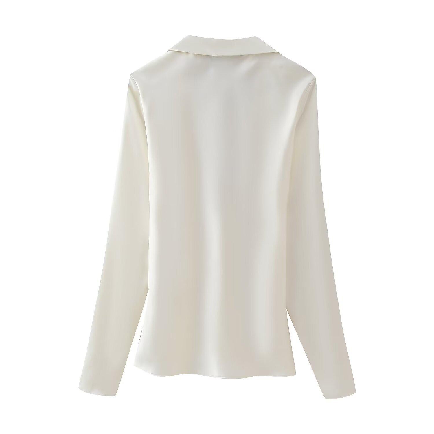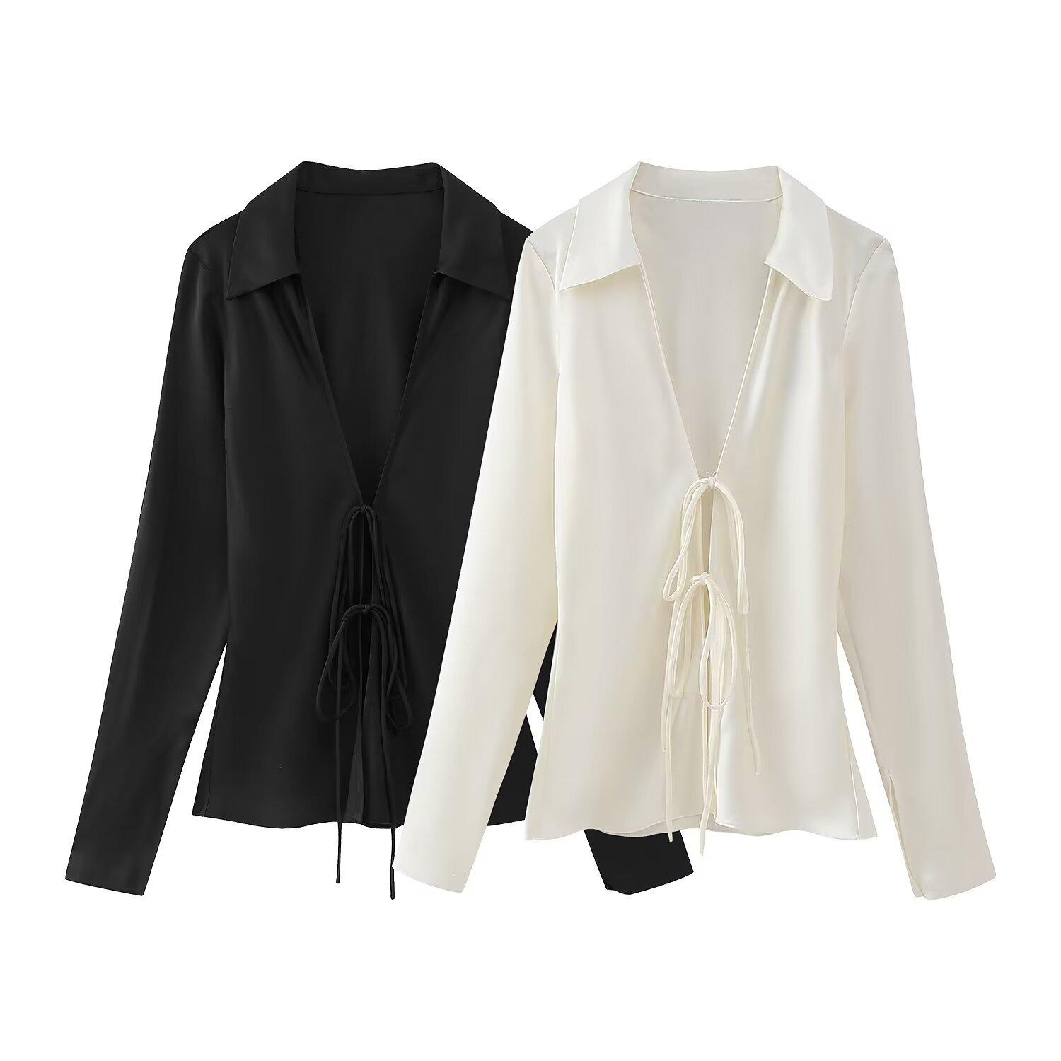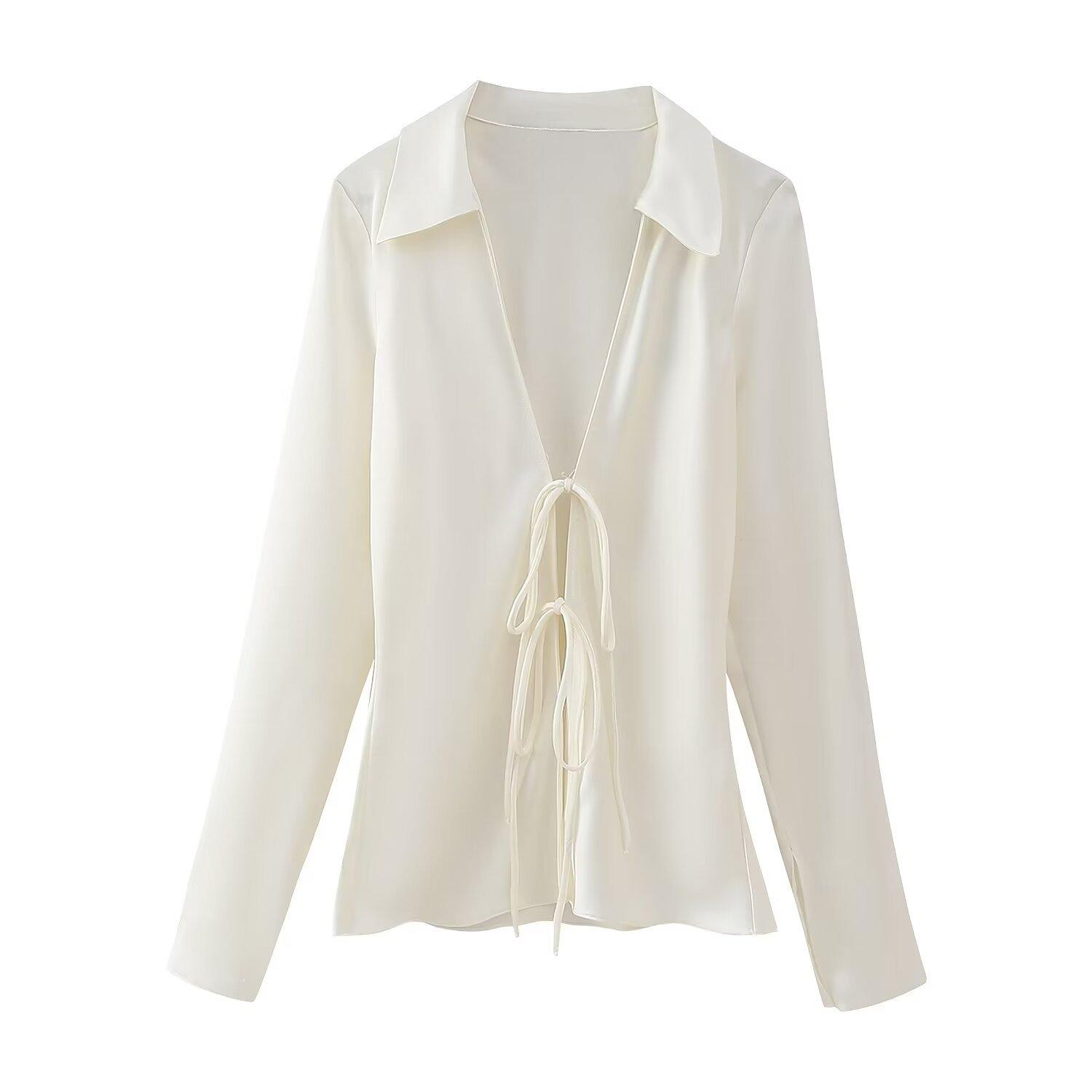 Amazon Comercio Exterior Transfronterizo Ropa Europea y Americana Primavera y Verano Nuevo Estilo Europeo y Americano Camisa de Satén de Seda con Lazo