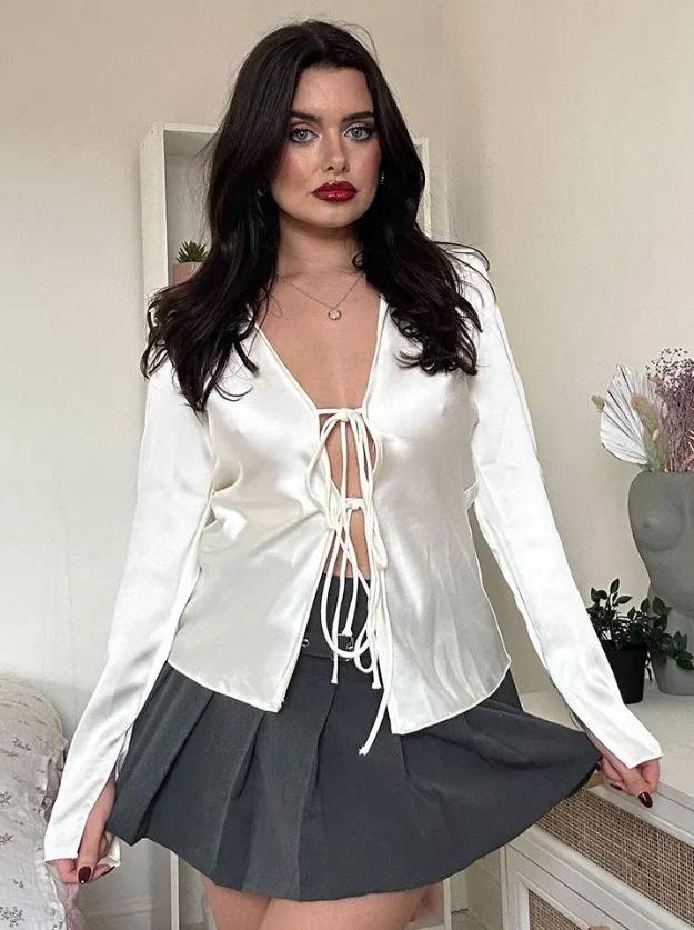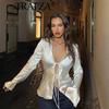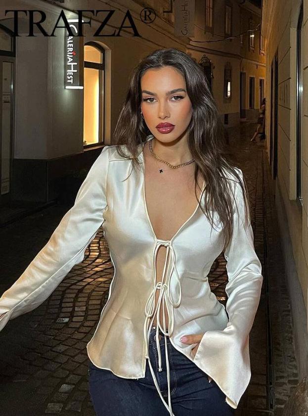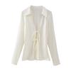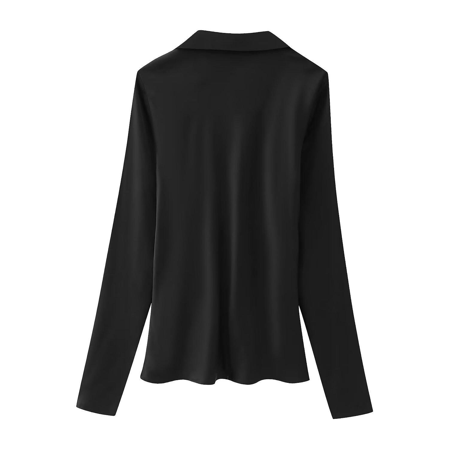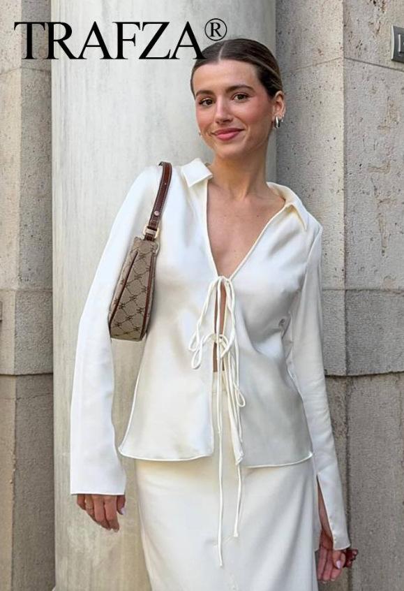Amazon Comercio Exterior Transfronterizo Ropa Europea y Americana Primavera y Verano Nuevo Estilo Europeo y Americano Camisa de Satén de Seda con Lazo