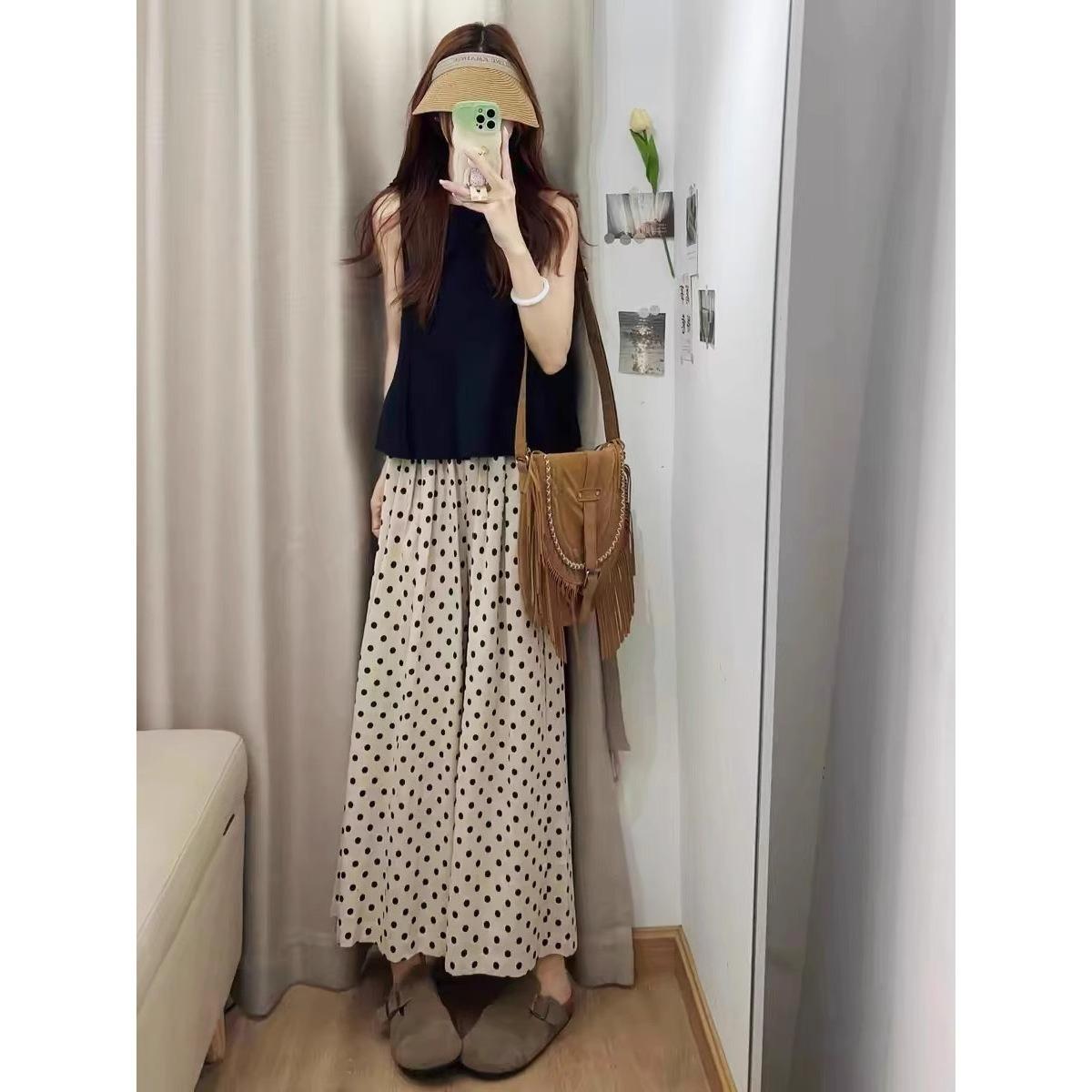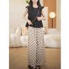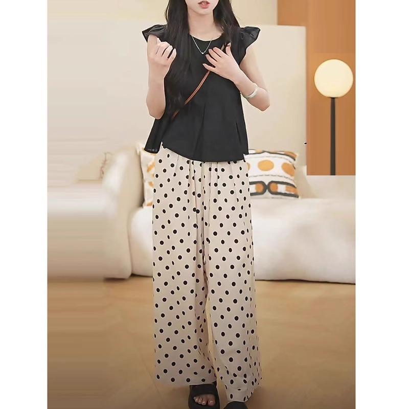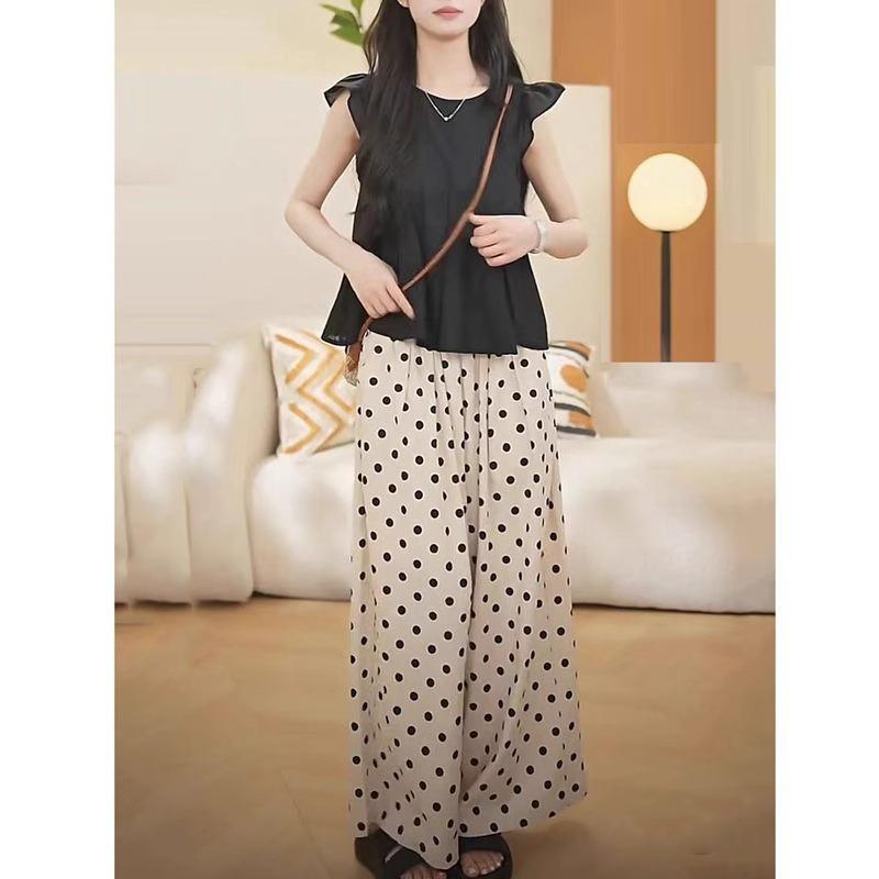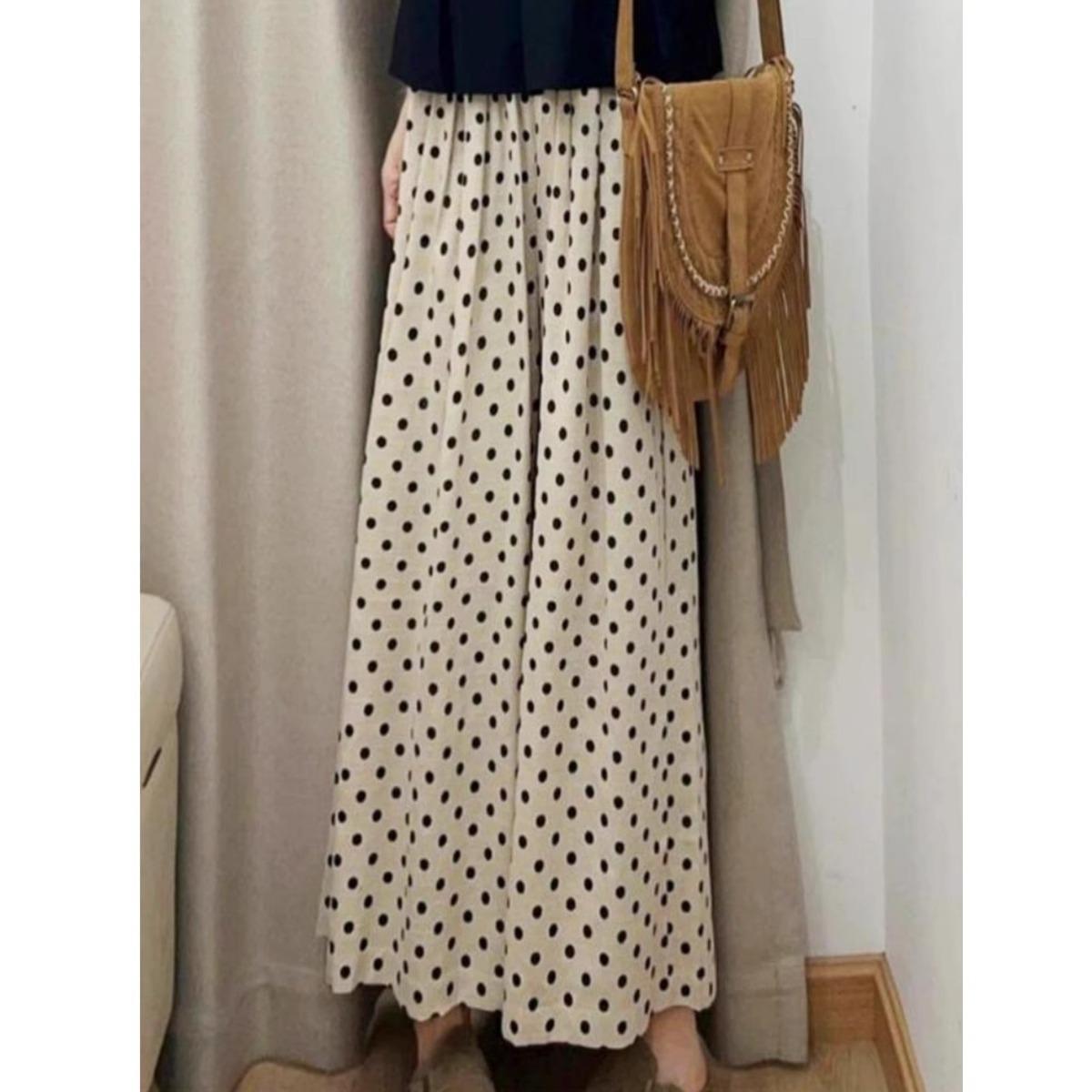 2025 Nuevo Pantalón Casual de Nueve Puntos con Lunares Albaricoque para Mujer Talla Grande Chica Gorda mm Cintura Alta Suelto Look Adelgazante Pantalones de Pierna Ancha