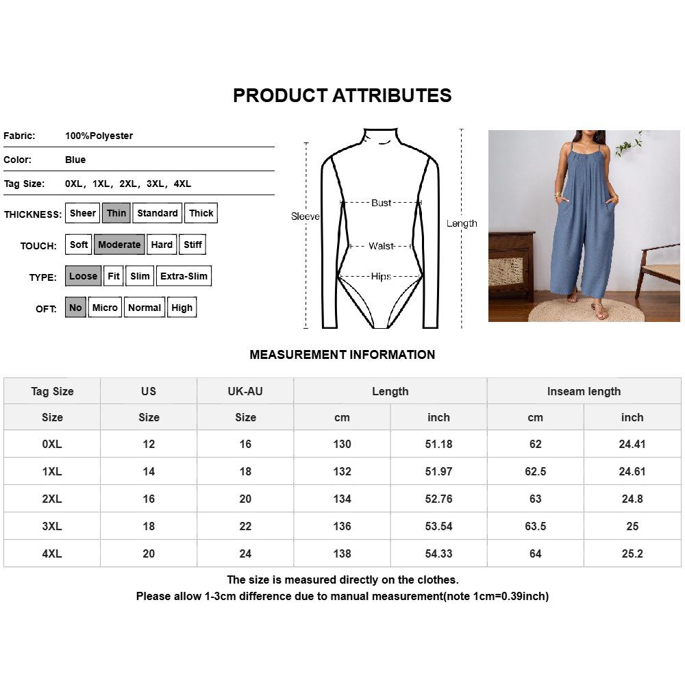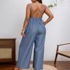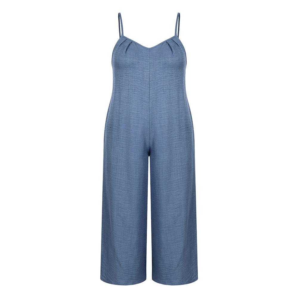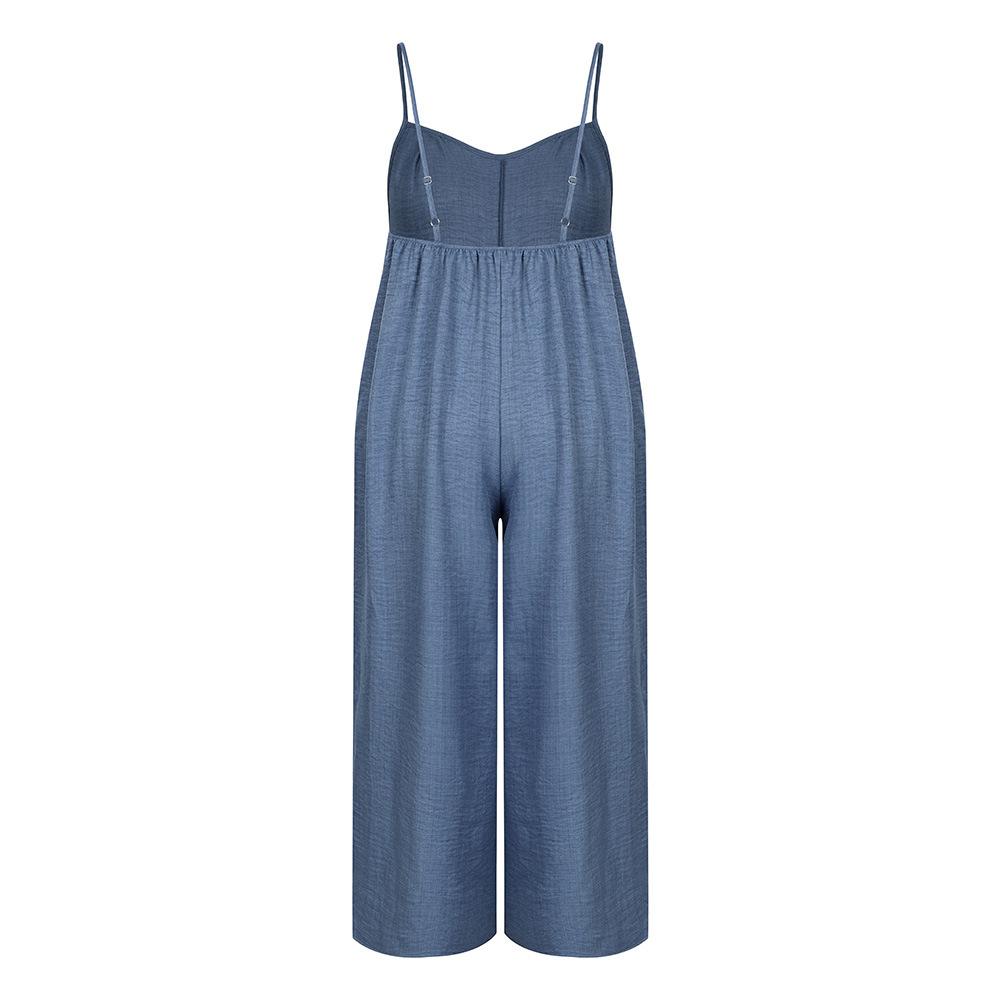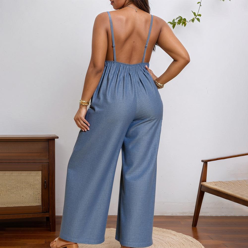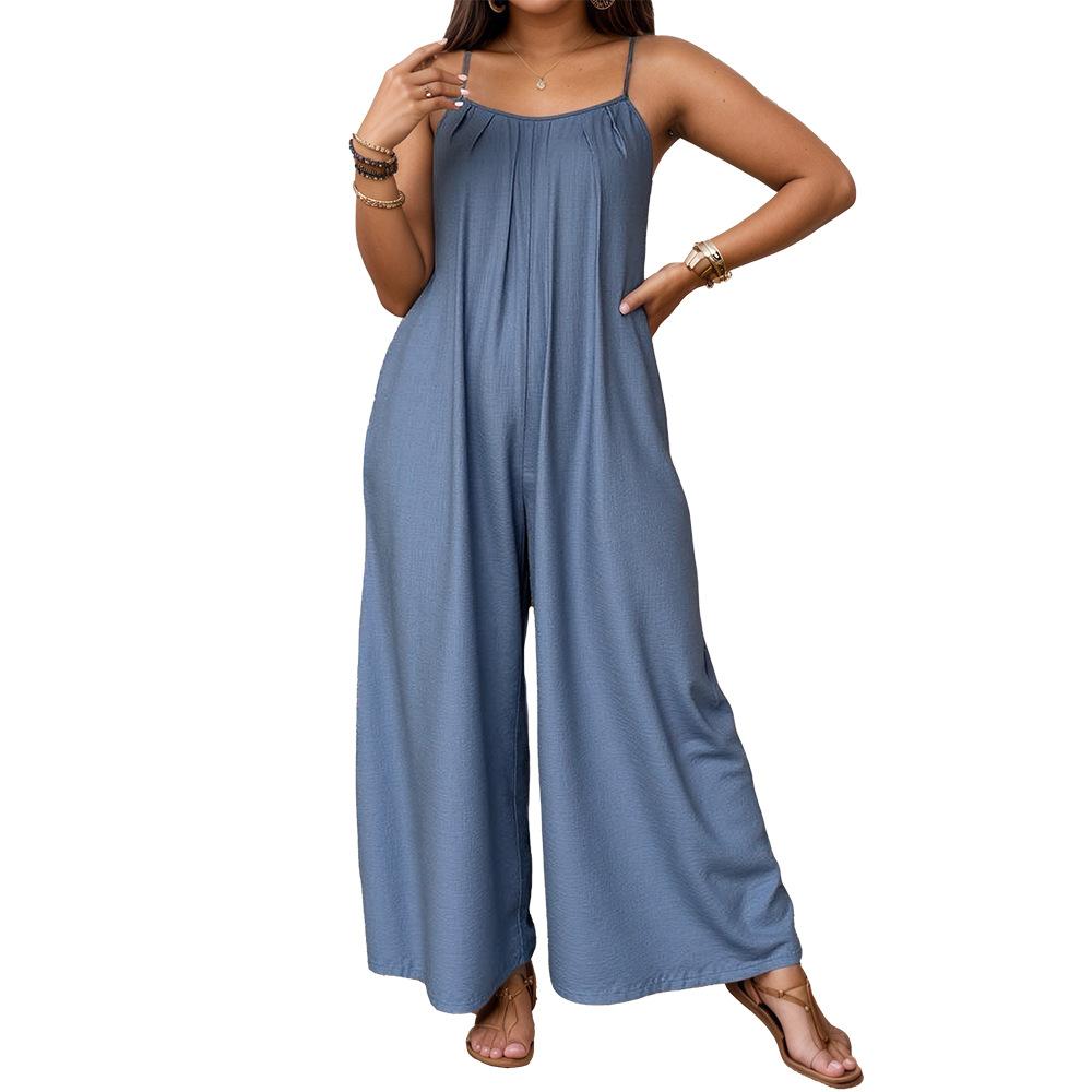 2025 Europeo y Americano Transfronterizo Amazon Talla Grande Vacaciones Casual Suelto Sin Espalda Bolsillo Tirante Ajustable Mono Verano