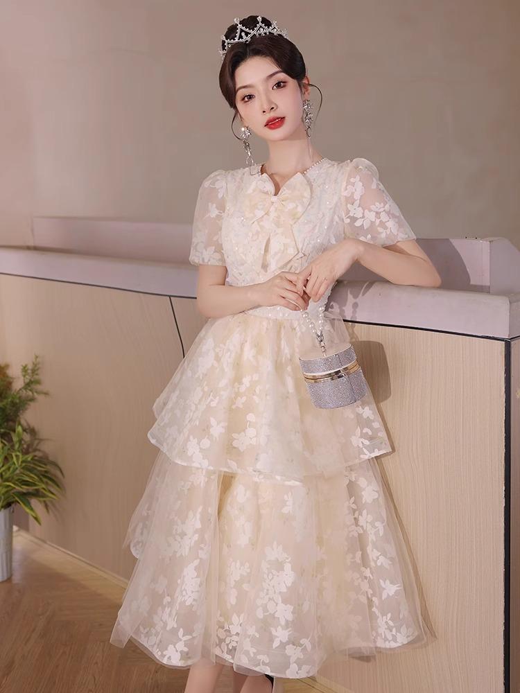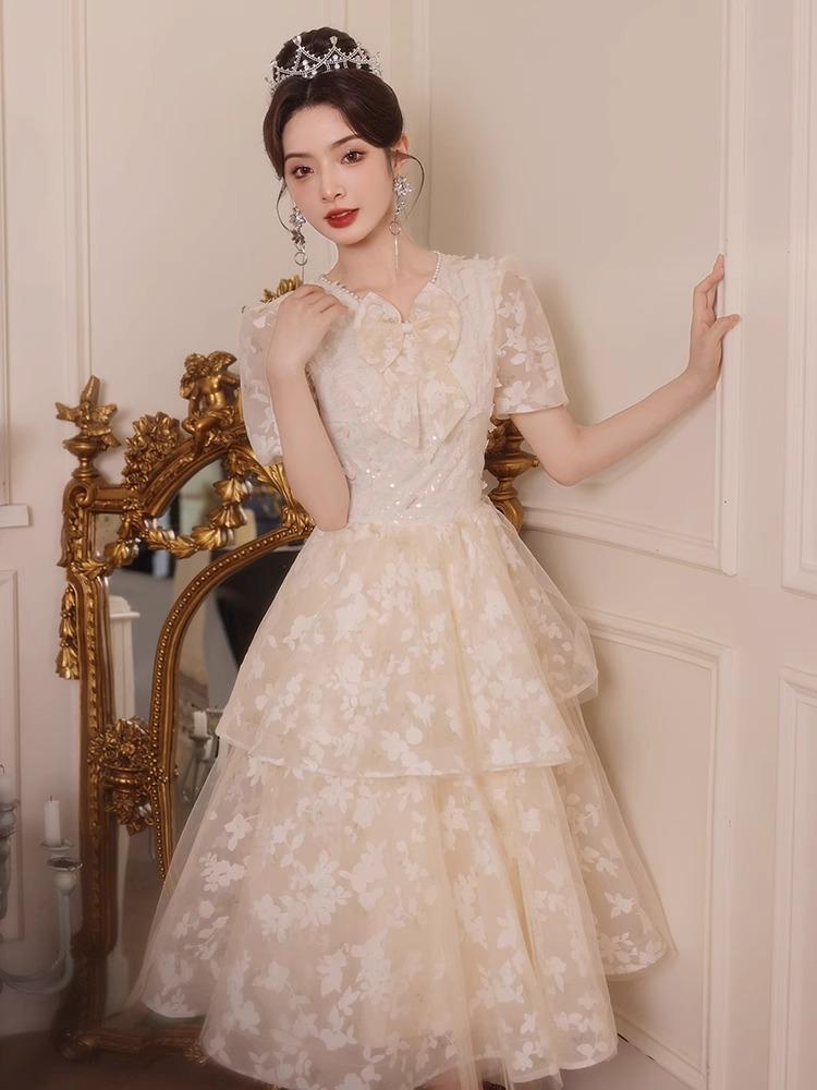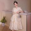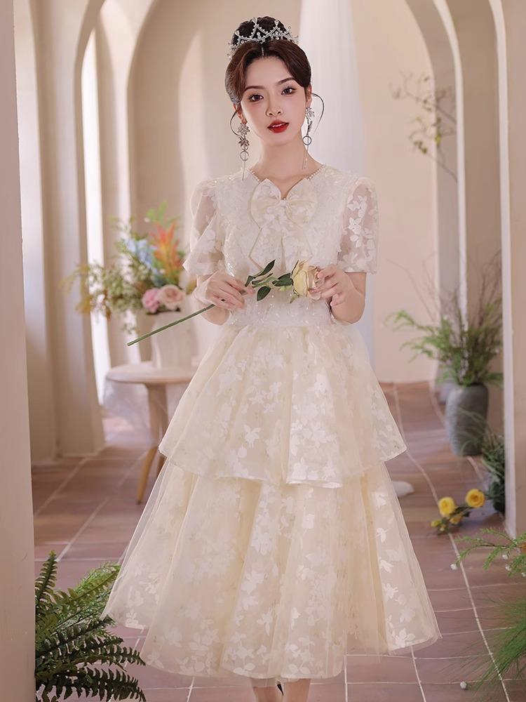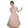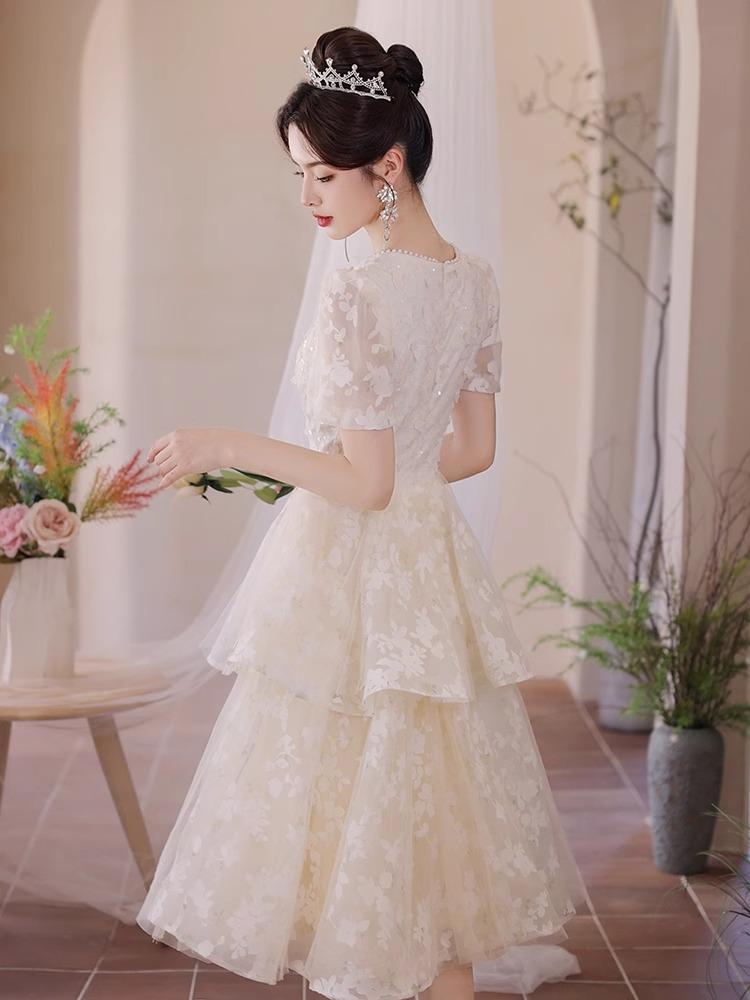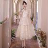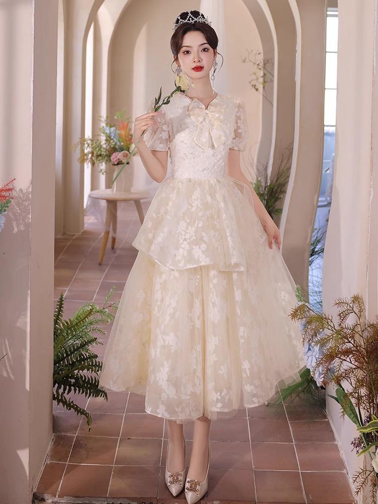 Vestido de Banquete 2025 Nuevo Estilo Champán Corto Vestido Poncho Vestido Arte Prueba Adulto Ceremonia Vestido de Fiesta