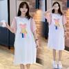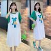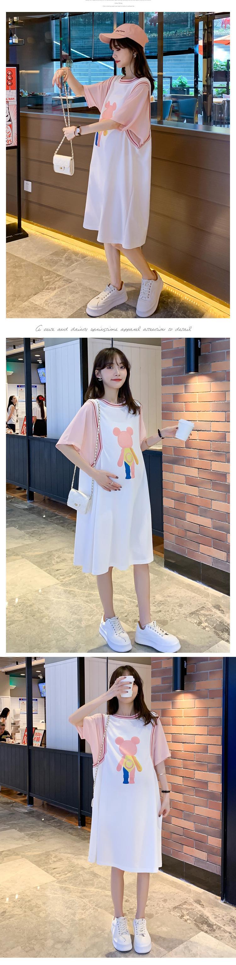 Vestido de Maternidad Verano Nuevo Estilo Largo Medio Verano Delgado Talla Grande Traje Camiseta de Moda para Embarazo Mamá