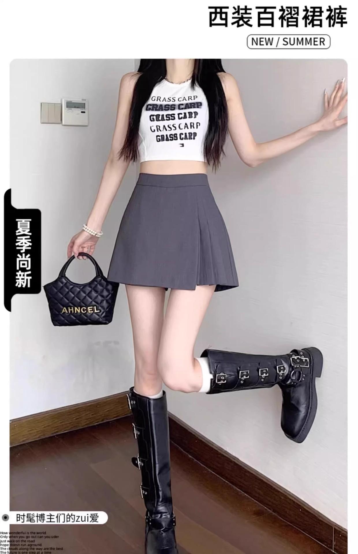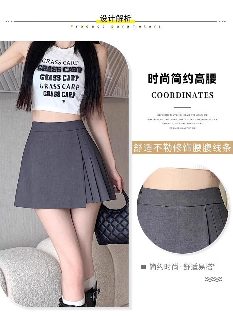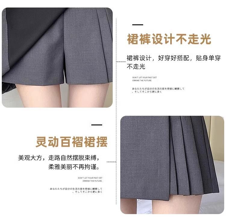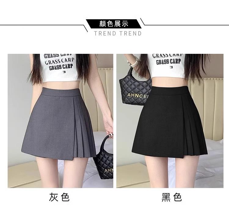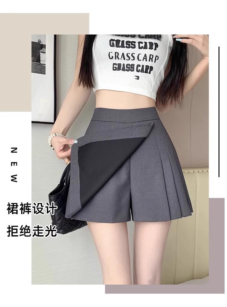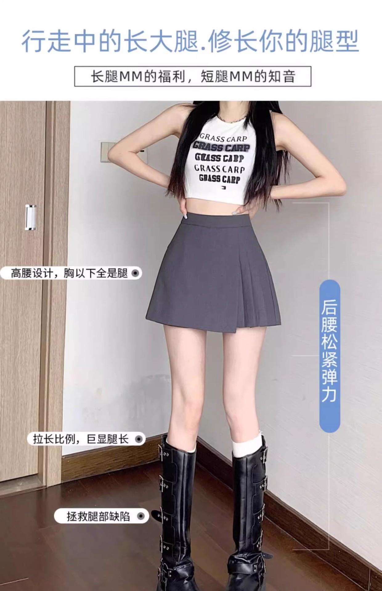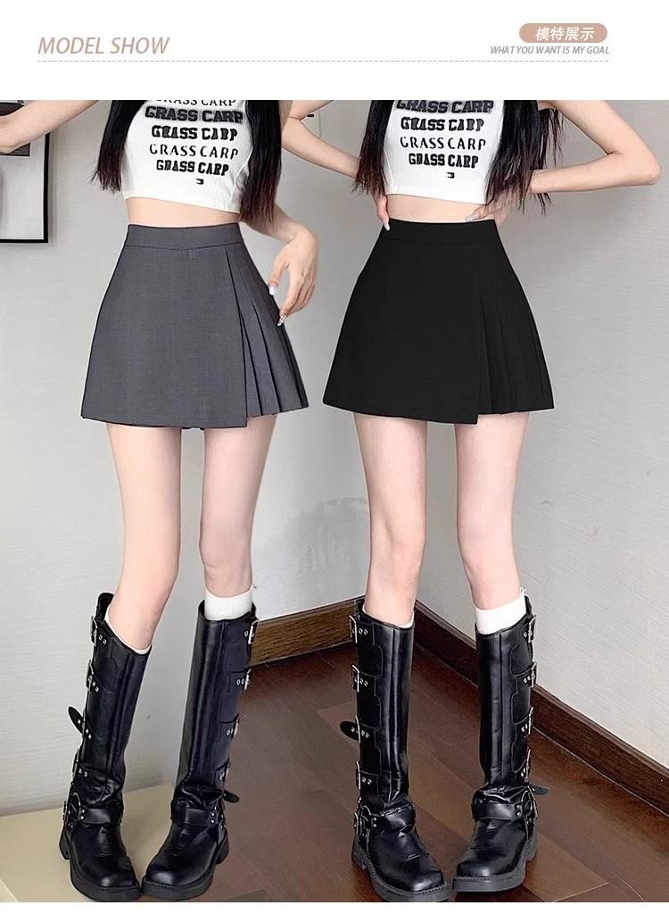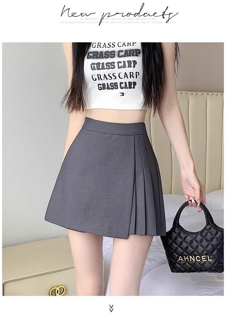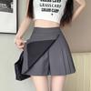 Falda Midi de Traje Gris Irregular para Mujer Verano Petite Adelgazante Cintura Alta Plisada Pantalón Falda Corta Línea A