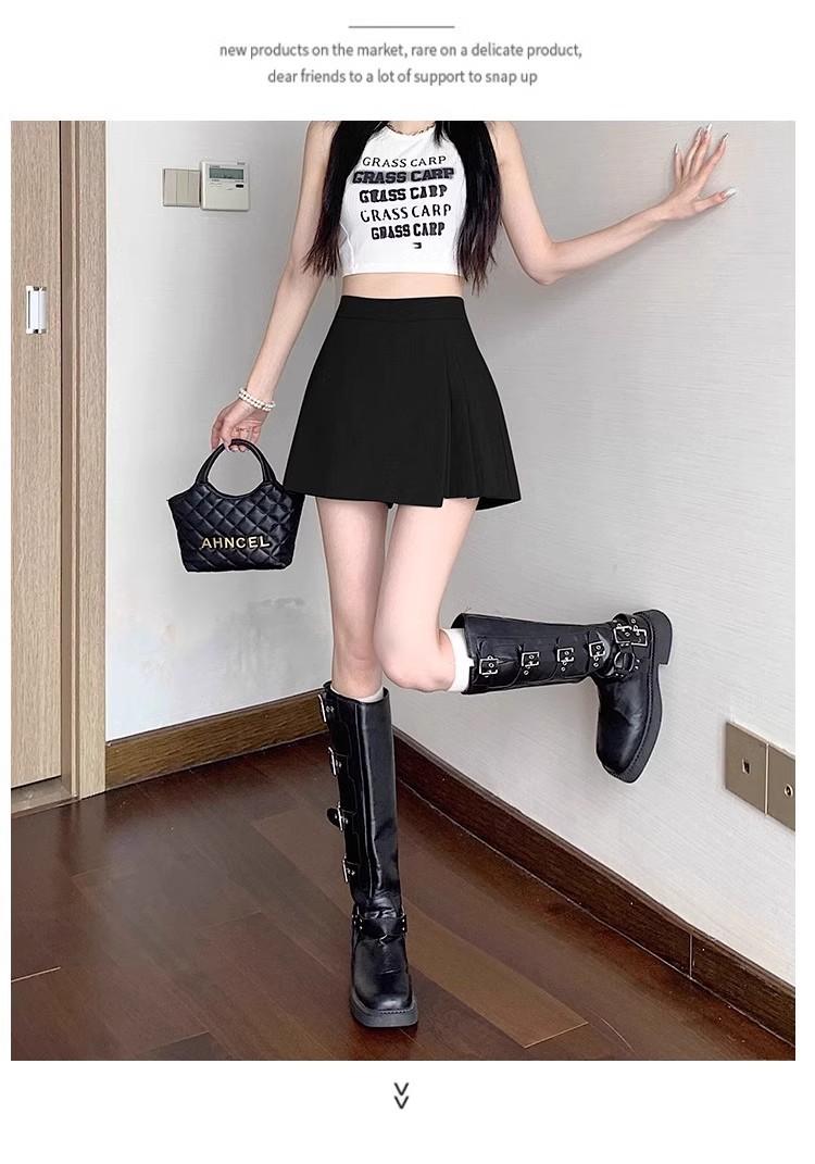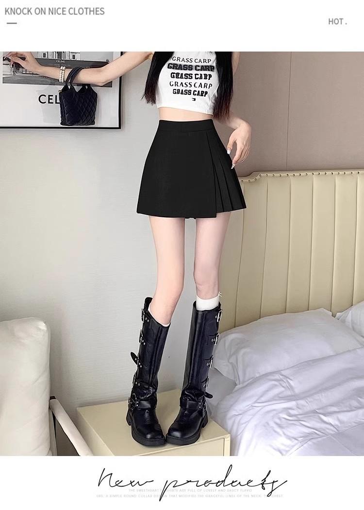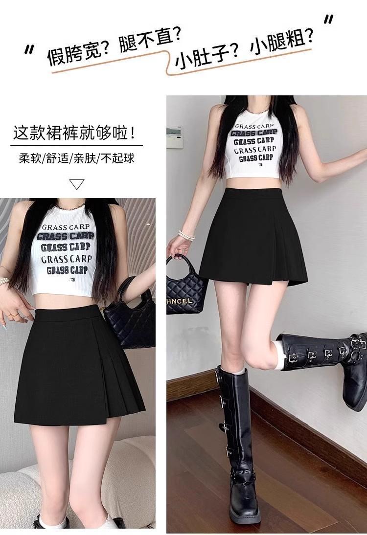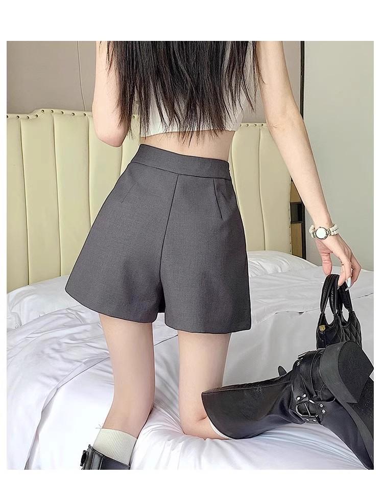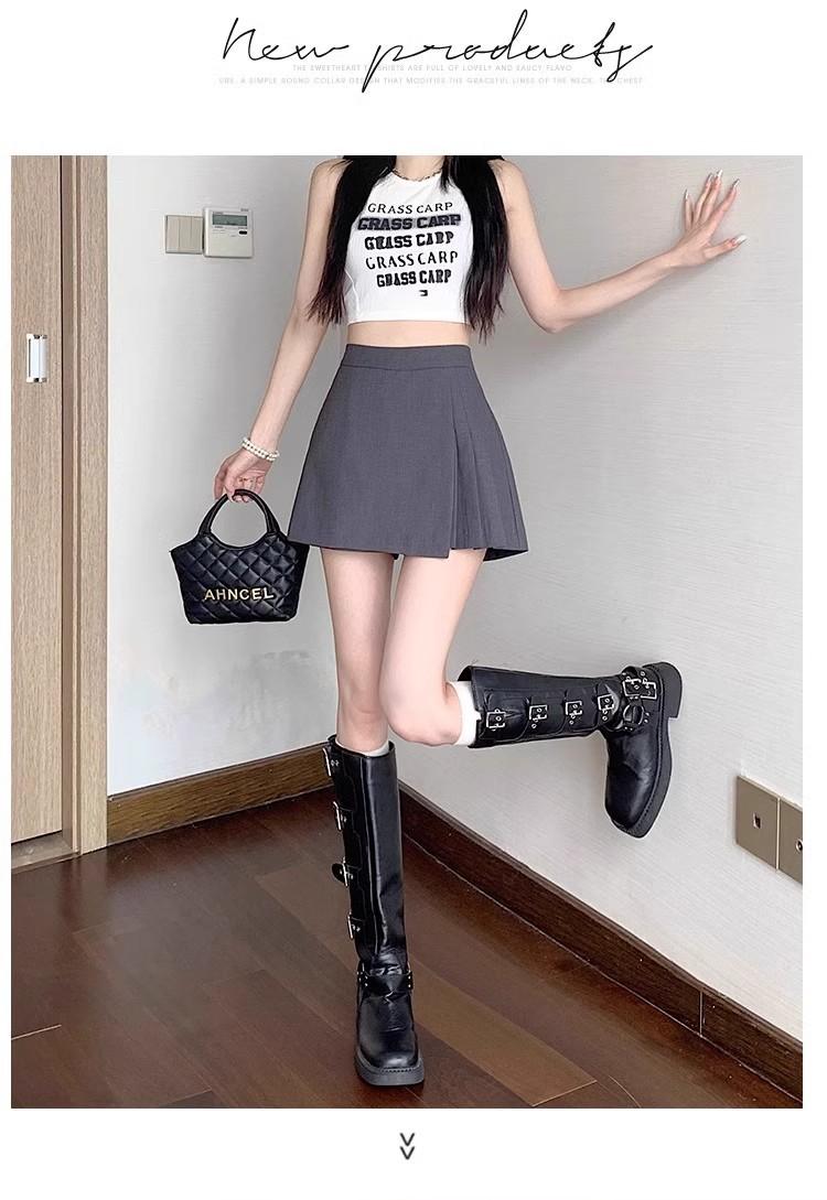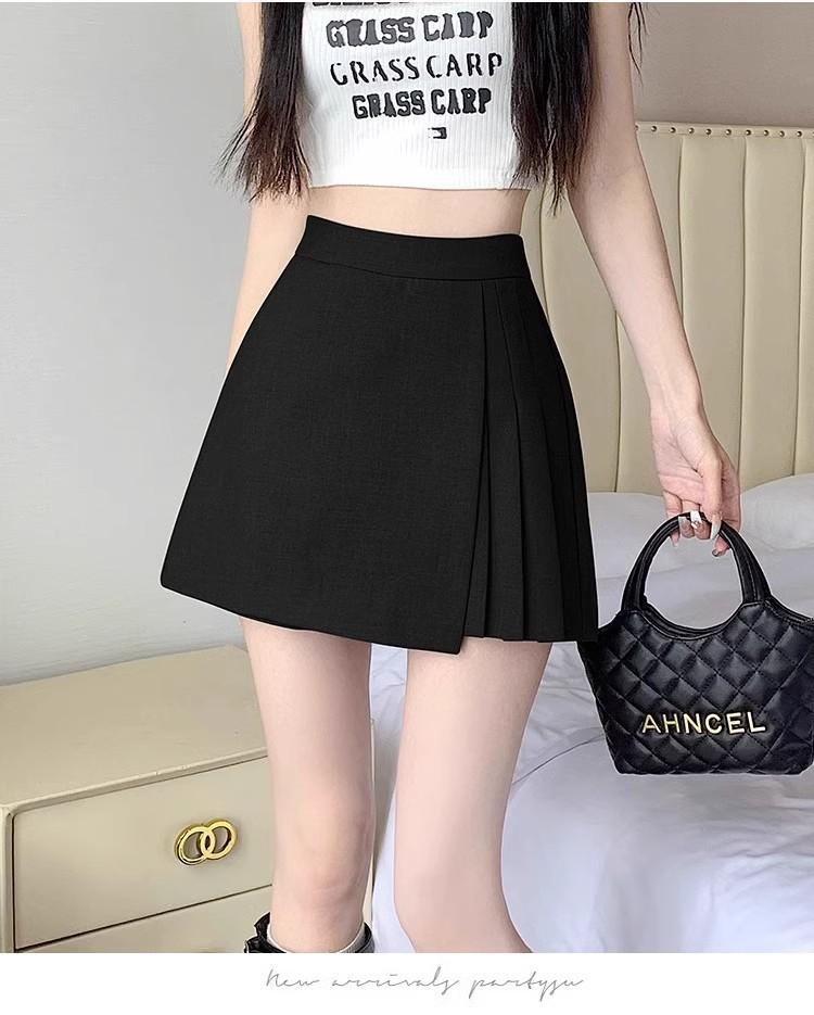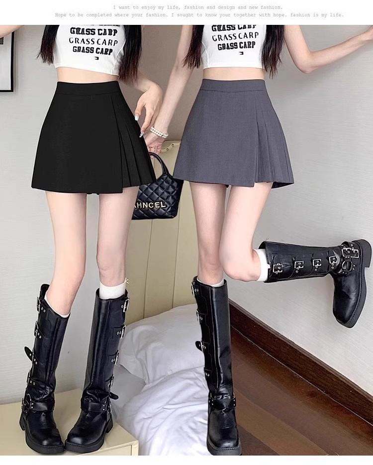Falda Midi de Traje Gris Irregular para Mujer Verano Petite Adelgazante Cintura Alta Plisada Pantalón Falda Corta Línea A