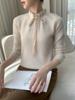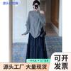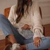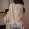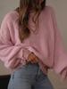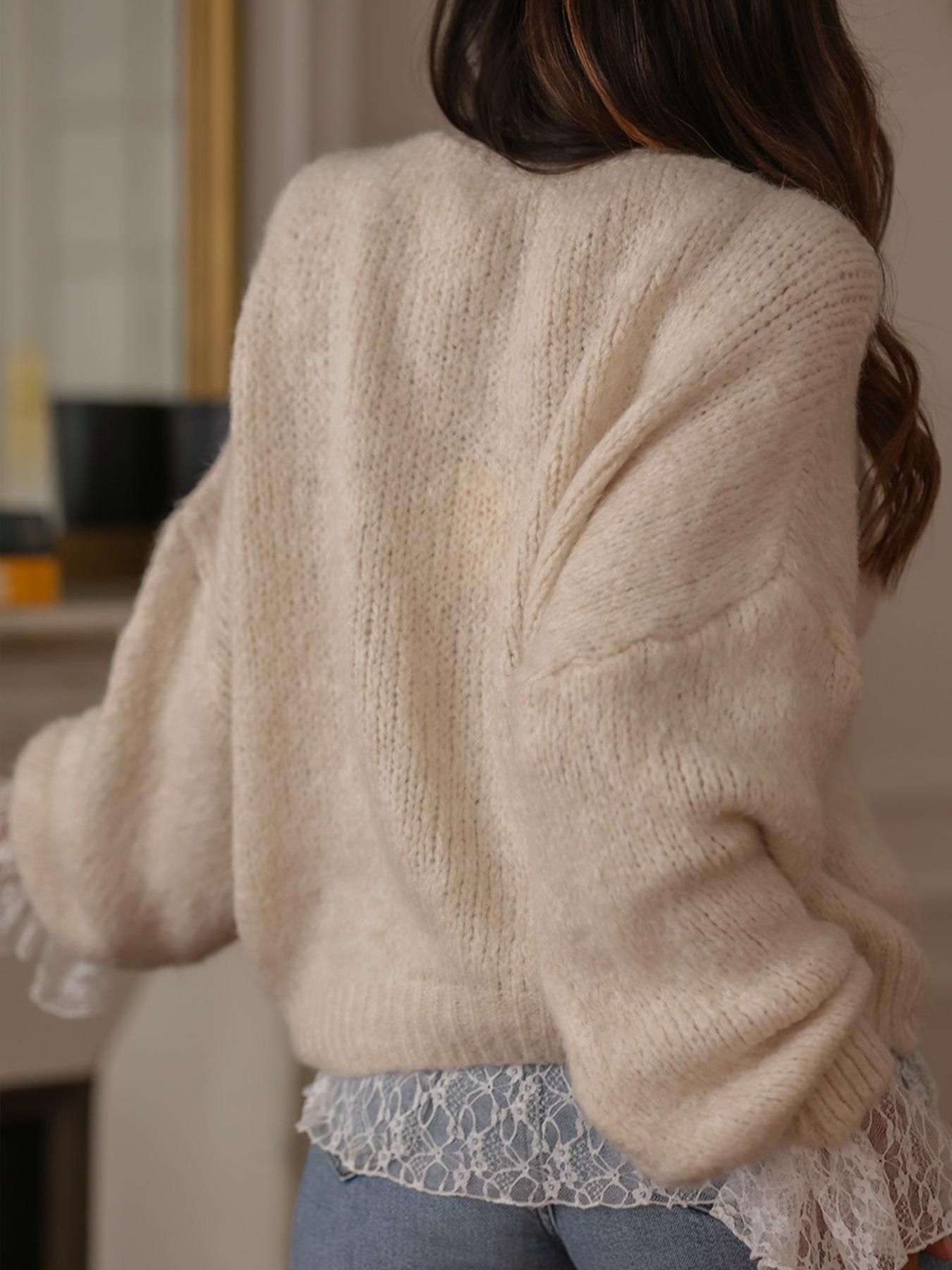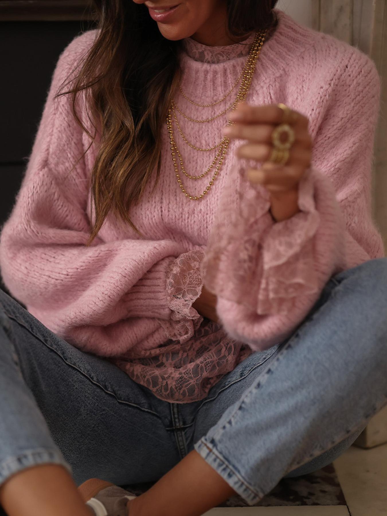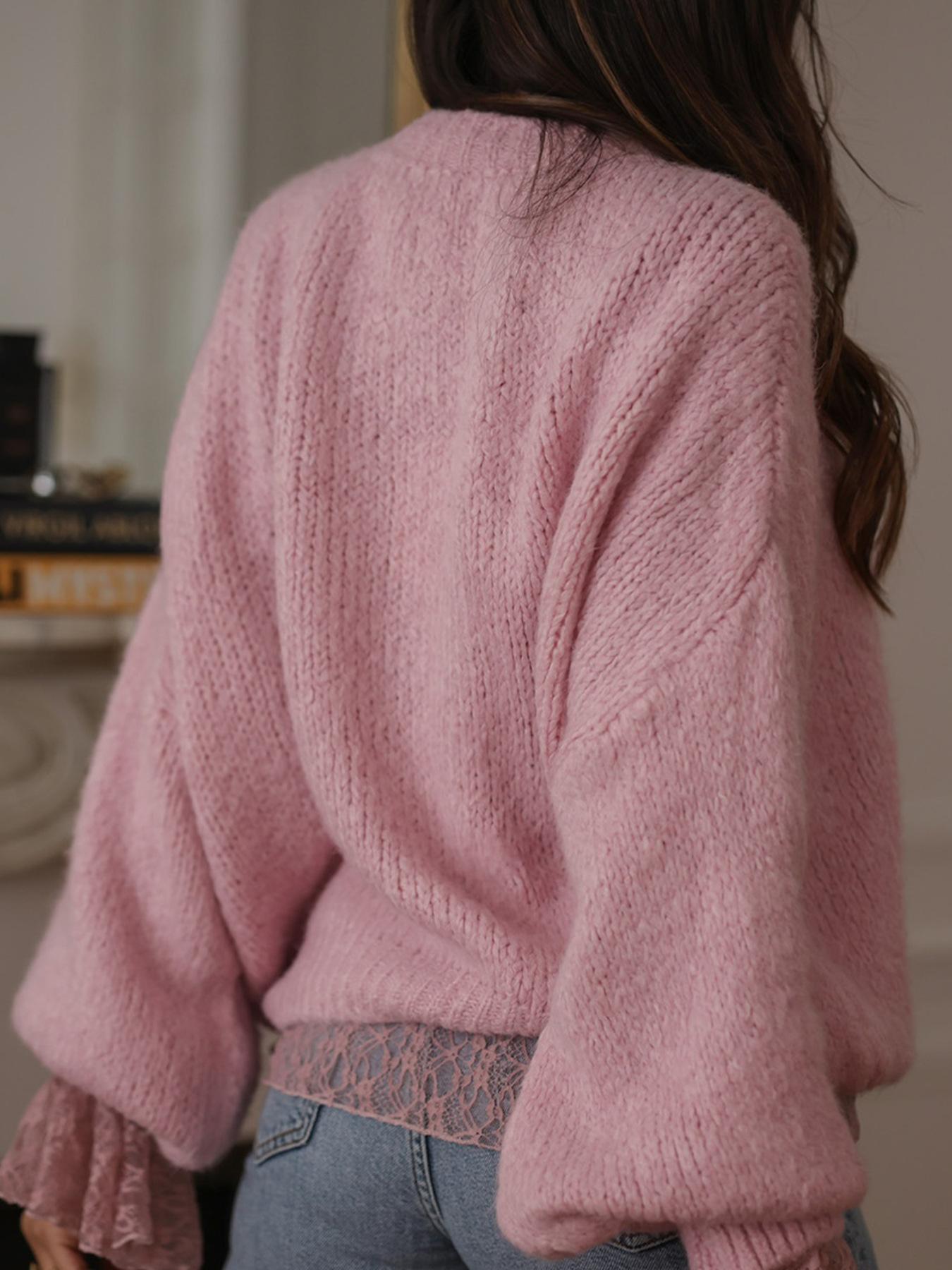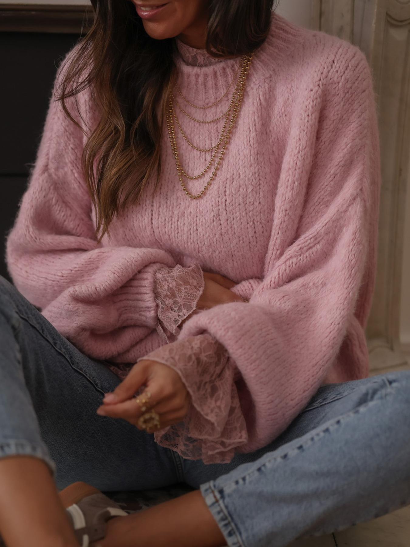 Suéter de Punto Holgado de Cuello Redondo para Mujer de Alta Gama con Manga de Encaje Estilo Perezoso Otoño e Invierno Color Puro Suave y Ceroso