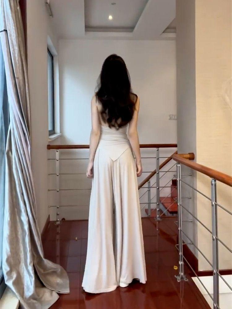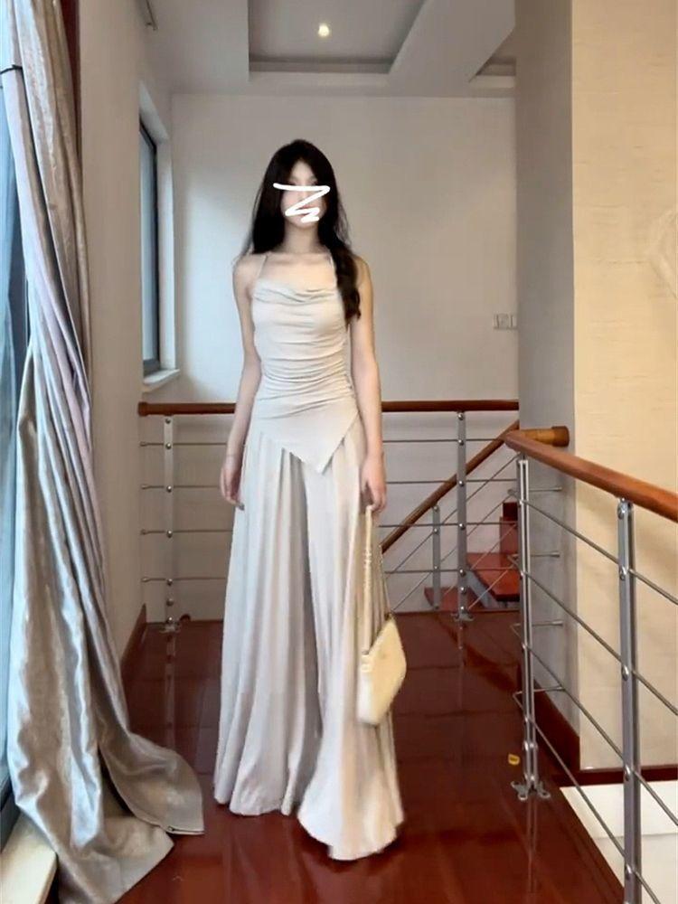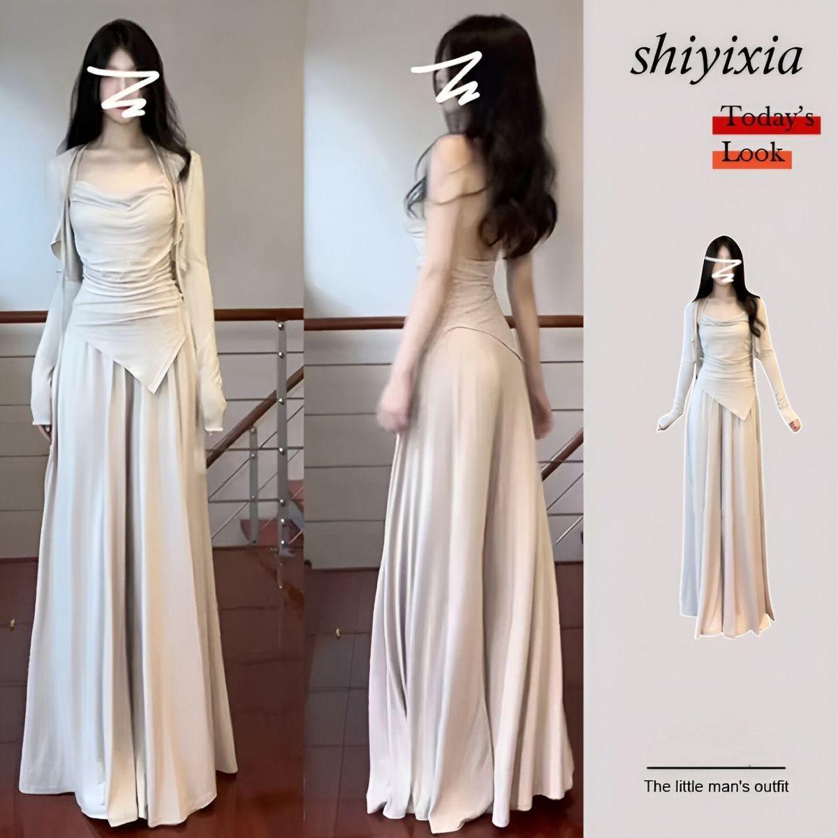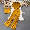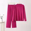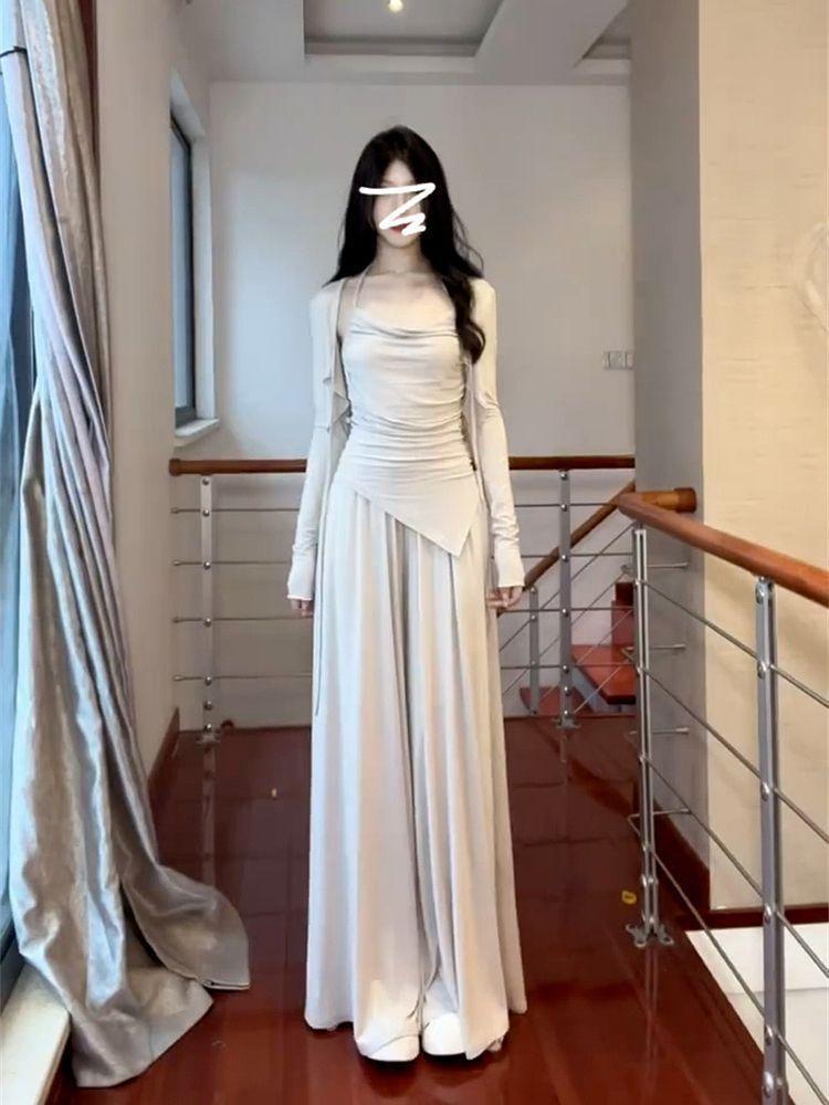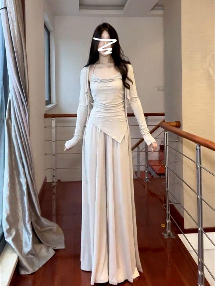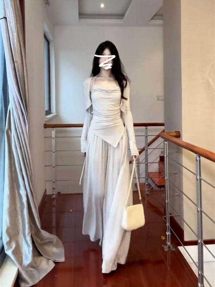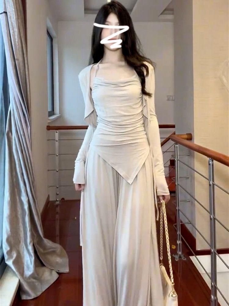 Conjunto de Mujer Primavera Verano Otoño Nuevo Camisola Irregular Manga Larga Cárdigan Cintura Alta Pantalones de Pierna Ancha Pantalones Largos Conjunto de Tres Piezas