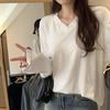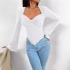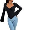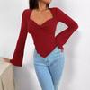 Camiseta de Mujer de Comercio Exterior Europeo y Americano 2024 Vacaciones Cuello en V Manga Campana Cintura Irregular Tejido de Punto Manga Larga