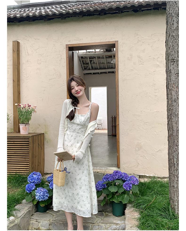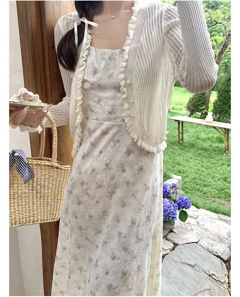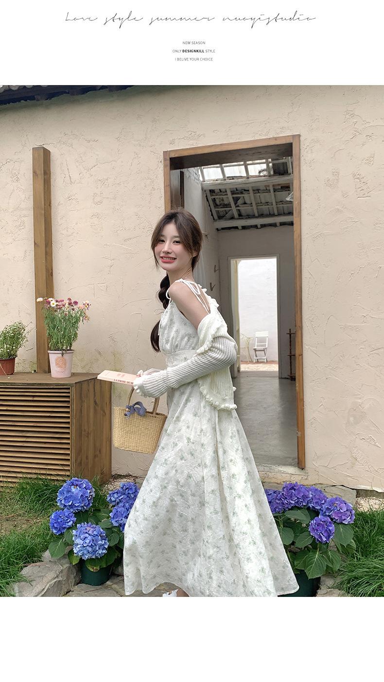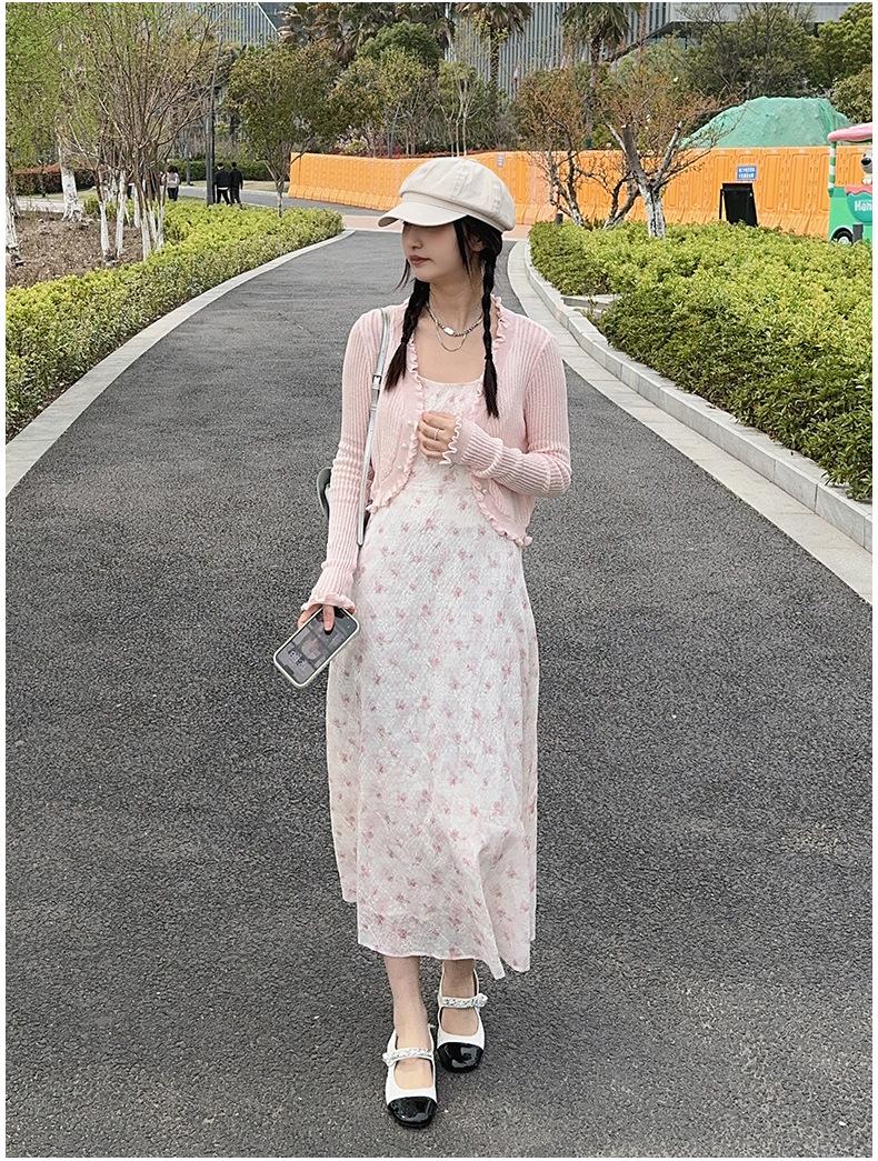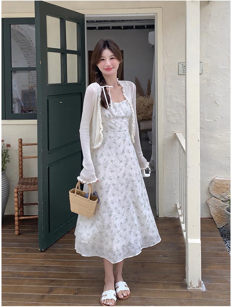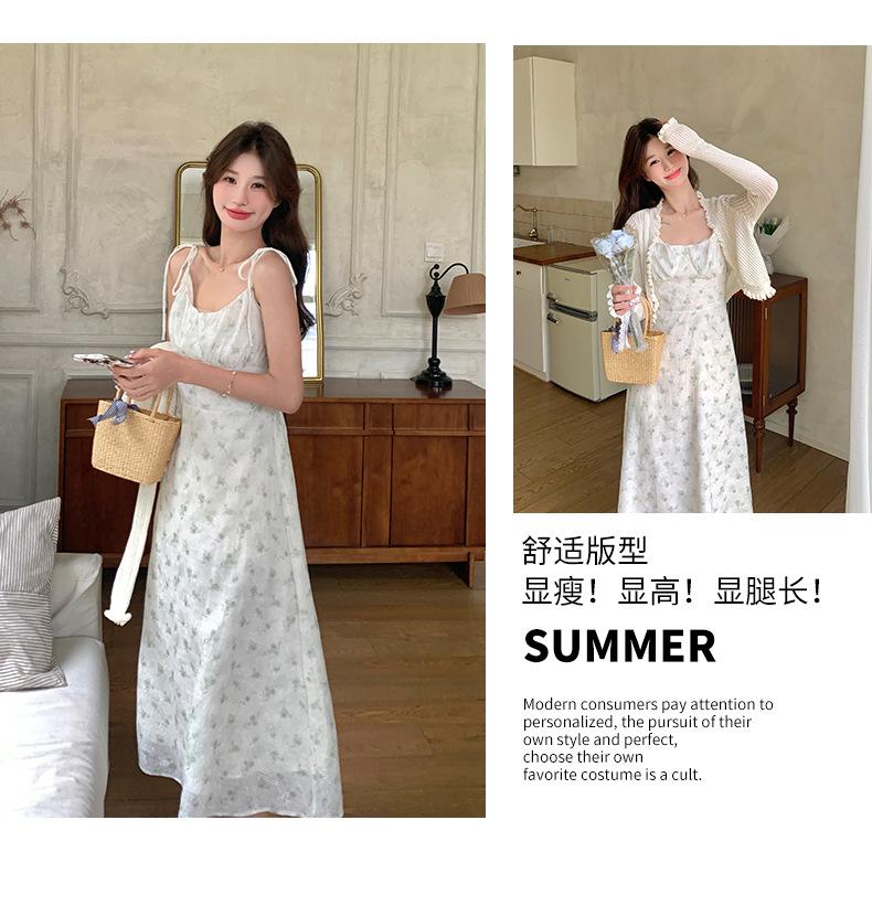 2025 Nueva Moda de Verano Casual Versátil Reductor de Edad Vestido Floral con Tirantes + Traje Cárdigan Protección Solar Moderno