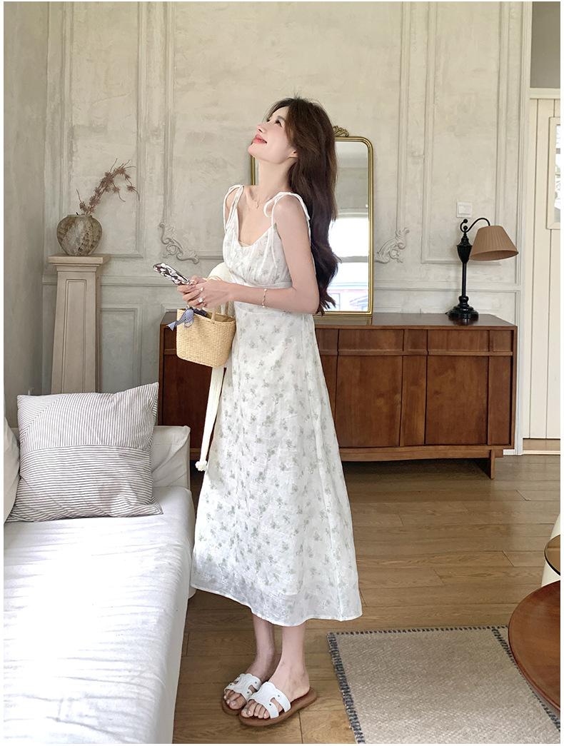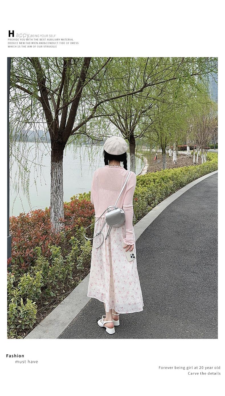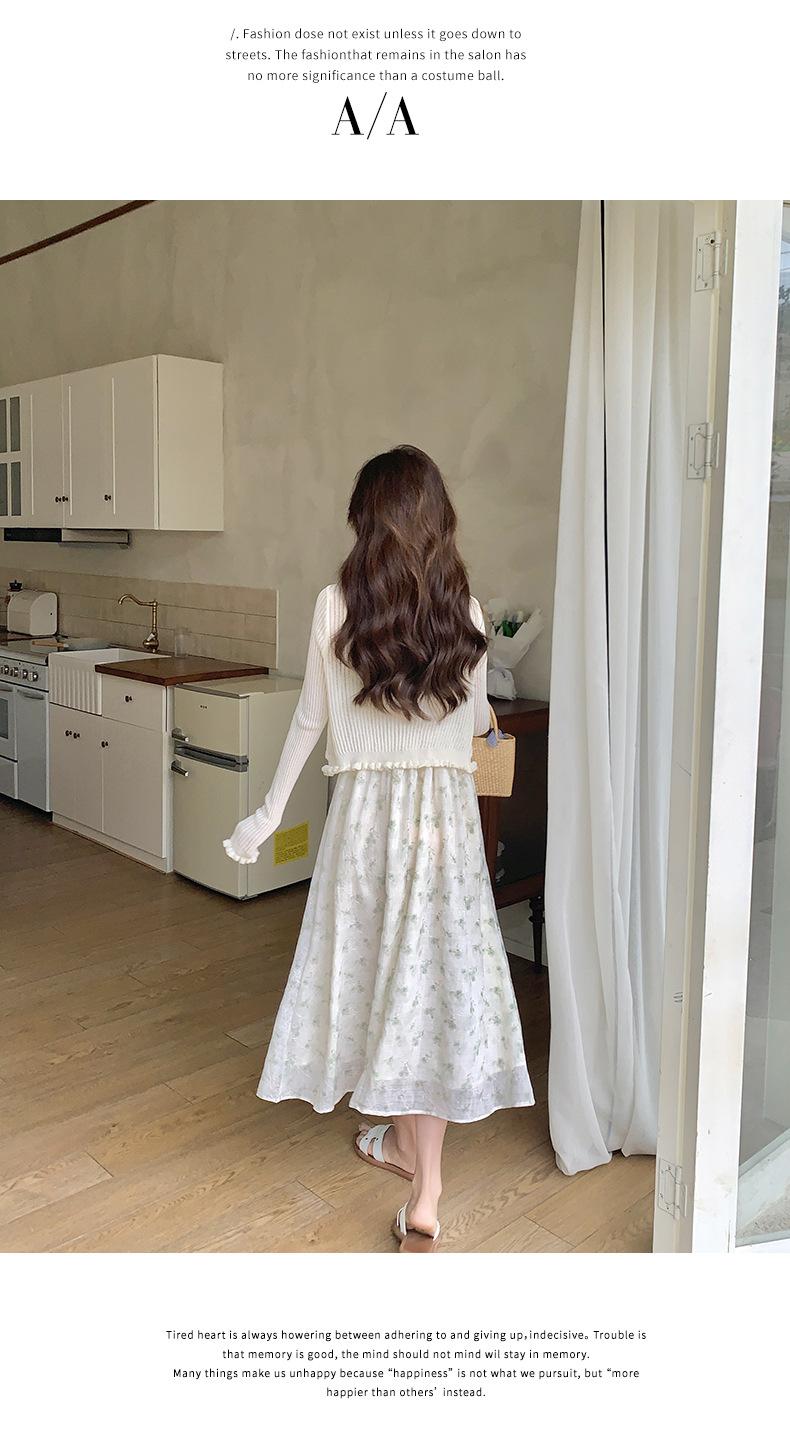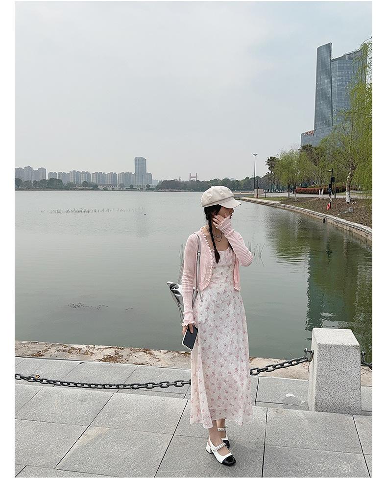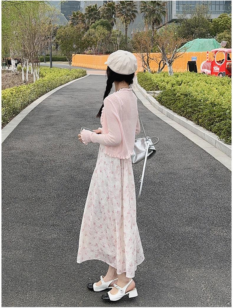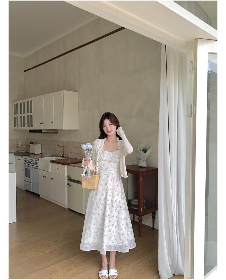 2025 Nueva Moda de Verano Casual Versátil Reductor de Edad Vestido Floral con Tirantes + Traje Cárdigan Protección Solar Moderno