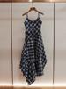 Shenzhen Nanyou Ropa de Mujer de Alta Gama Otoño Nuevo Estilo Orilla del Mar Francés Irregular Volante Camisola Vestido de Cuadros Mujer