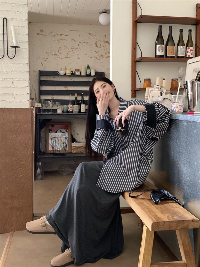 Tamaño:camisaM largo 76 busto 140 largo de manga 60faldaTalla S largo del vestido 91 cintura 62Largo del vestido M 95 cintura 66