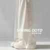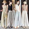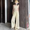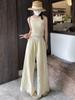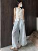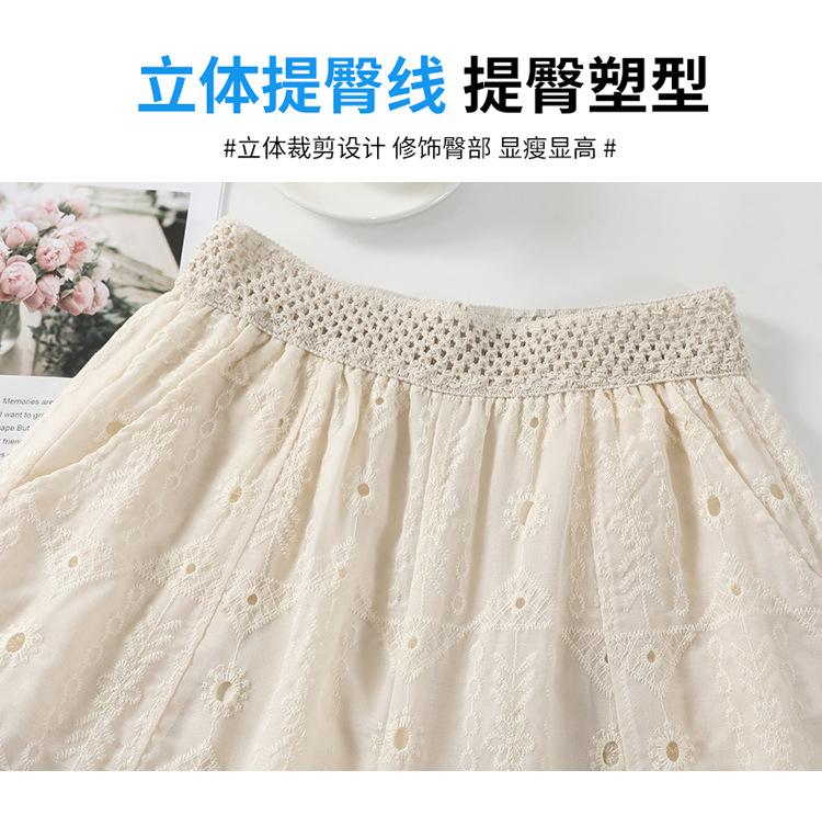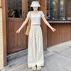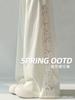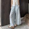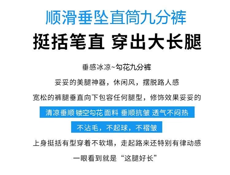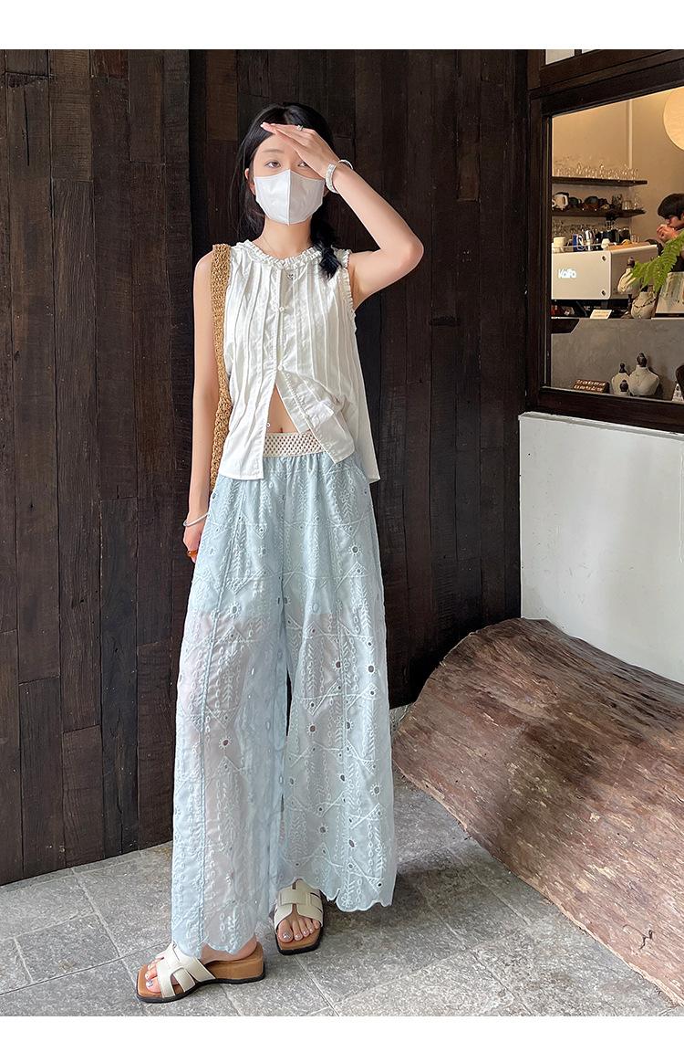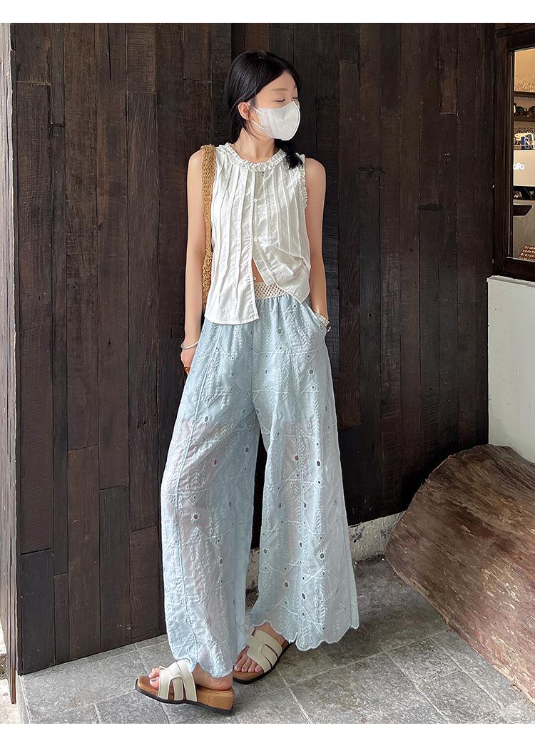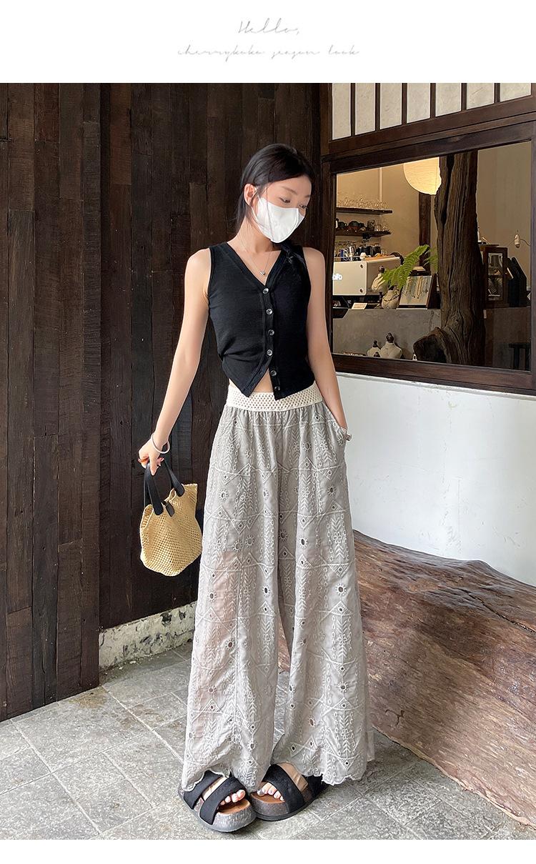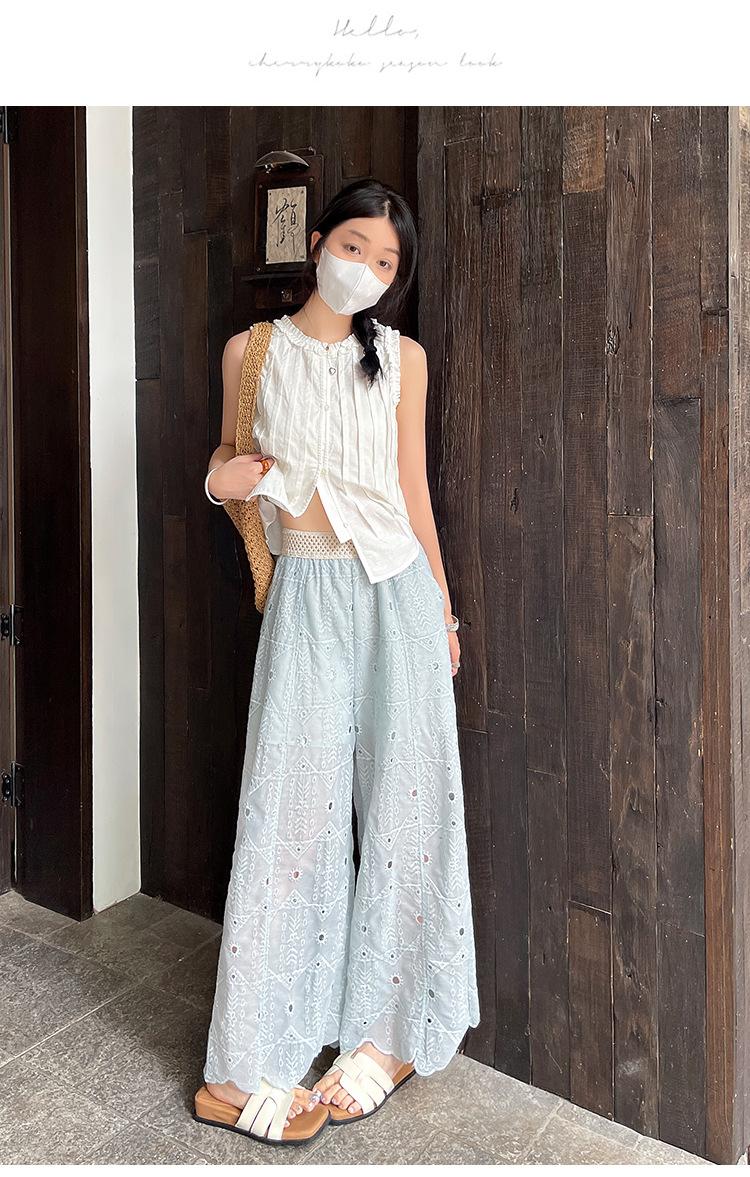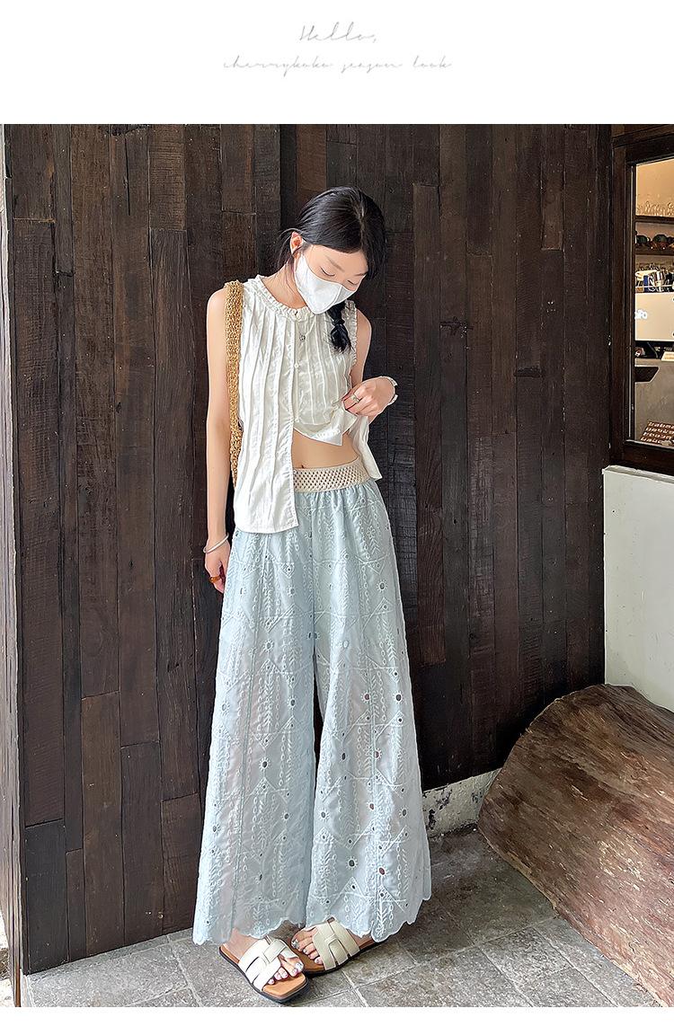 Pantalones rectos de nueve puntos de encaje calado con patrón de gancho de bordado grueso fino para mujer 2025 Verano Nuevo Look Adelgazante Pantalones de Pierna Ancha