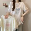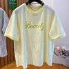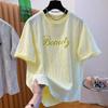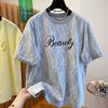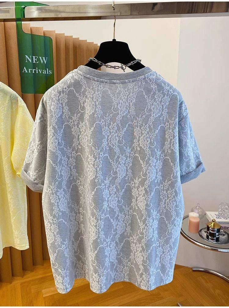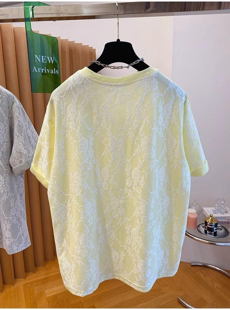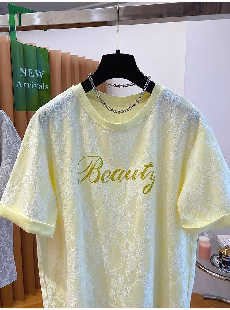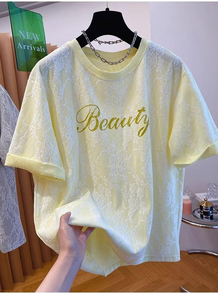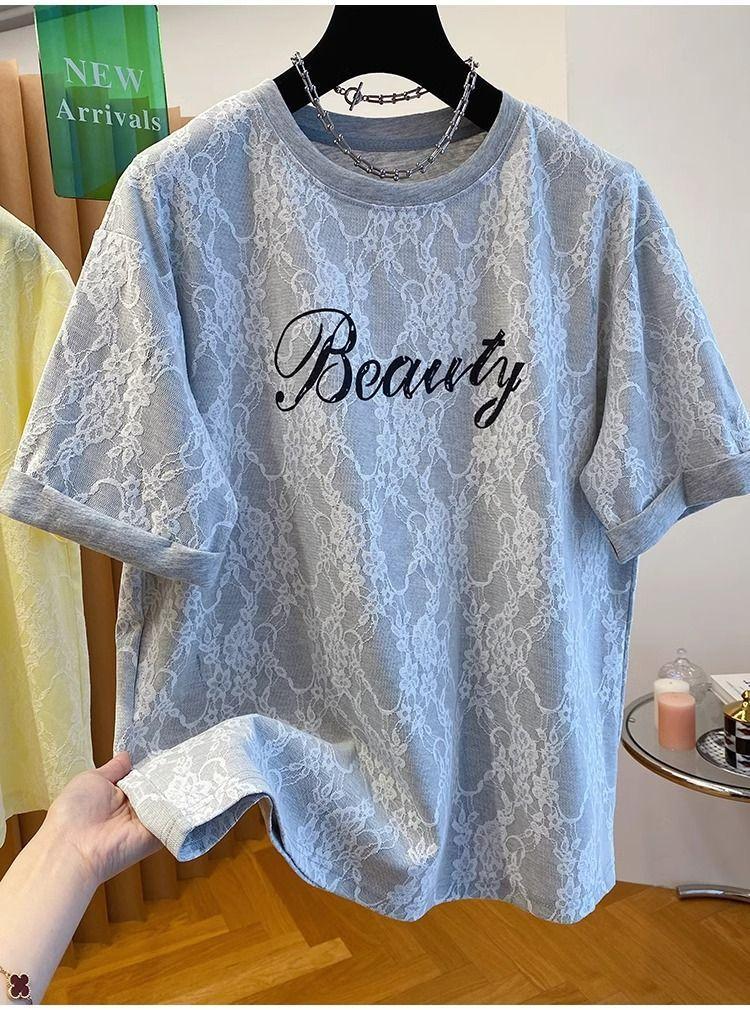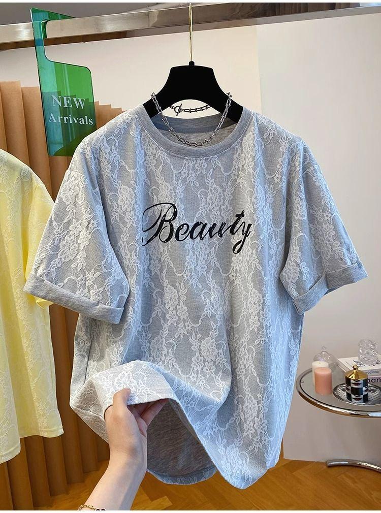 2025 Nuevo Verano Casual Encaje Pesado Super Bonito y Hermoso Letras Suelto Algodón Manga Corta Camisetas Tops para Mujer