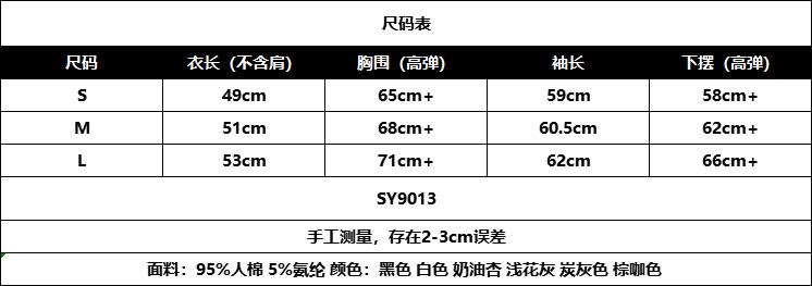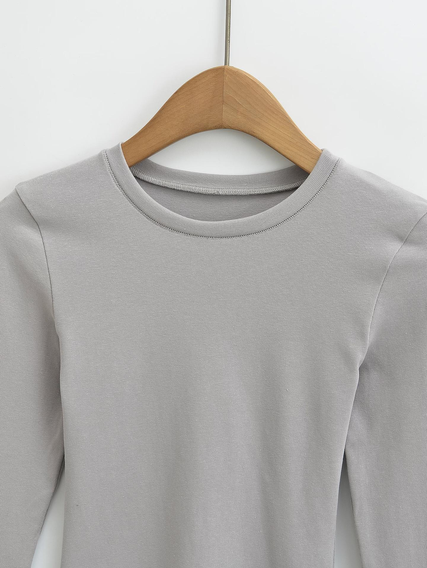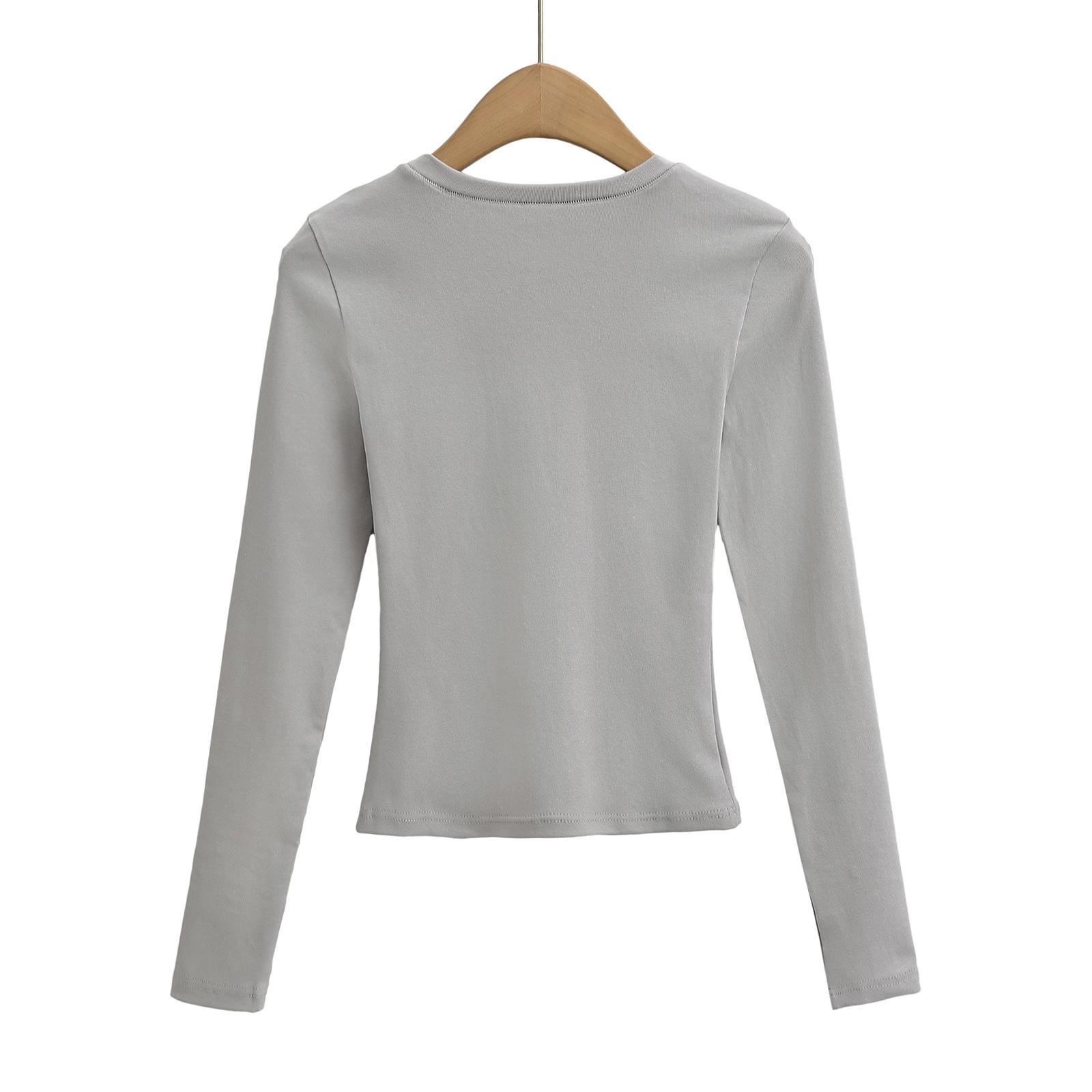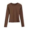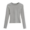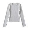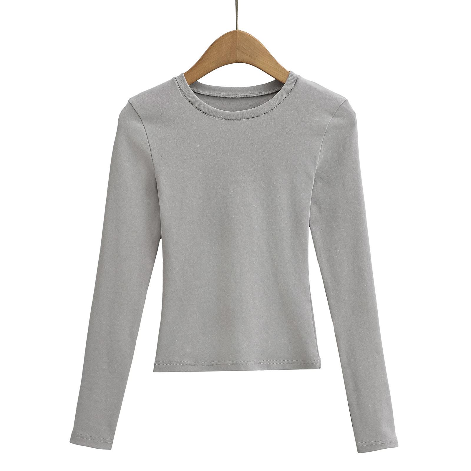 SY9013-24 Verano Nueva Llegada Estilo Europeo y Americano Chica Sexy Simple Básico Casual Cuello Redondo Manga Larga Camiseta Interior