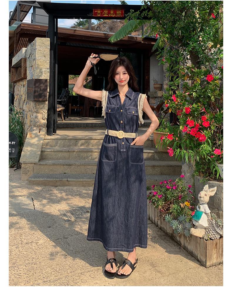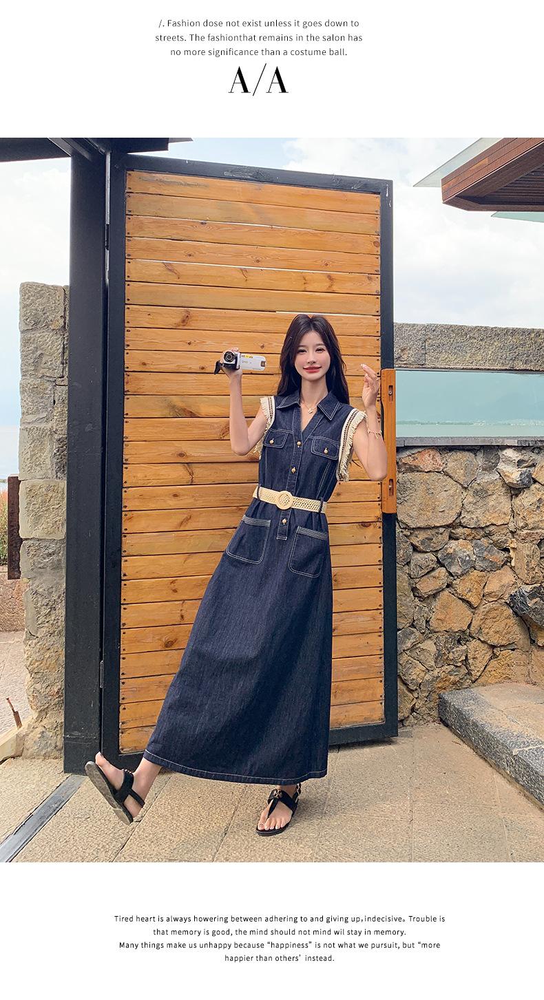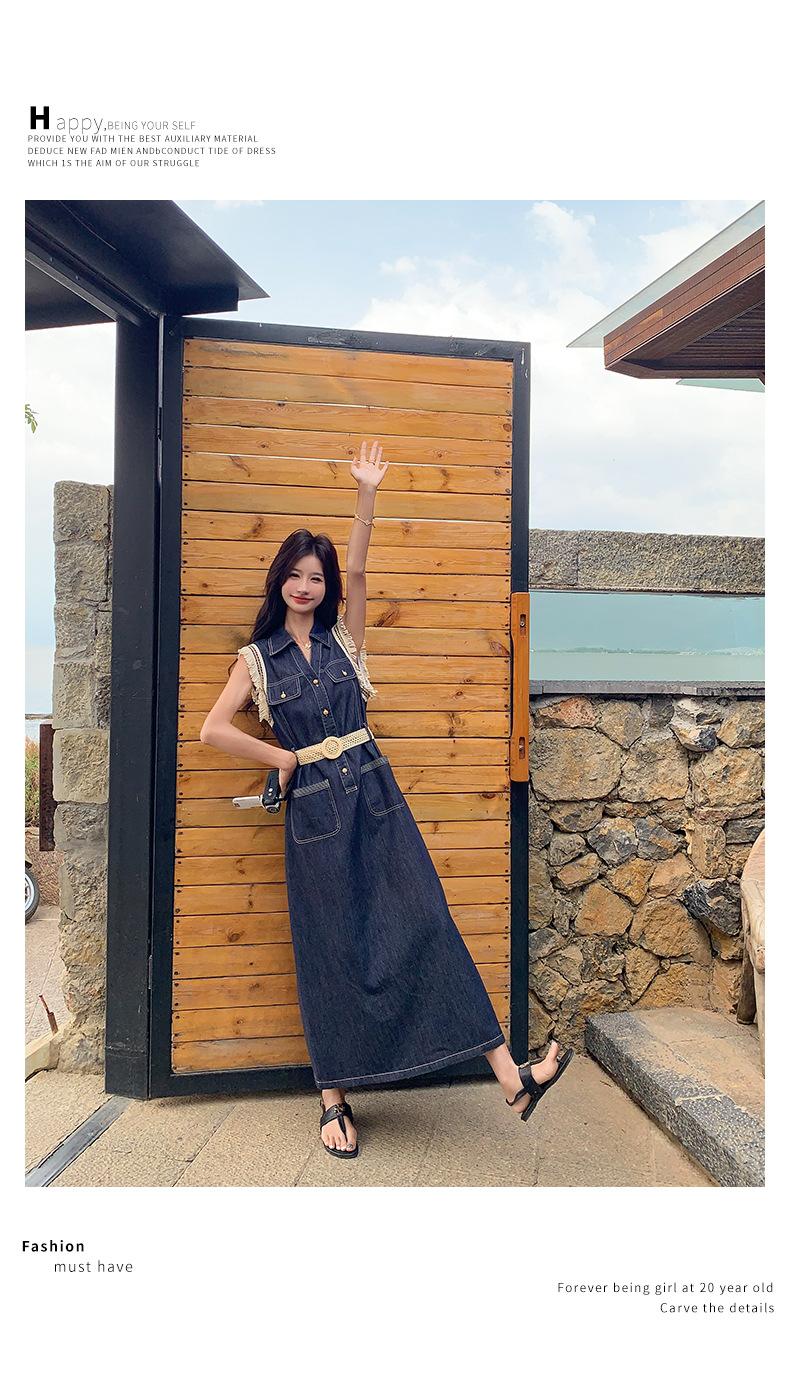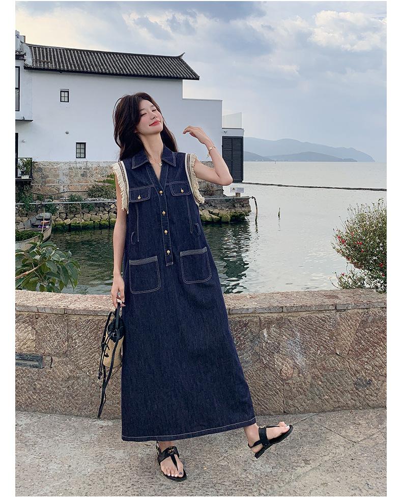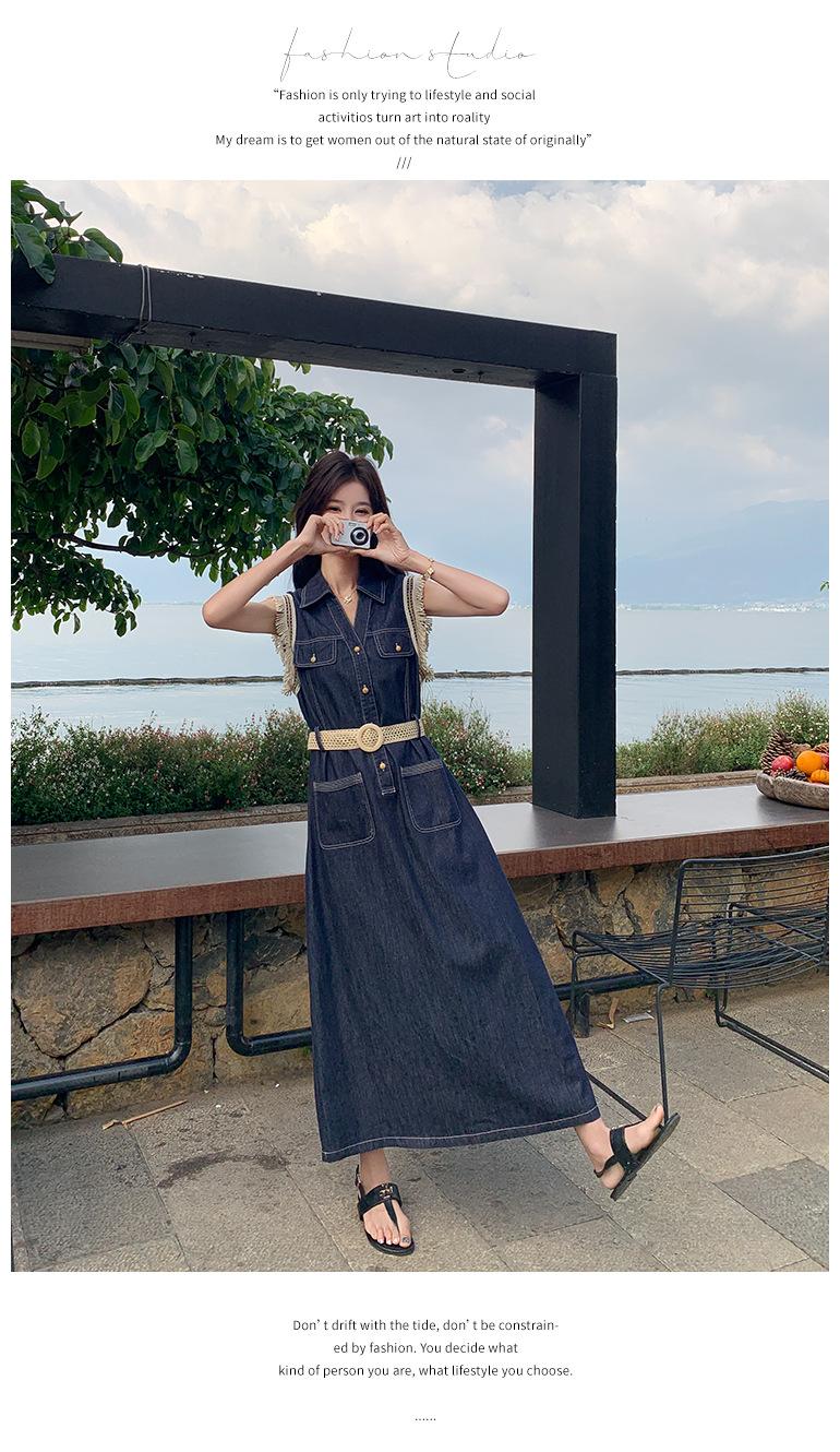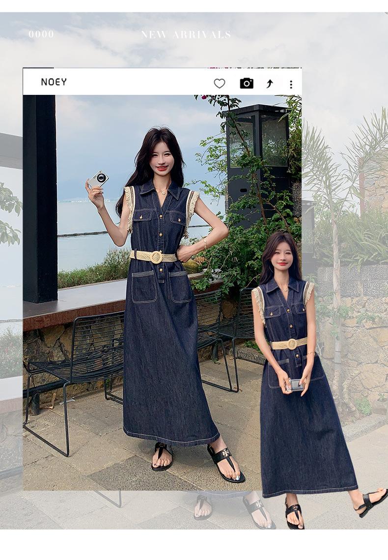Vestido Adelgazante y Favorecedor de la Figura Estilo Temperamento 2025 Verano Nuevo Sin Mangas Cuello Camisero Adelgazante de Cintura Línea A Vestido Largo