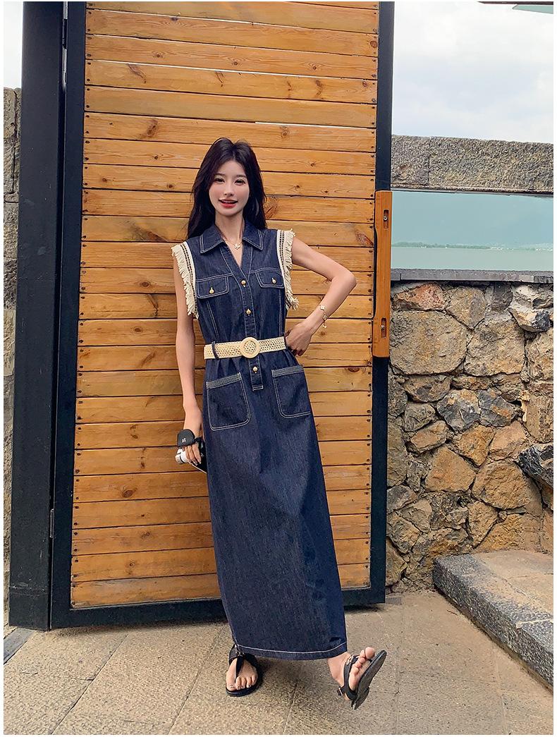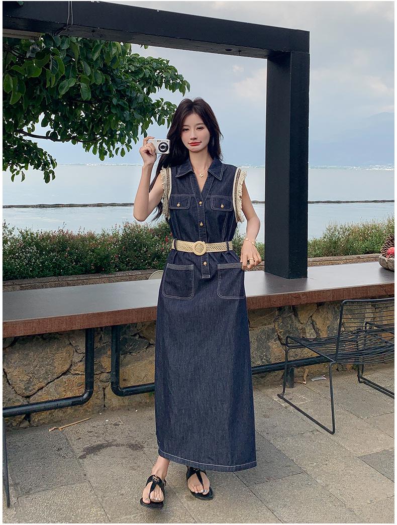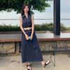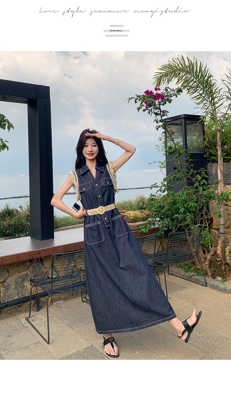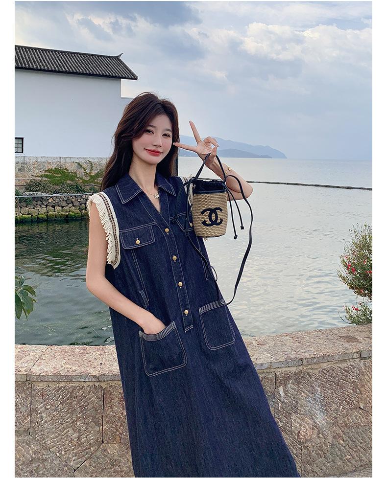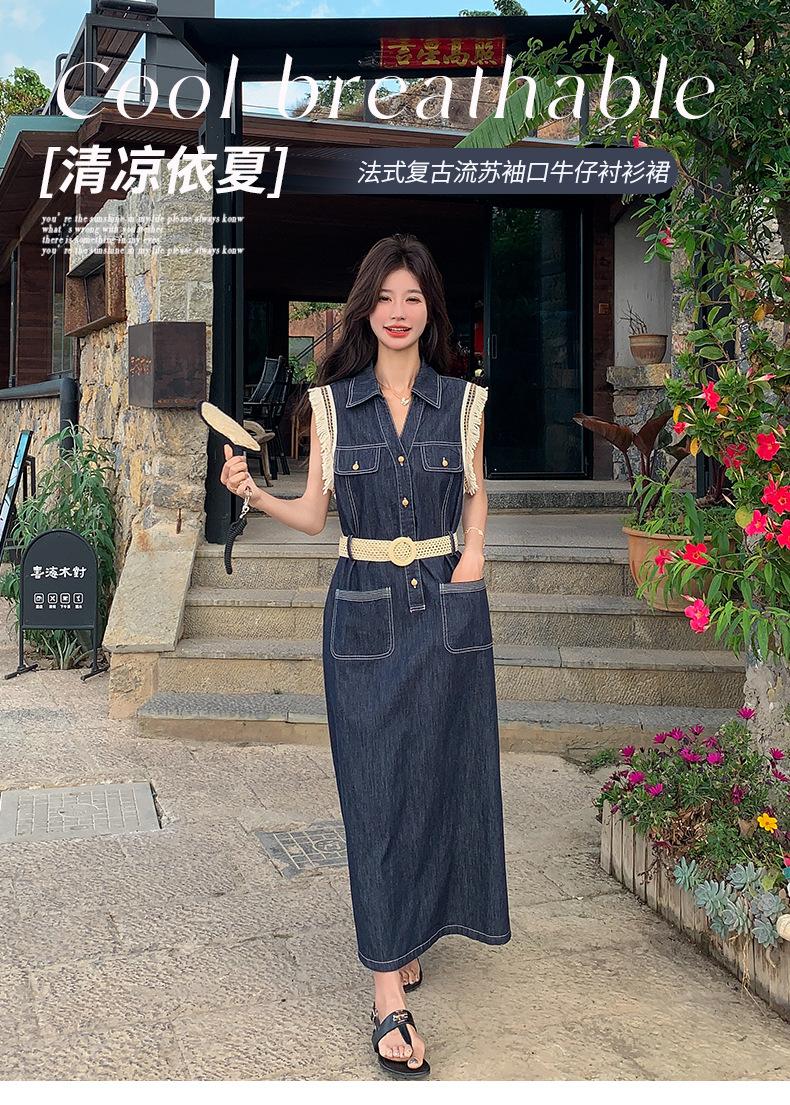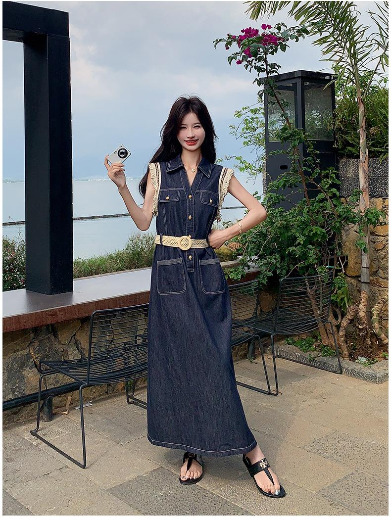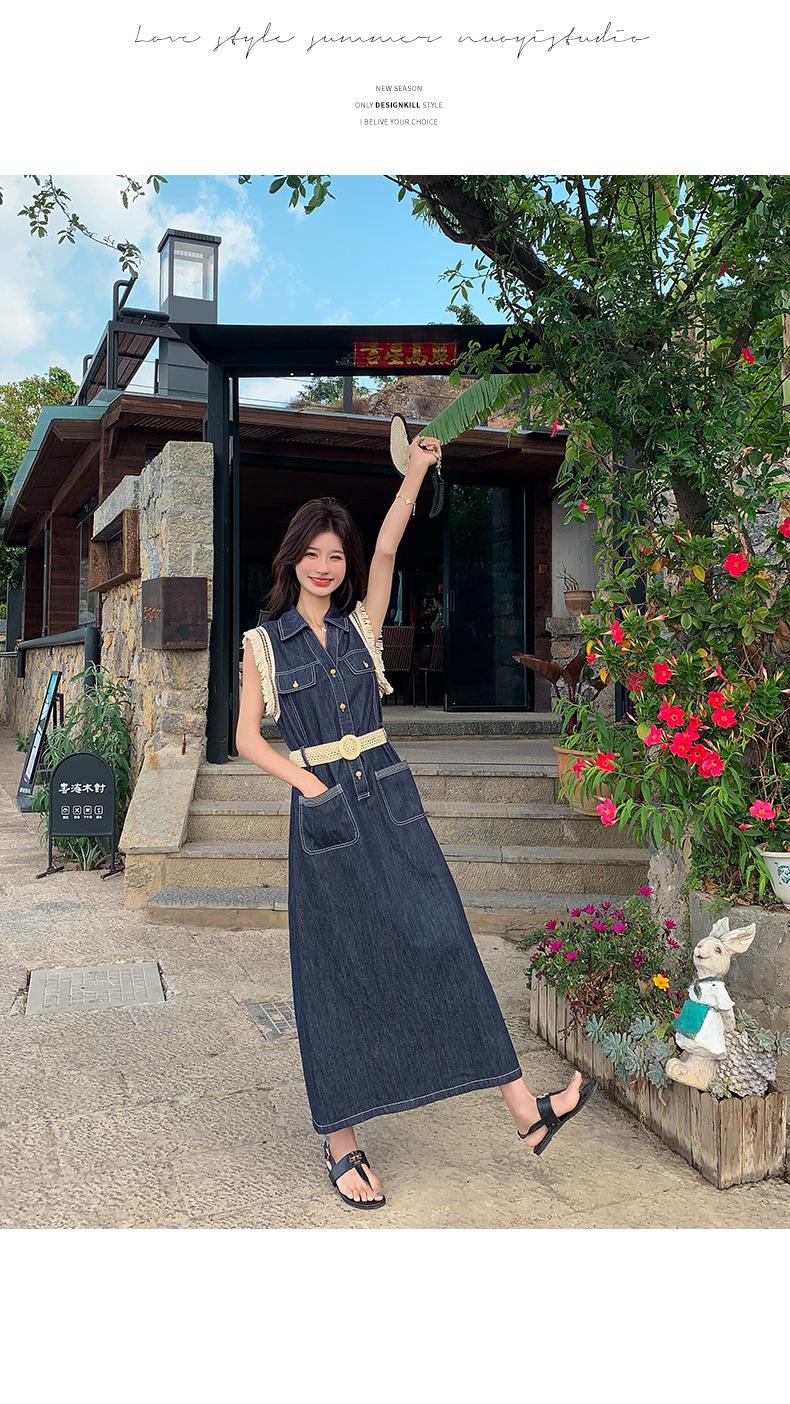 Vestido Adelgazante y Favorecedor de la Figura Estilo Temperamento 2025 Verano Nuevo Sin Mangas Cuello Camisero Adelgazante de Cintura Línea A Vestido Largo