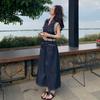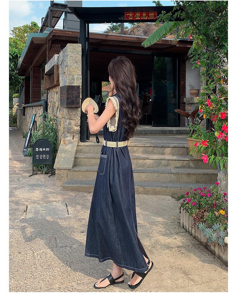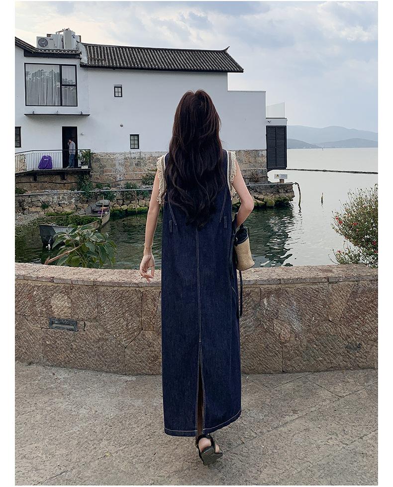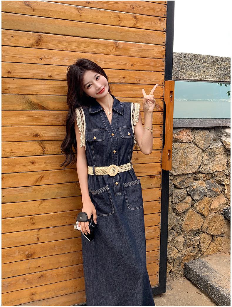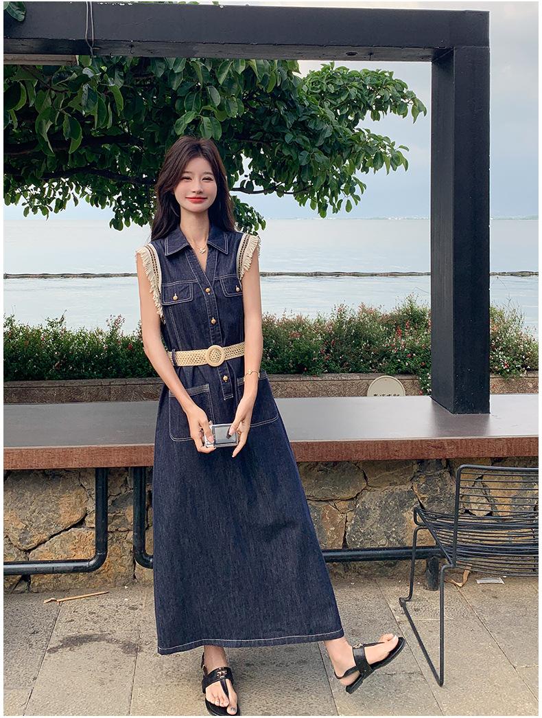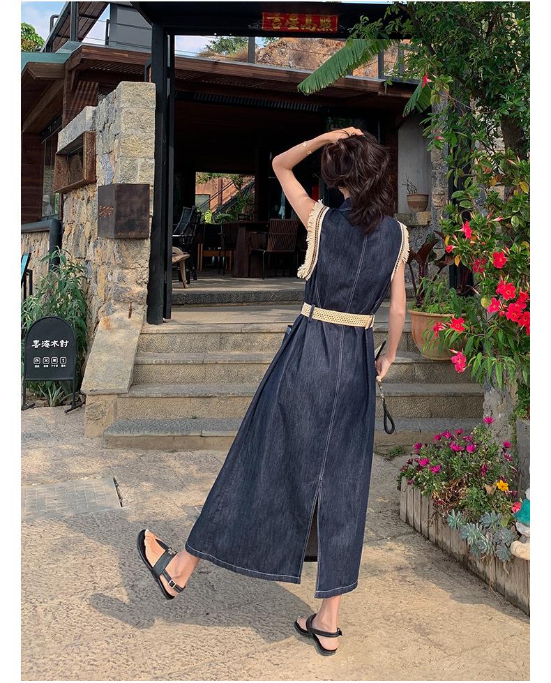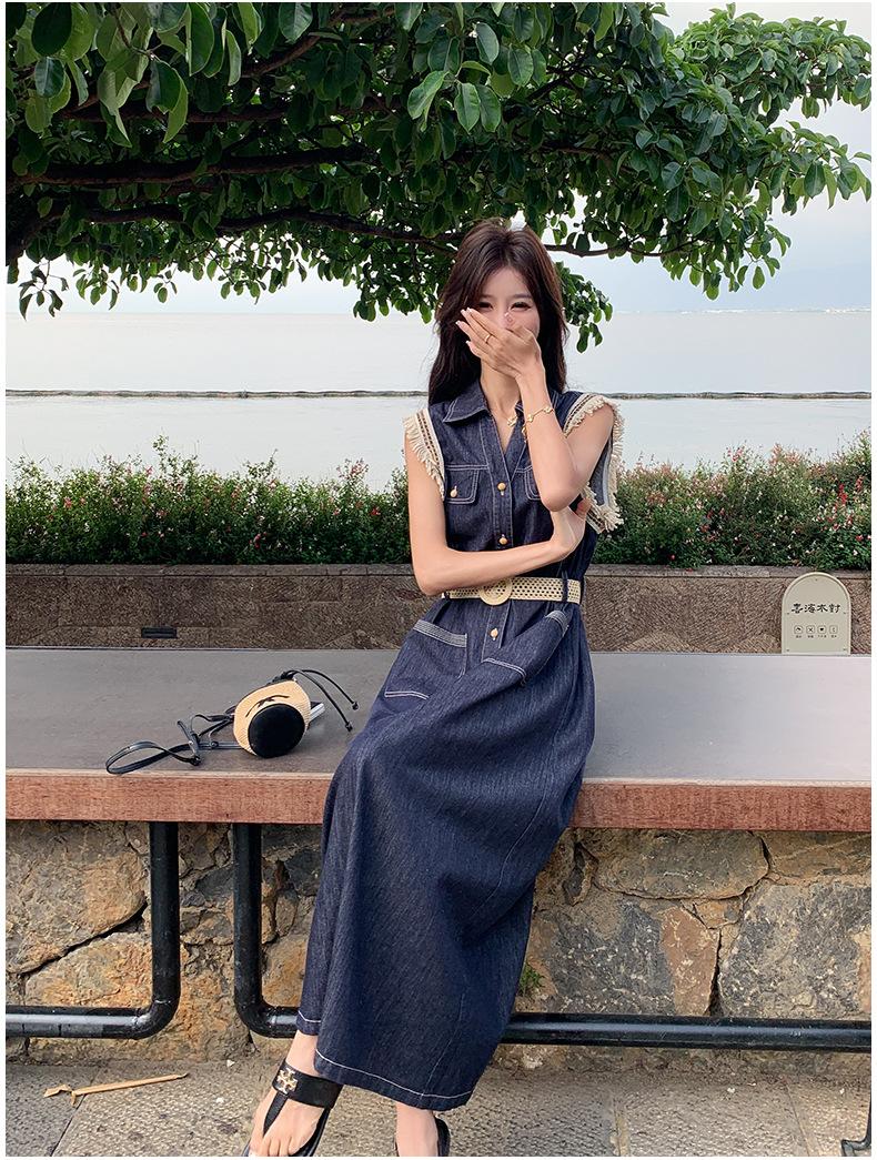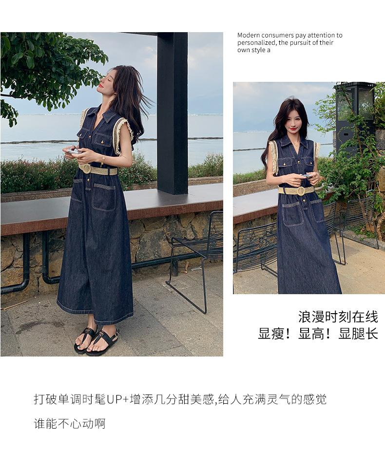 Vestido Adelgazante y Favorecedor de la Figura Estilo Temperamento 2025 Verano Nuevo Sin Mangas Cuello Camisero Adelgazante de Cintura Línea A Vestido Largo