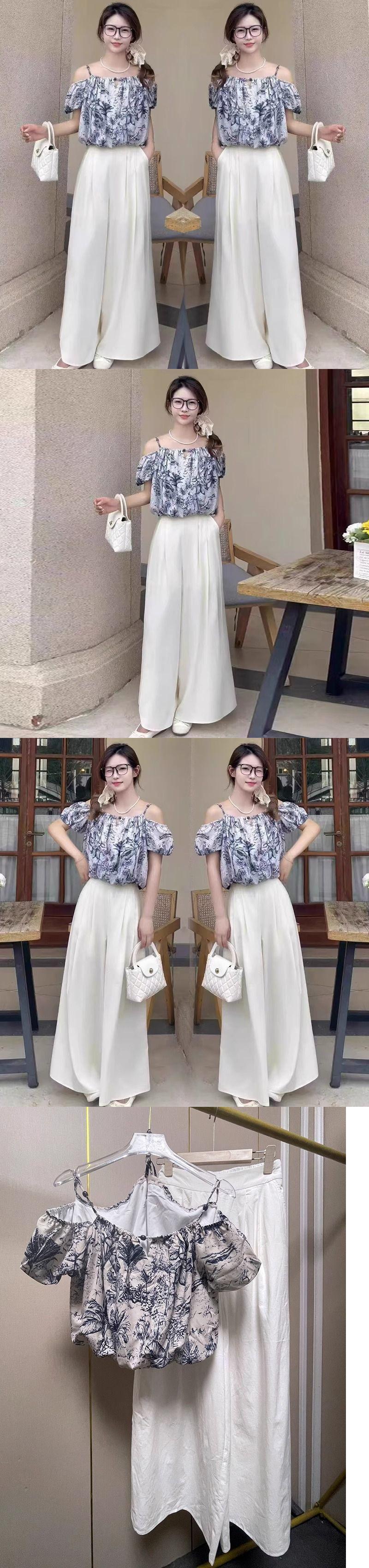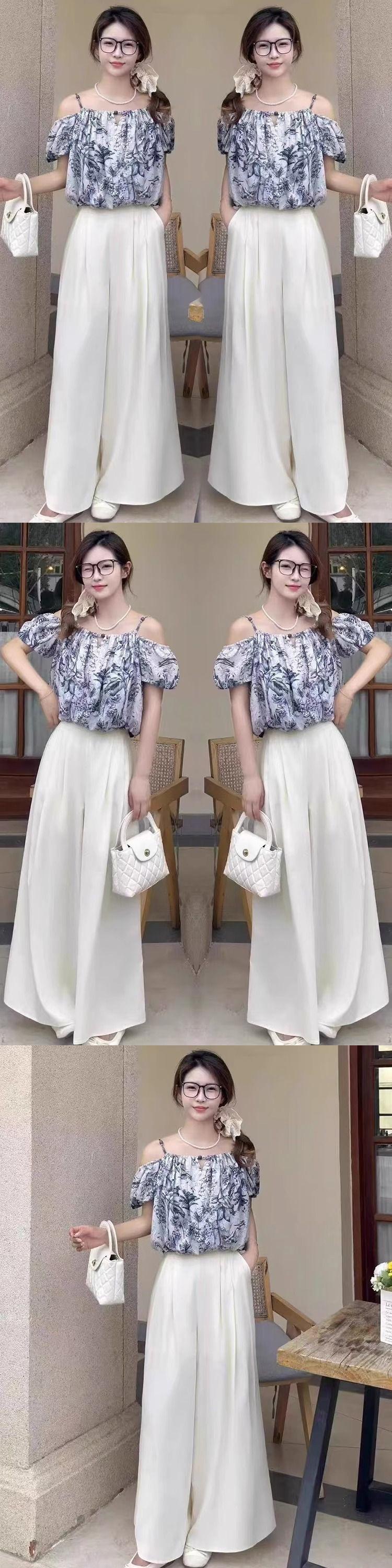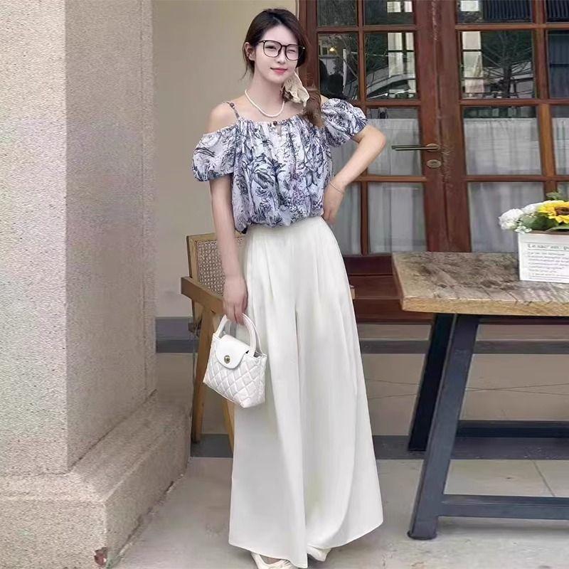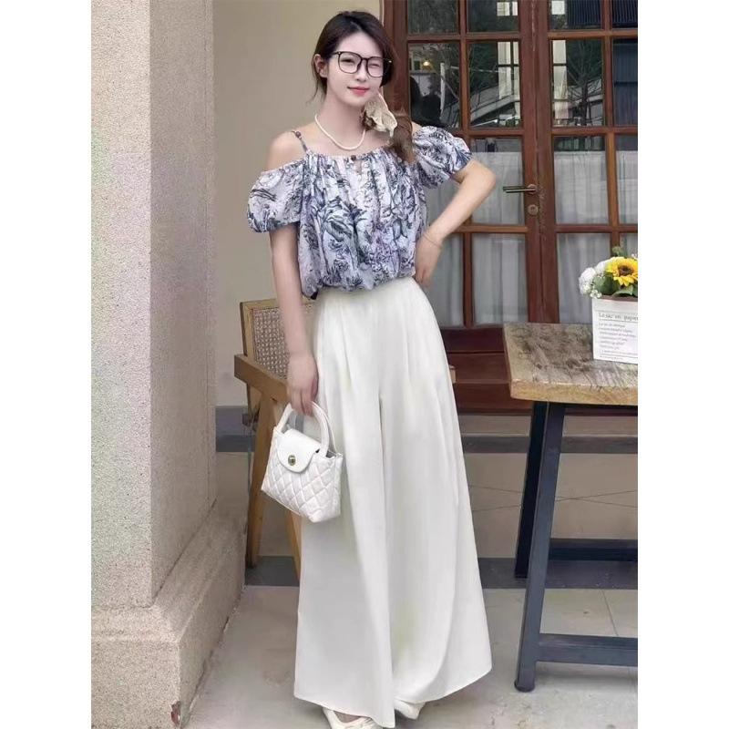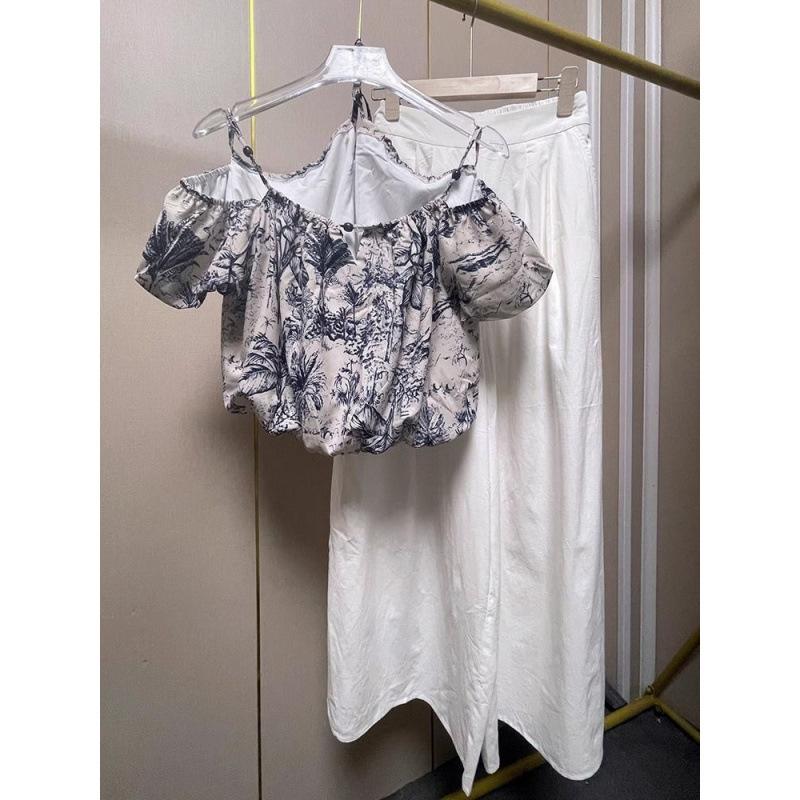Traje de Falda con Tirantes Elegante de Hada Pequeña Estilo Maduro Ligero Floral de un Hombro para Mujer 2025 Verano Nueva Moda Conjunto de Dos Piezas