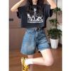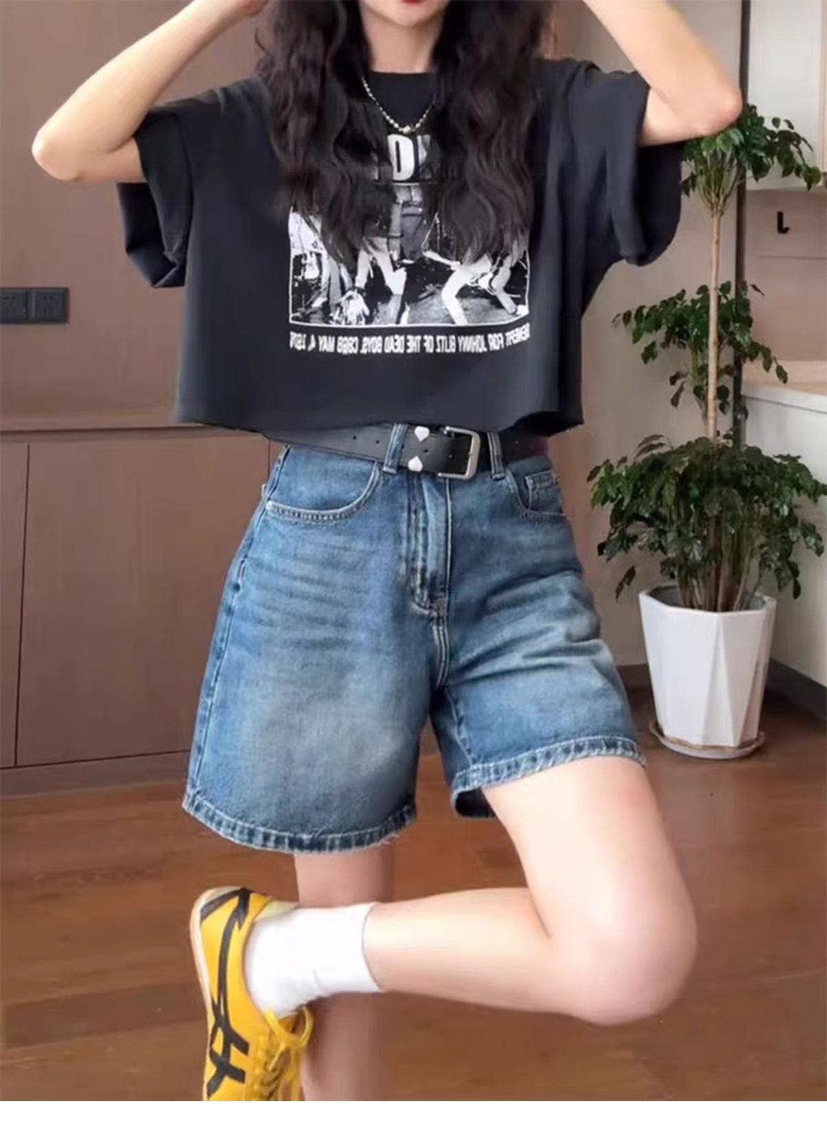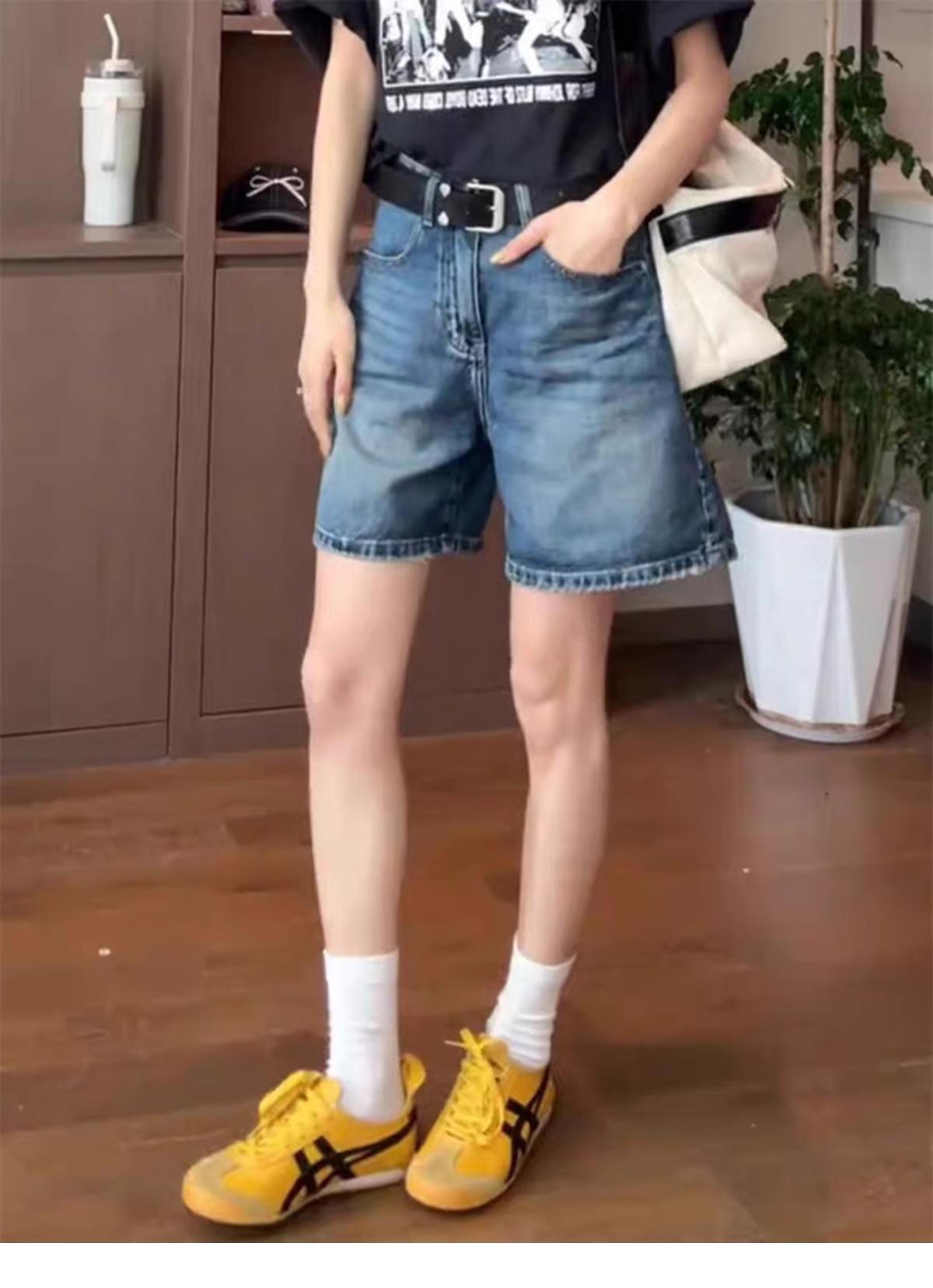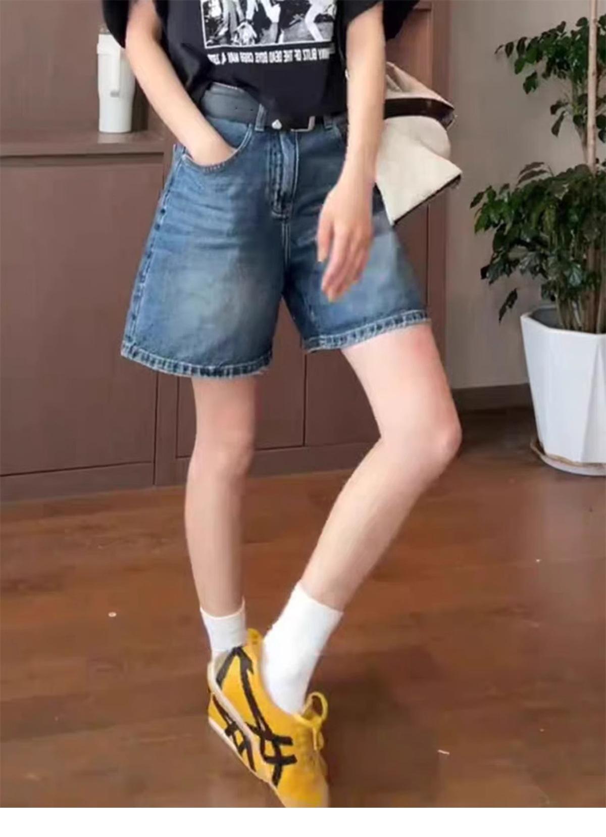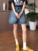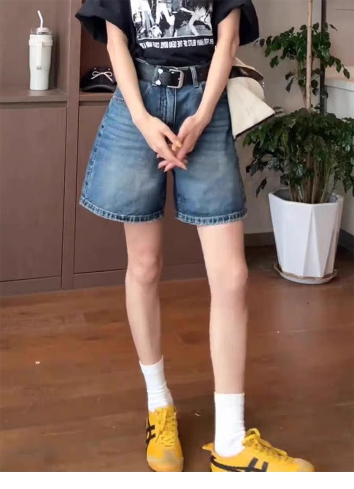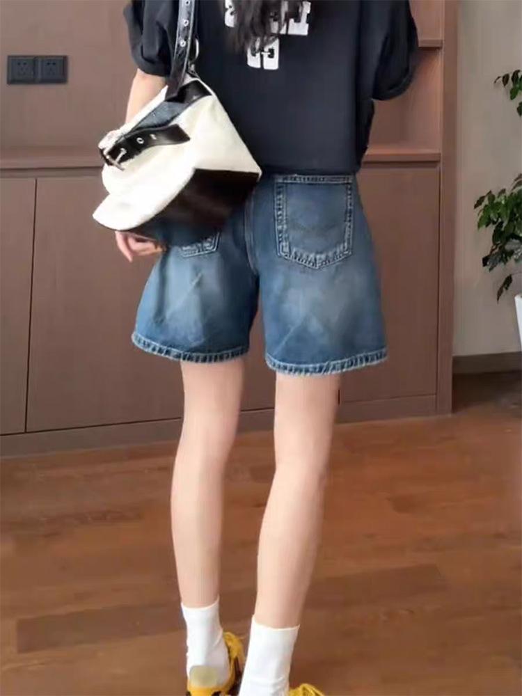 Shorts de mezclilla delgados retro de verano 2025 para mujer, talla grande, MM para gorditas, cintura alta, adelgazantes, petite, corte A, pierna ancha, pantalones cortos calientes