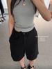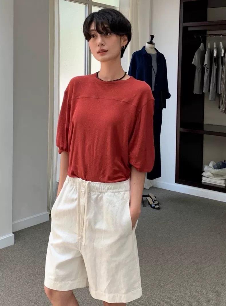 Ahora H2025 Nuevo Estilo Verano Coreano Dongdaemun No*Ing Escritura Holgado Color Puro Cintura Alta Shorts Slim
