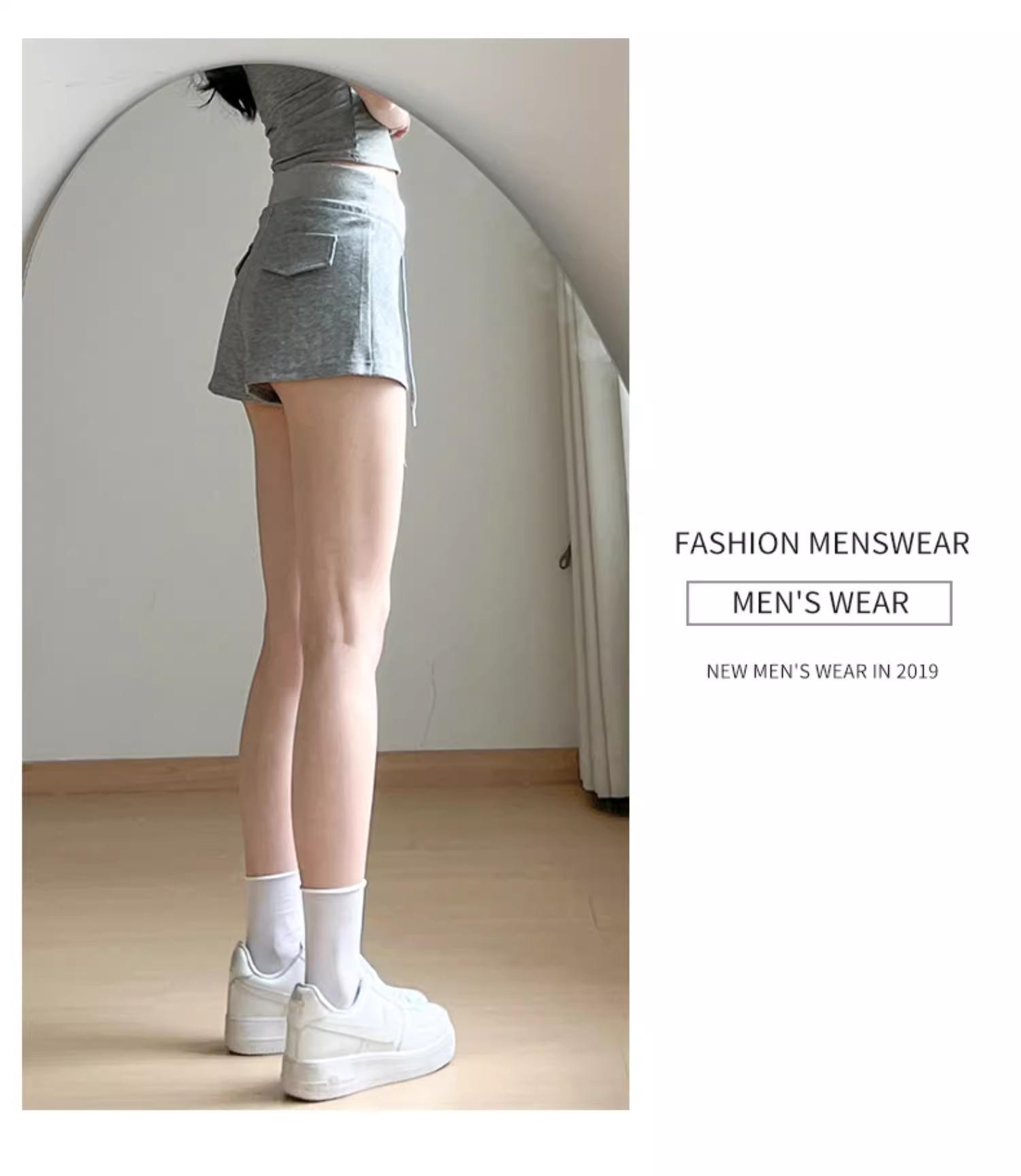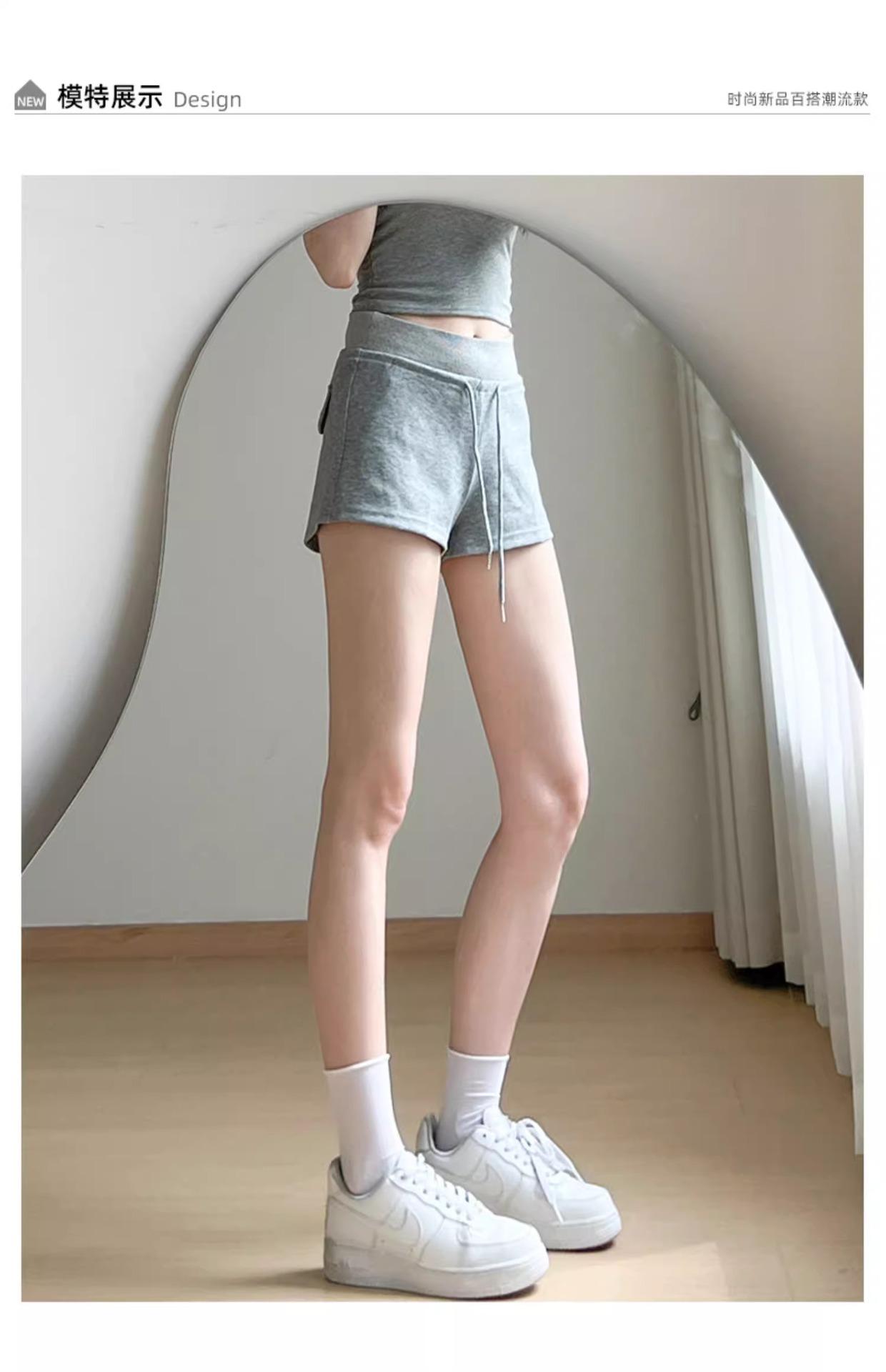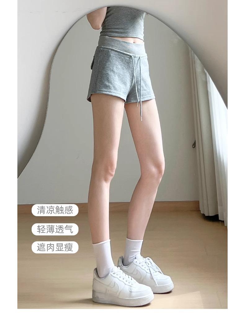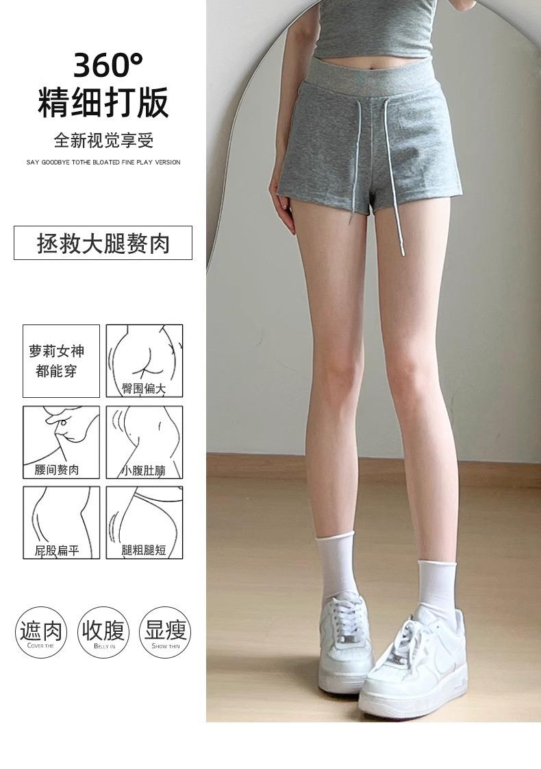 Shorts Deportivos Grises para Mujer Verano 2025 Nuevo Tiro Bajo Cordón Americano Sexy Sexy Casual Cubre Cadera Pantalones Cortos