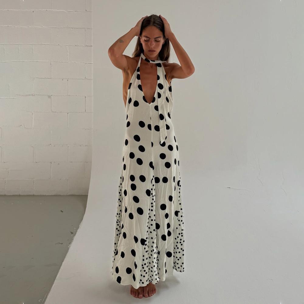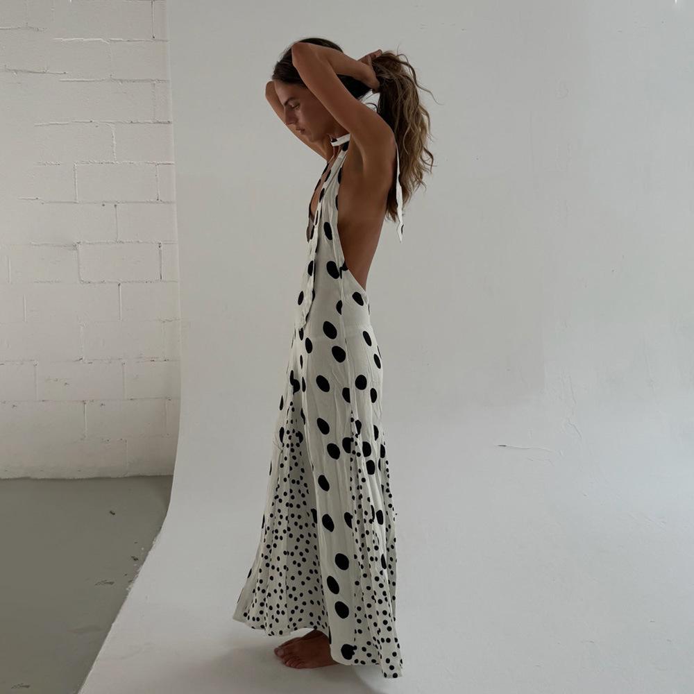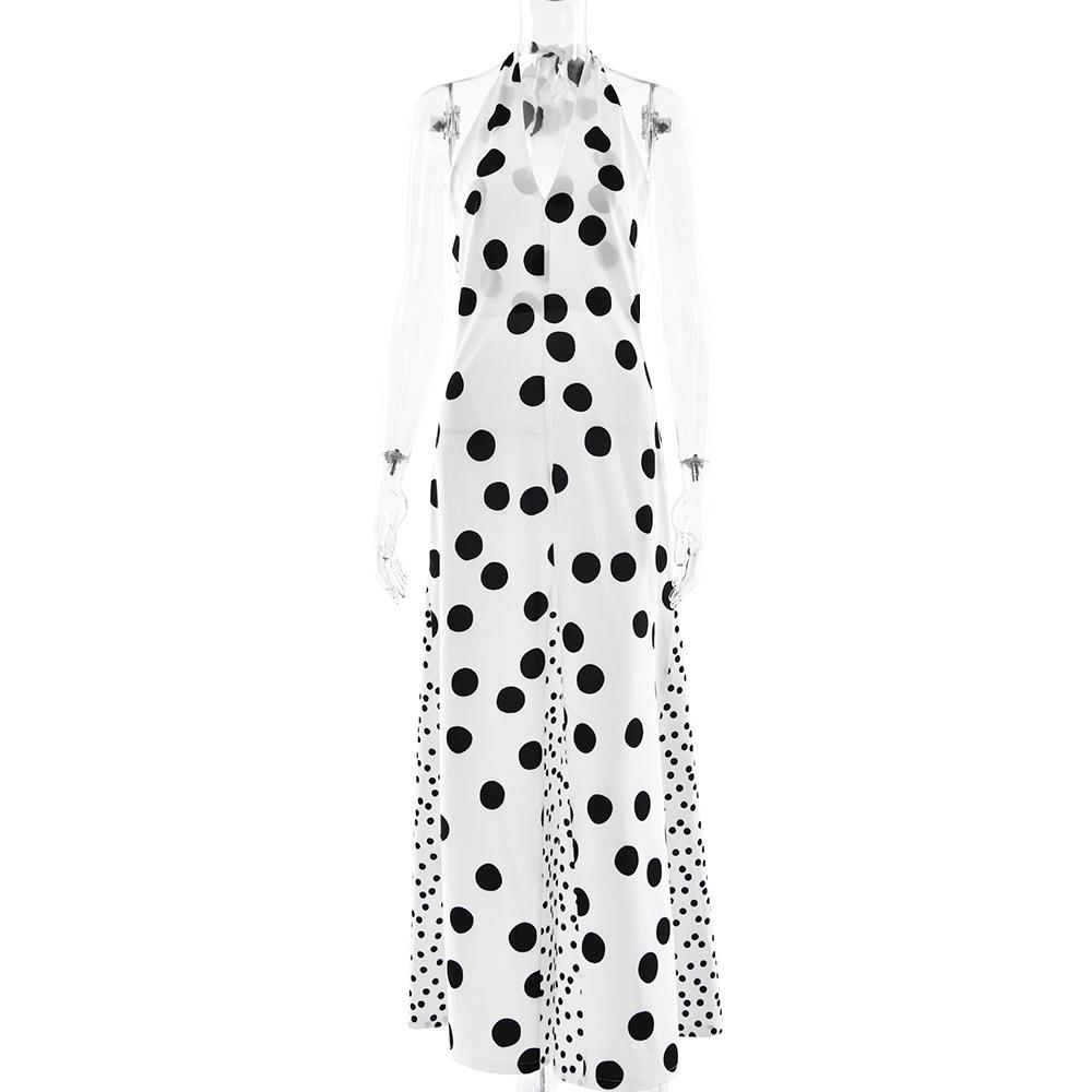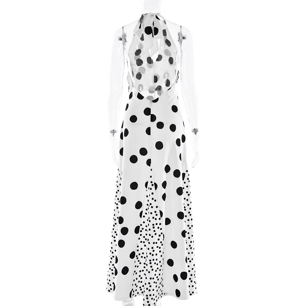 Vestido de Tirantes con Empalme de Lunares Nuevo de Verano para Exportación Europea y Americana Amazon Sexy Sexy Espalda Descubierta Vestido Largo para Mujer