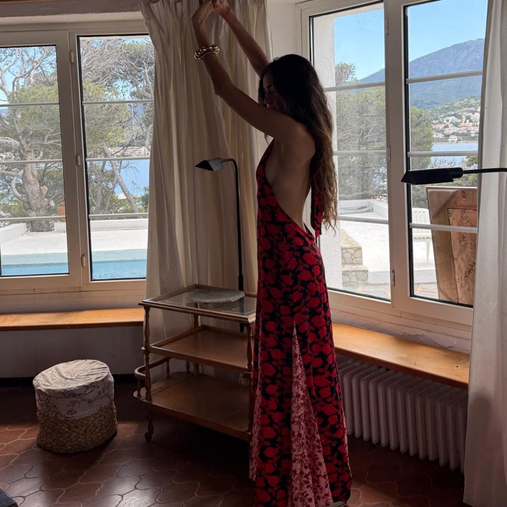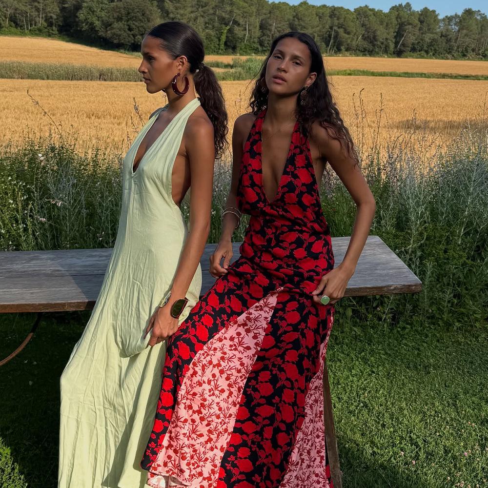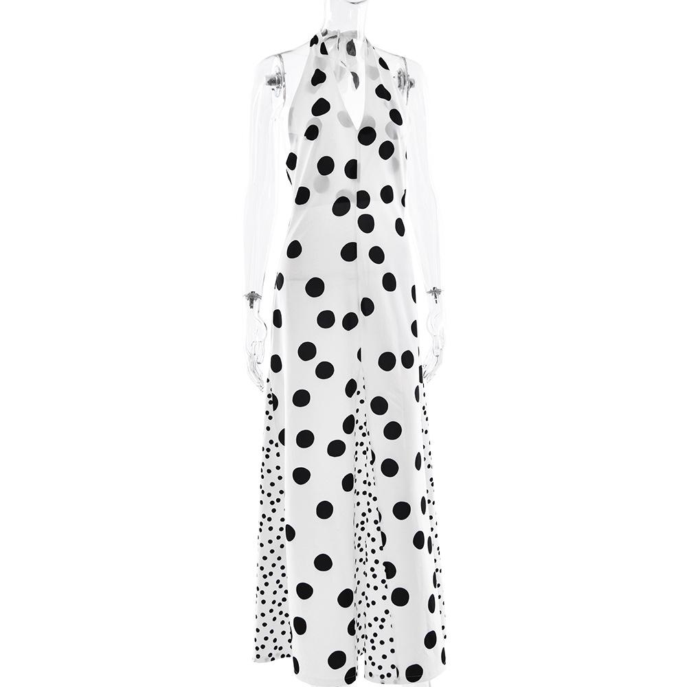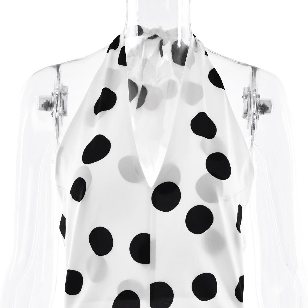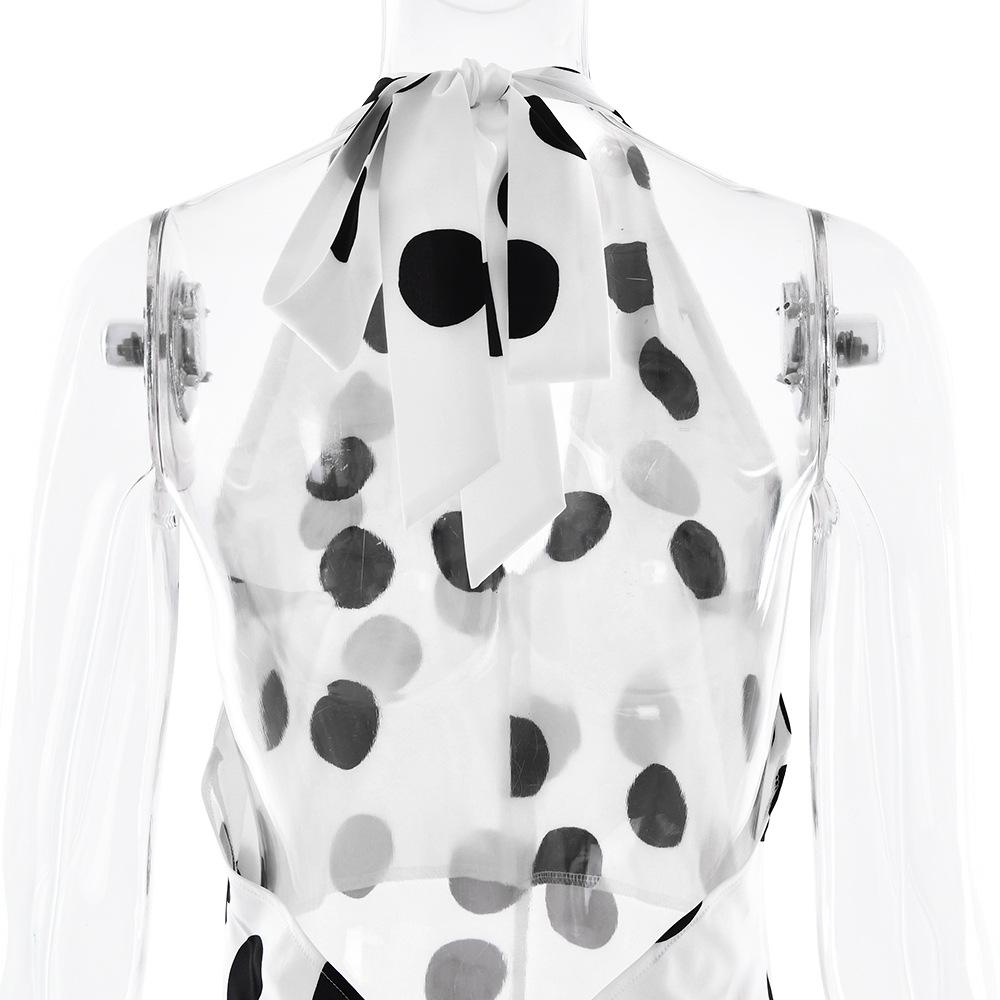 Vestido de Tirantes con Empalme de Lunares Nuevo de Verano para Exportación Europea y Americana Amazon Sexy Sexy Espalda Descubierta Vestido Largo para Mujer