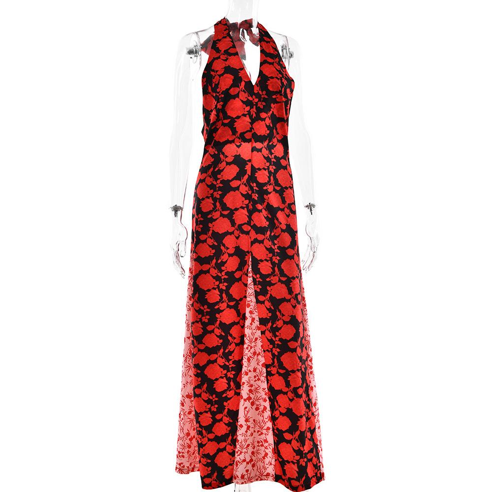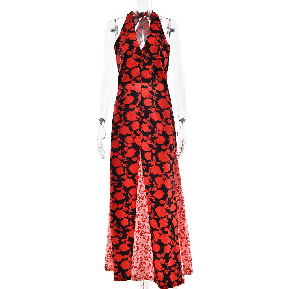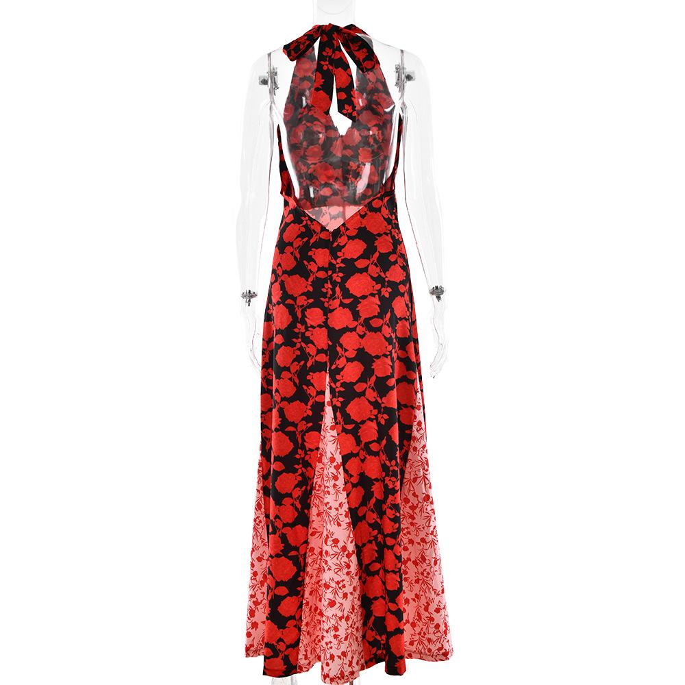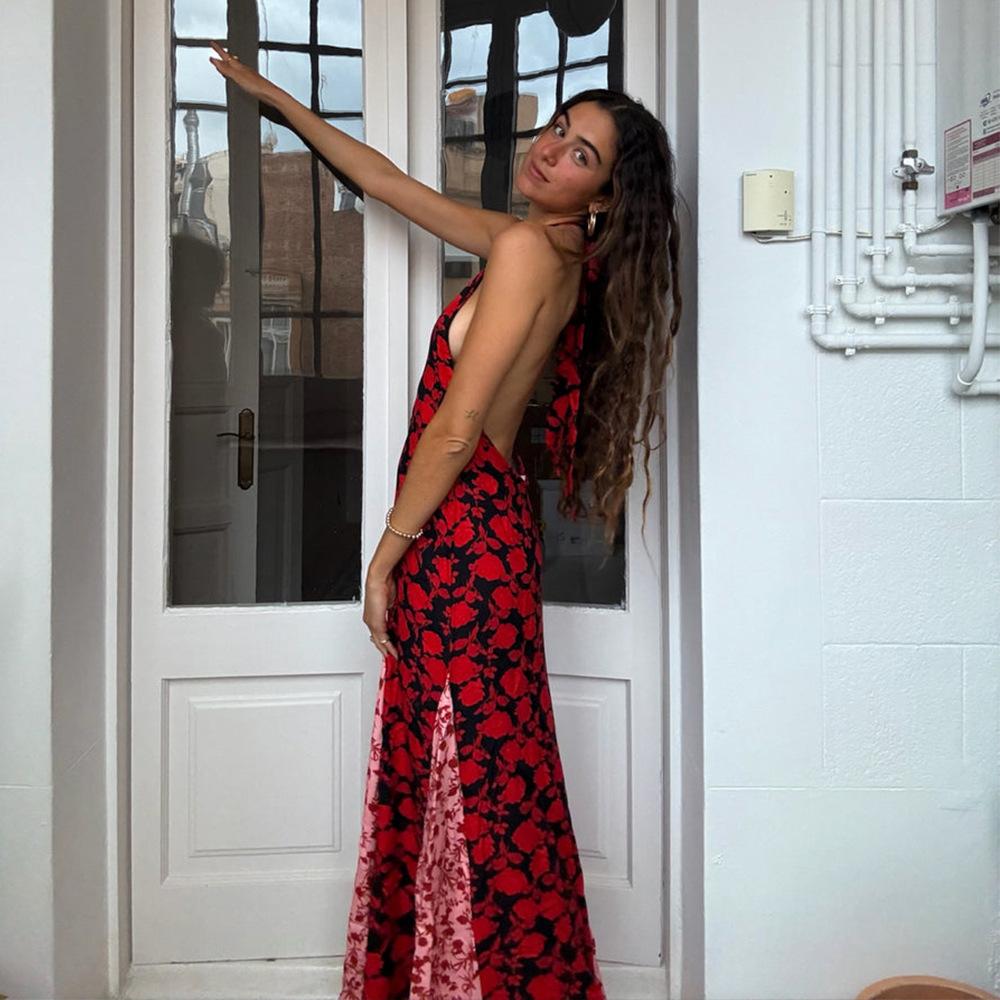 Vestido de Tirantes con Empalme de Lunares Nuevo de Verano para Exportación Europea y Americana Amazon Sexy Sexy Espalda Descubierta Vestido Largo para Mujer