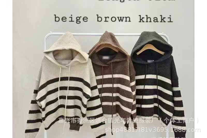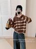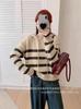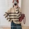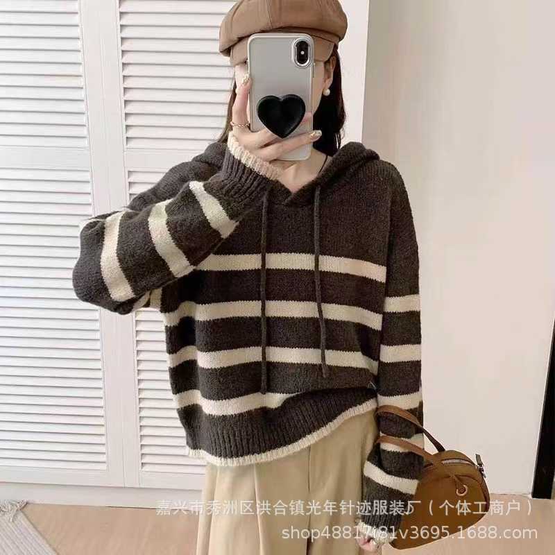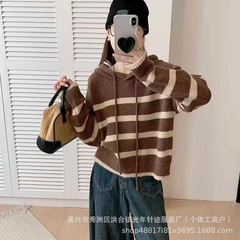 Suéter tejido de punto estilo coreano con diseño de bloques de color a rayas para mujer 2025 invierno para uso interior y exterior, top grueso con capucha