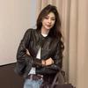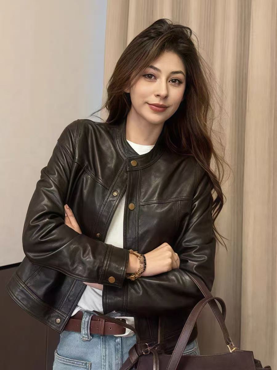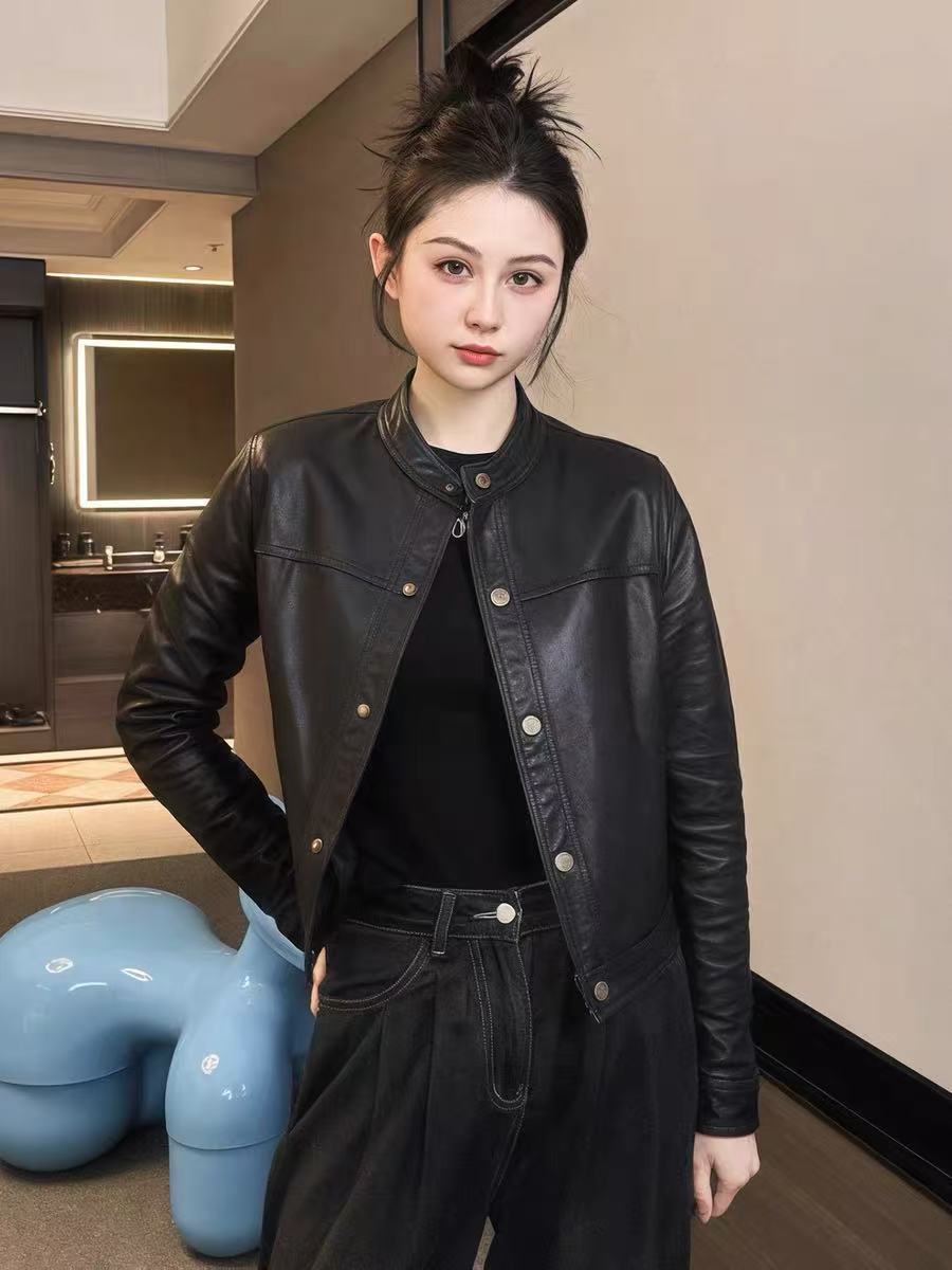 Abrigo de Cuero Genuino para Mujer 2025 Primavera y Otoño Nuevo Traje Biker de Piel de Oveja Estilo Coreano Ajustado Adelgazante Chaqueta de Cuero Corta