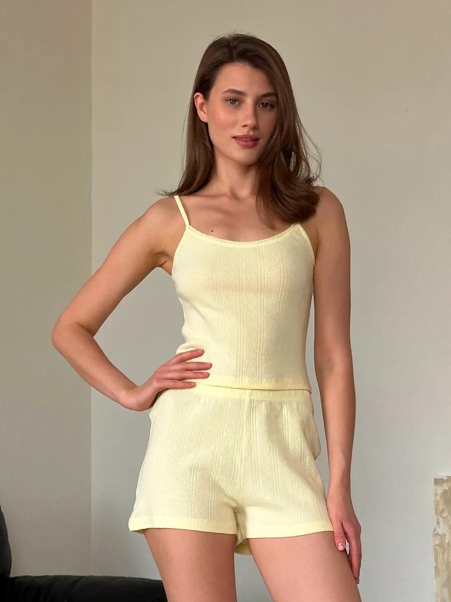 Conjunto de Pijama Camisola Calada Transfronterizo Europeo y Americano Sexy Estilo Deseo Puro Ajustado de Dos Piezas para Estar en Casa Mujeres