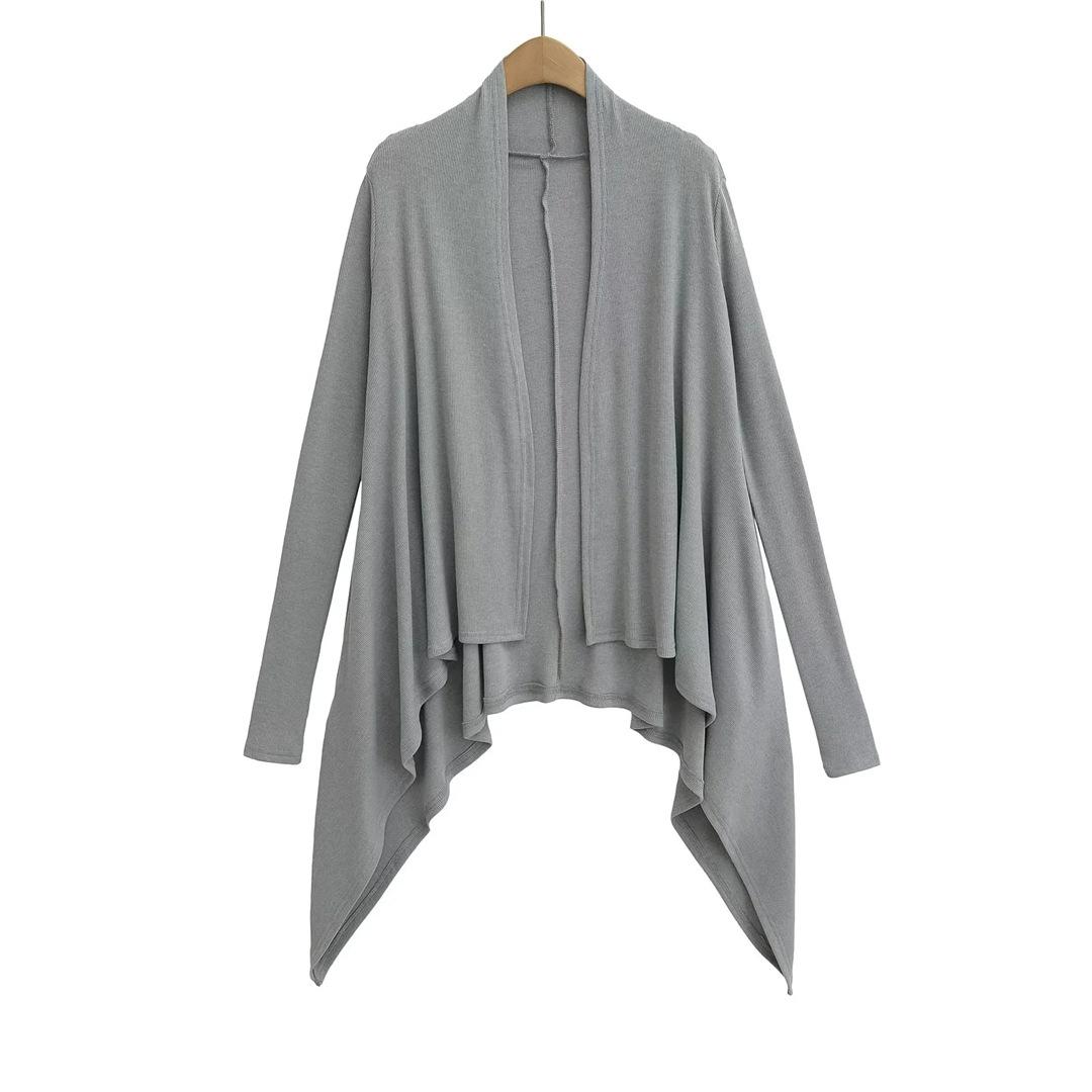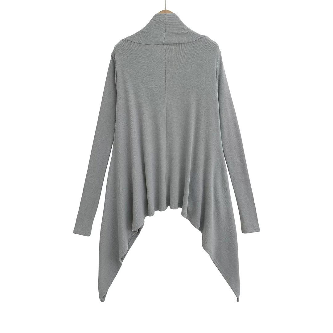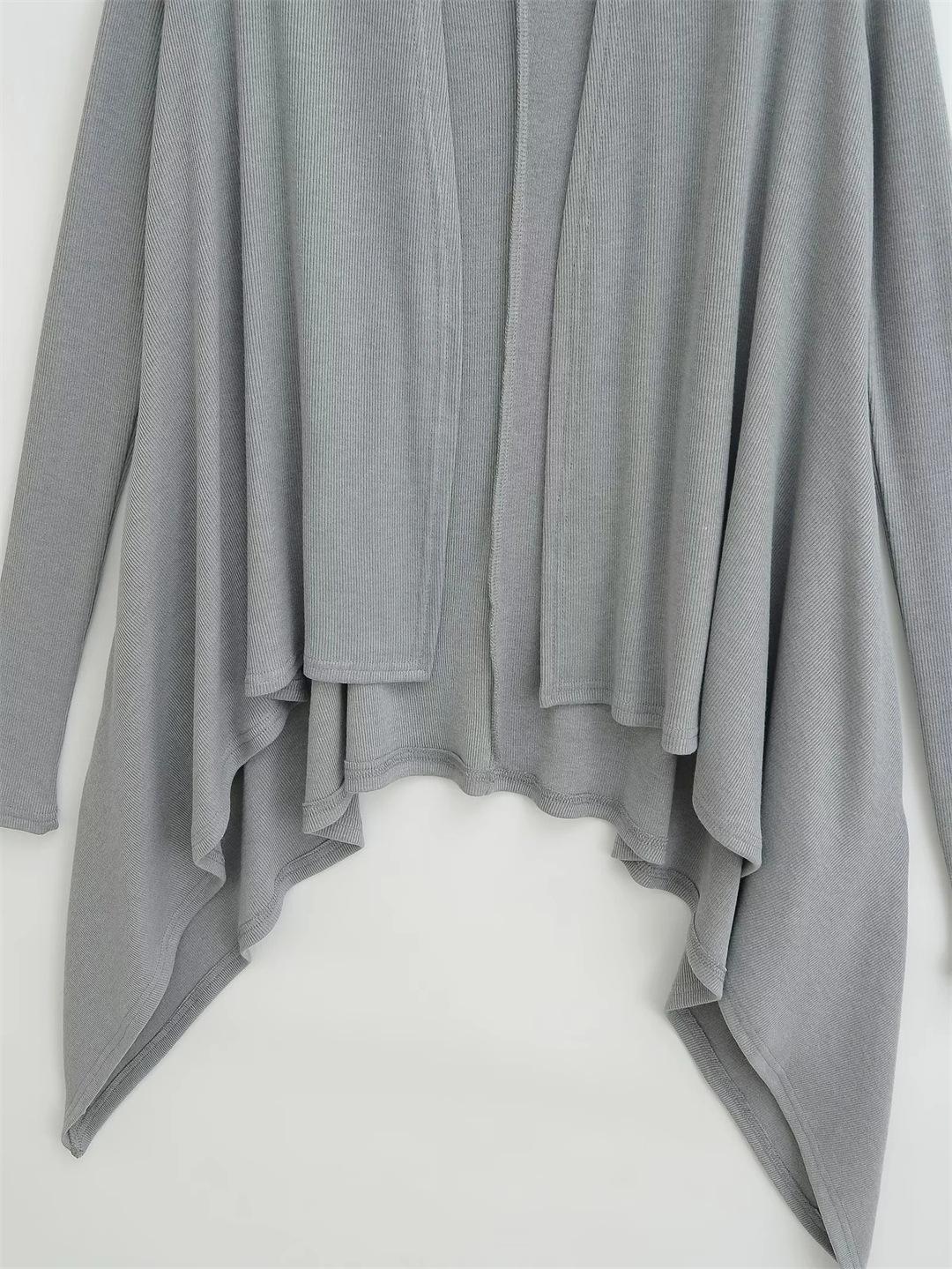 Color Sólido Estilo Perezoso Suelto Manga Larga Chal Grande Top Diseño Sensorial Bajo Irregular Sin Hebilla Cárdigan Chaqueta Exterior