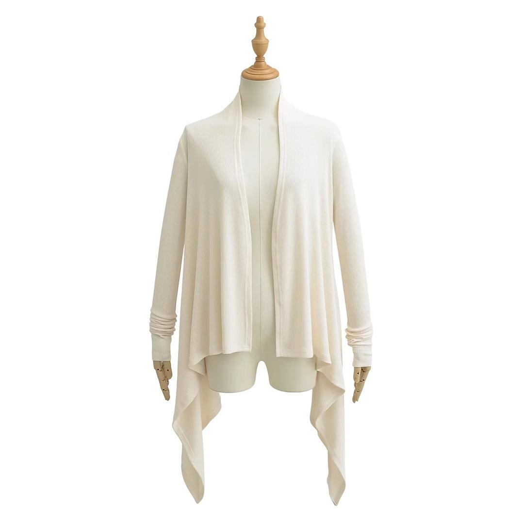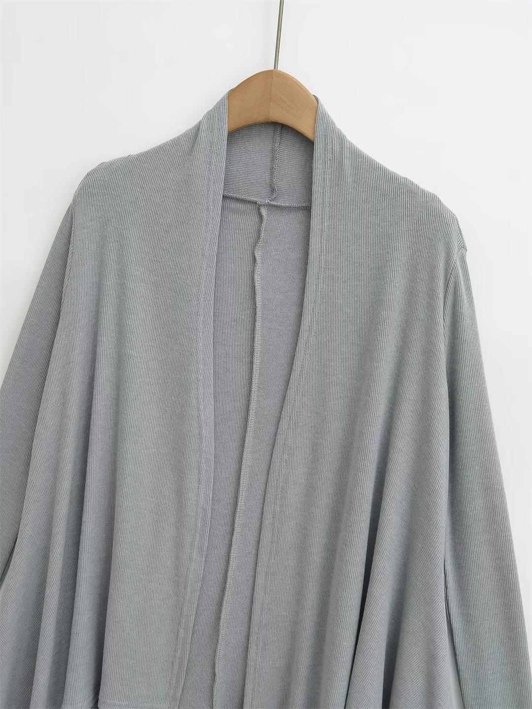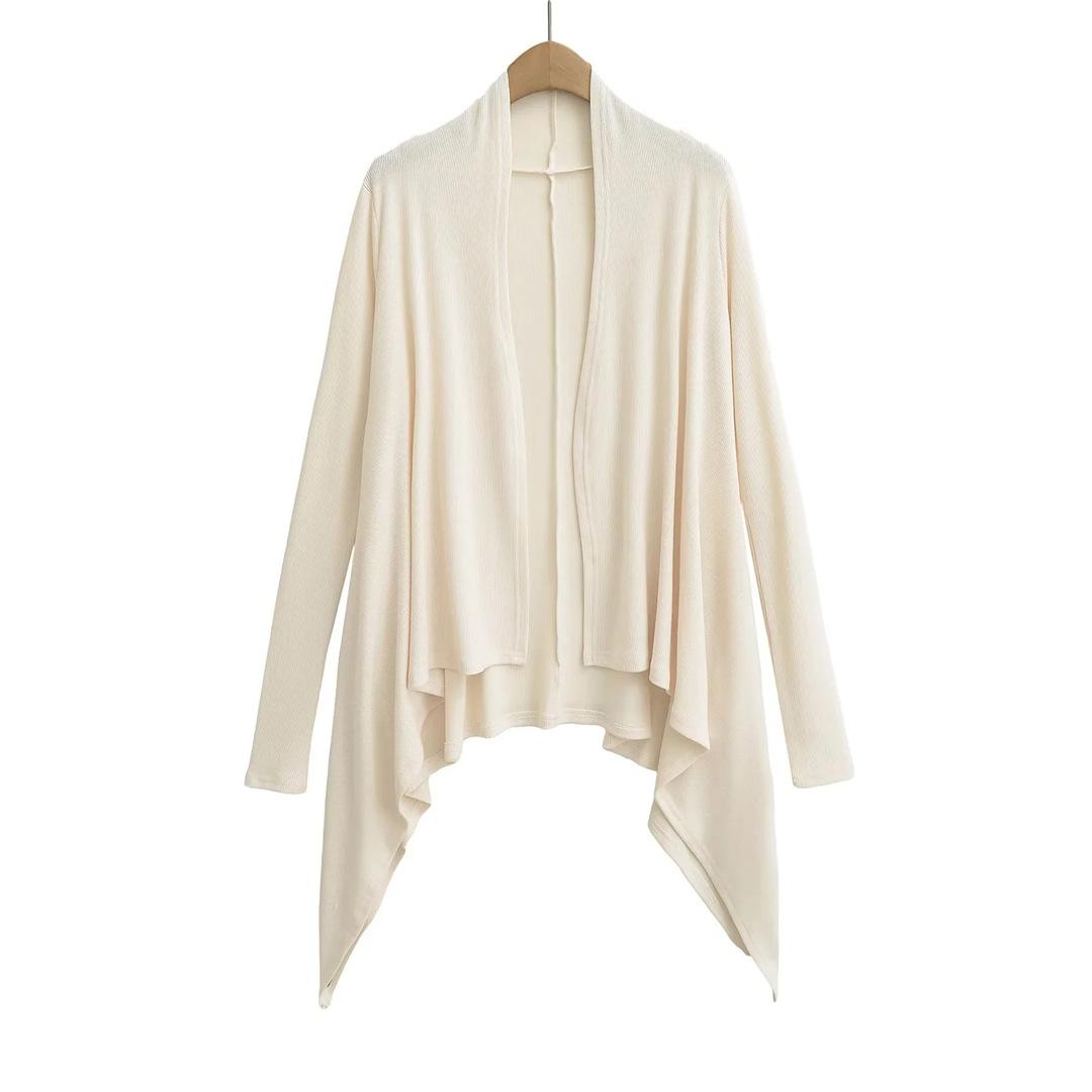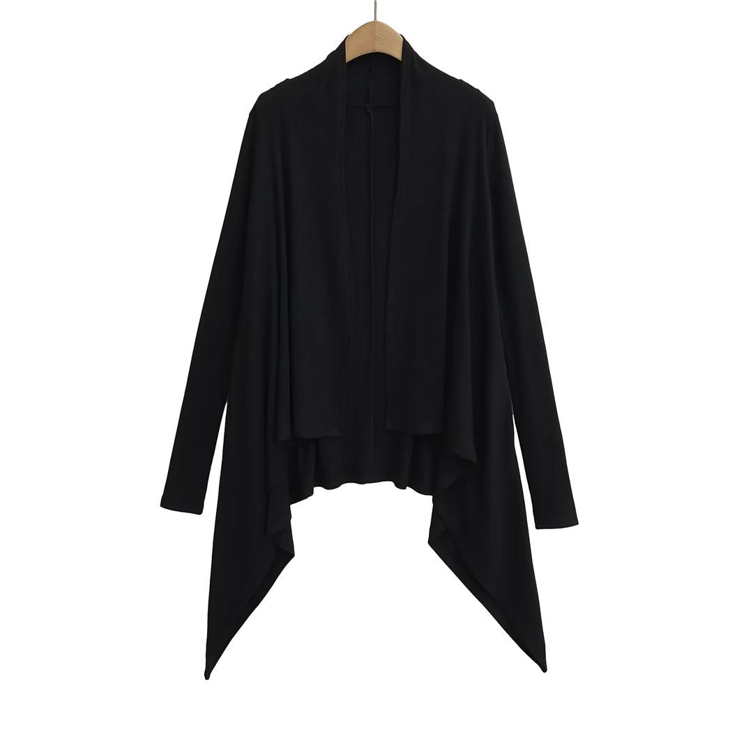 Color Sólido Estilo Perezoso Suelto Manga Larga Chal Grande Top Diseño Sensorial Bajo Irregular Sin Hebilla Cárdigan Chaqueta Exterior