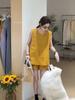 Top chaleco casual de cuello redondo estilo coreano petite para mujer 2025 verano nuevo, pantalones cortos de pierna ancha adelgazantes de cintura alta