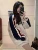 Sudadera con capucha estilo preppy retro americano para hombre y mujer para otoño e invierno, talla grande holgada, para gorditos mm, para pareja, con empalme de colores contrastantes, top moderno