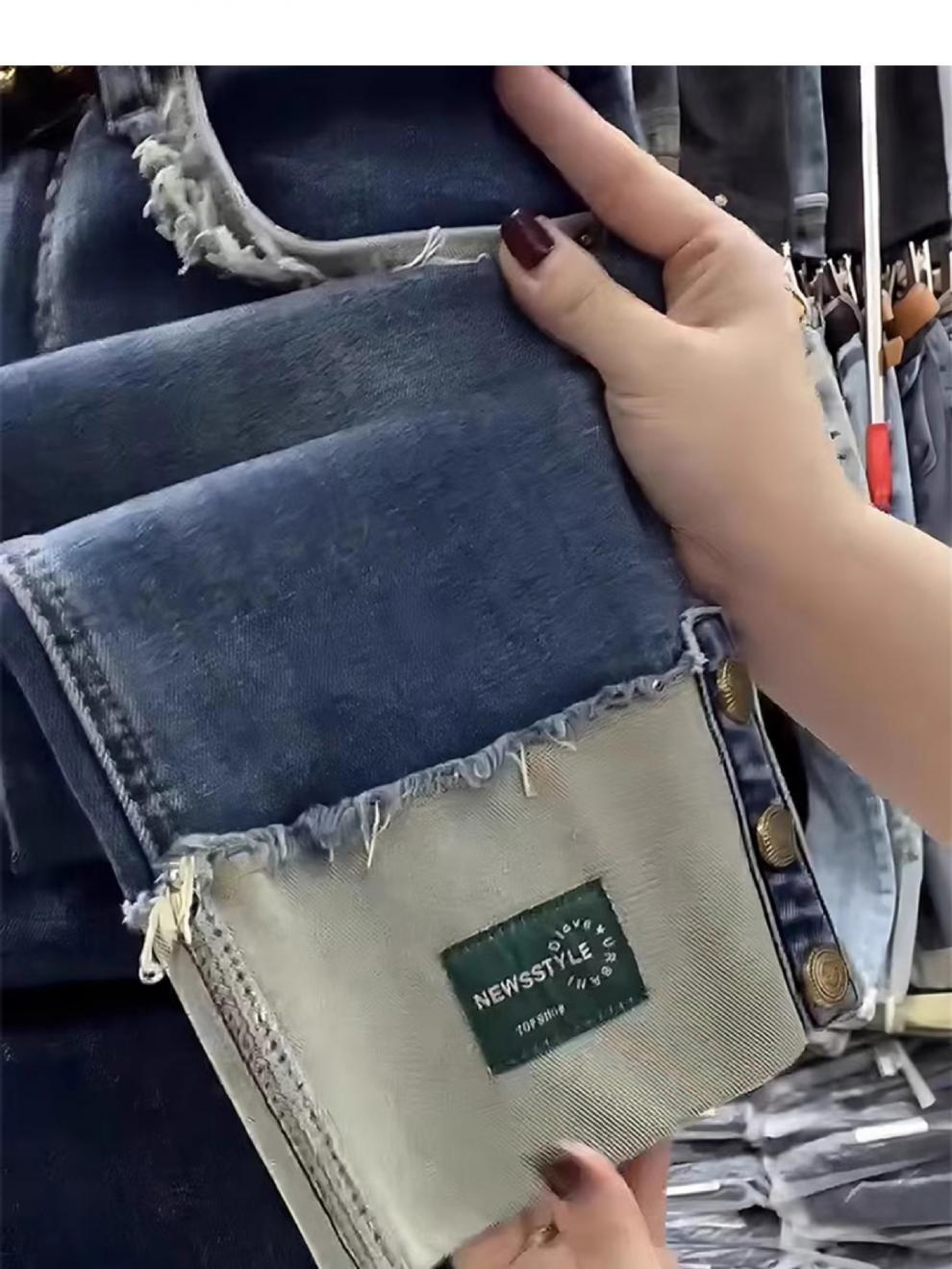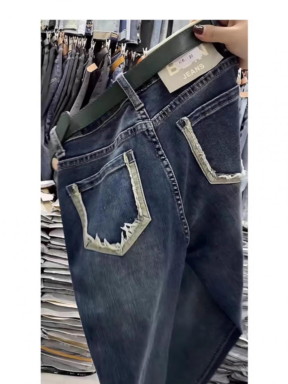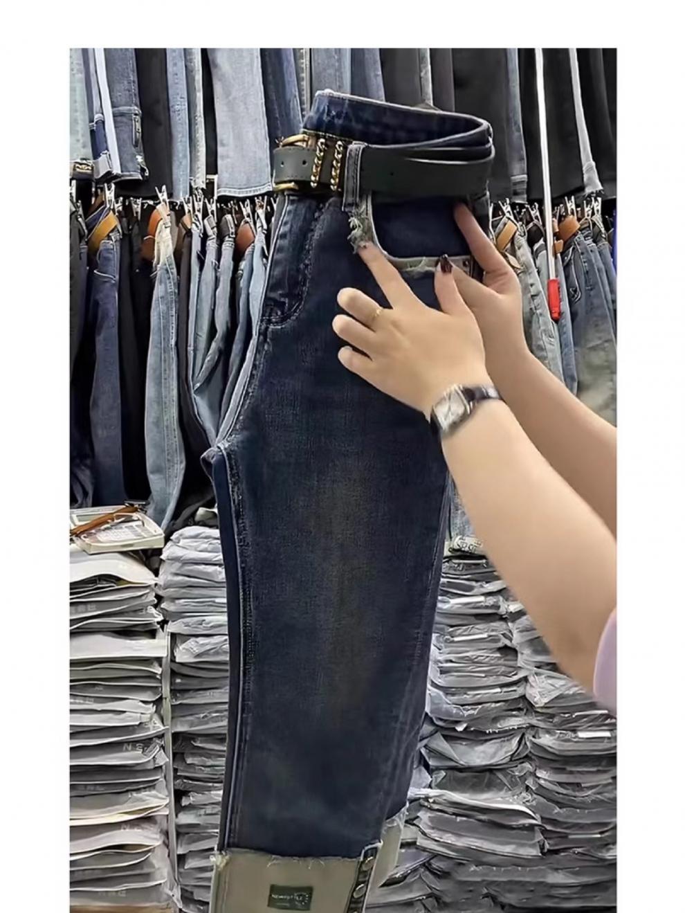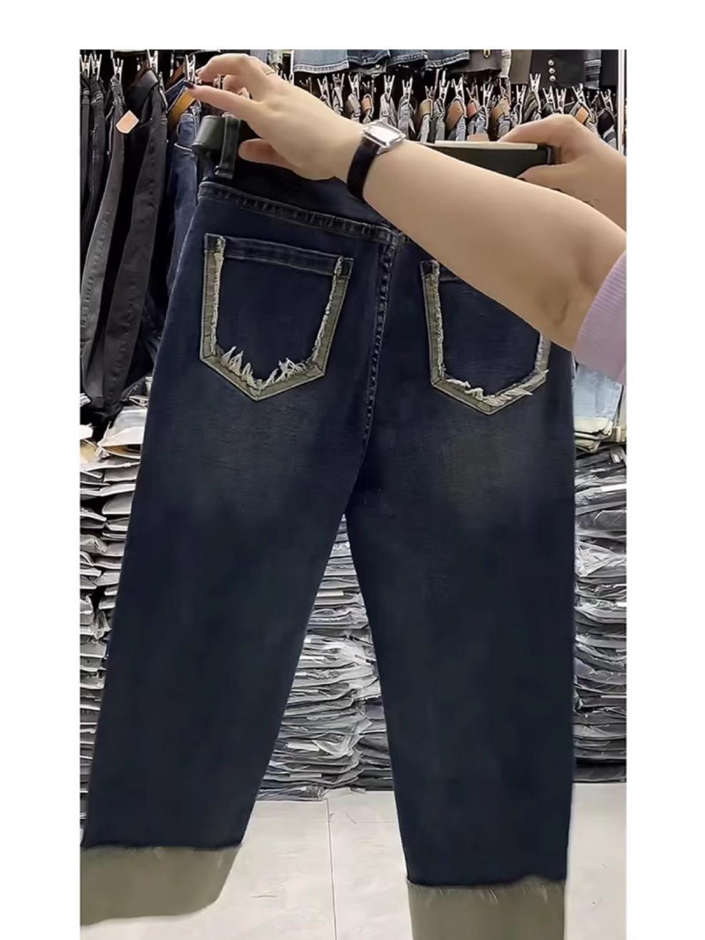 Talla grande Jeans Rectos Elásticos para Mujer Otoño e Invierno chica gordita Forma de Pera Cintura Alta Adelgazantes Pantalones Recortados