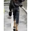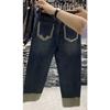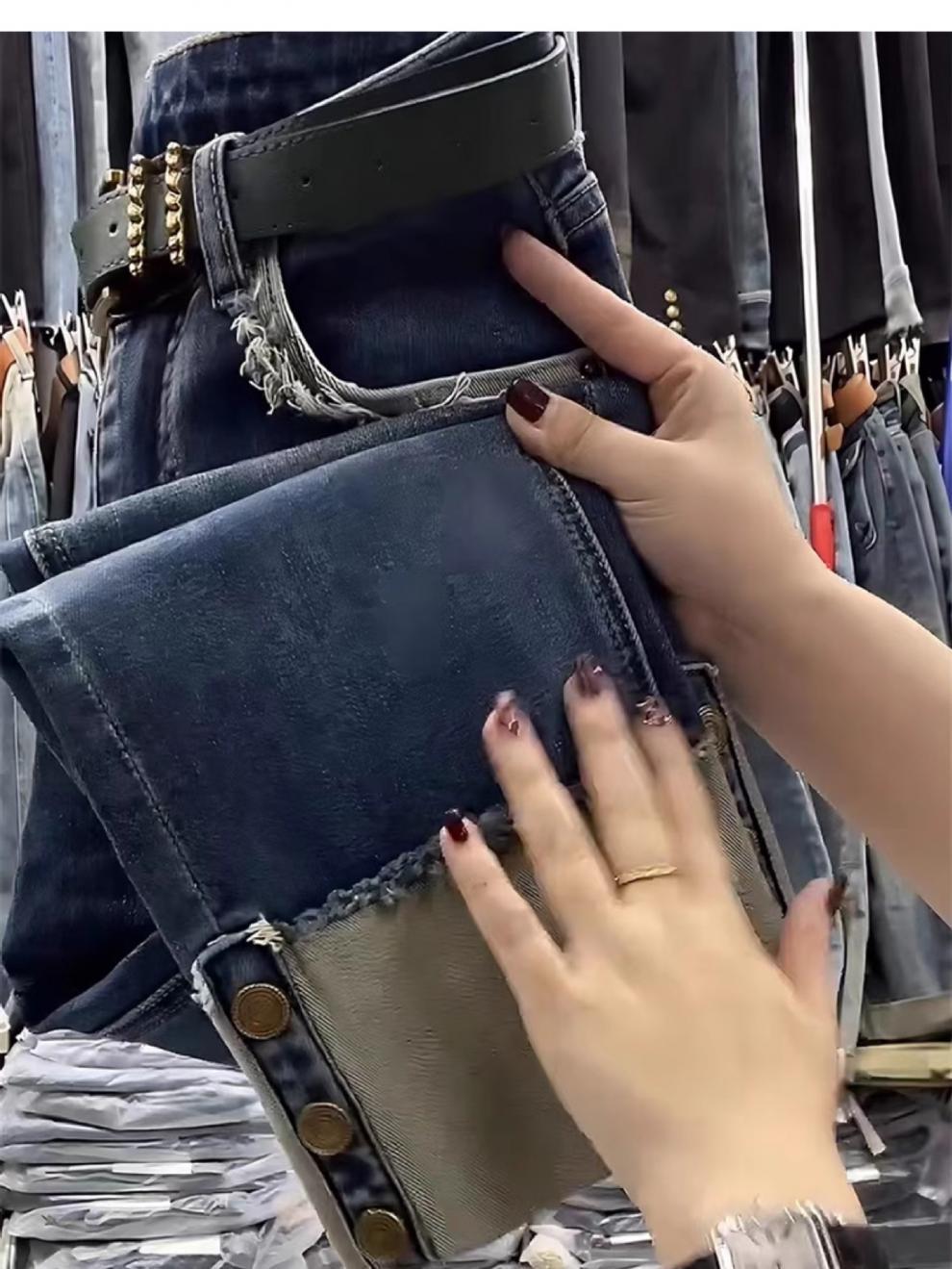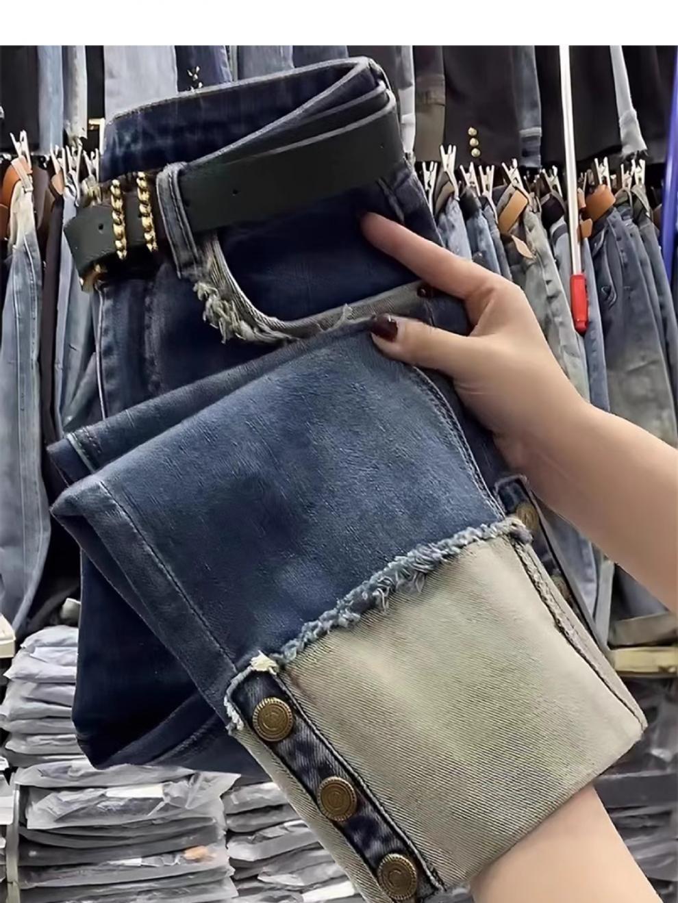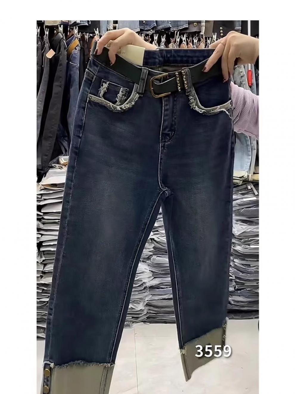 Talla grande Jeans Rectos Elásticos para Mujer Otoño e Invierno chica gordita Forma de Pera Cintura Alta Adelgazantes Pantalones Recortados