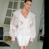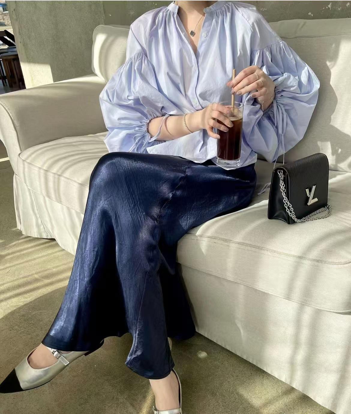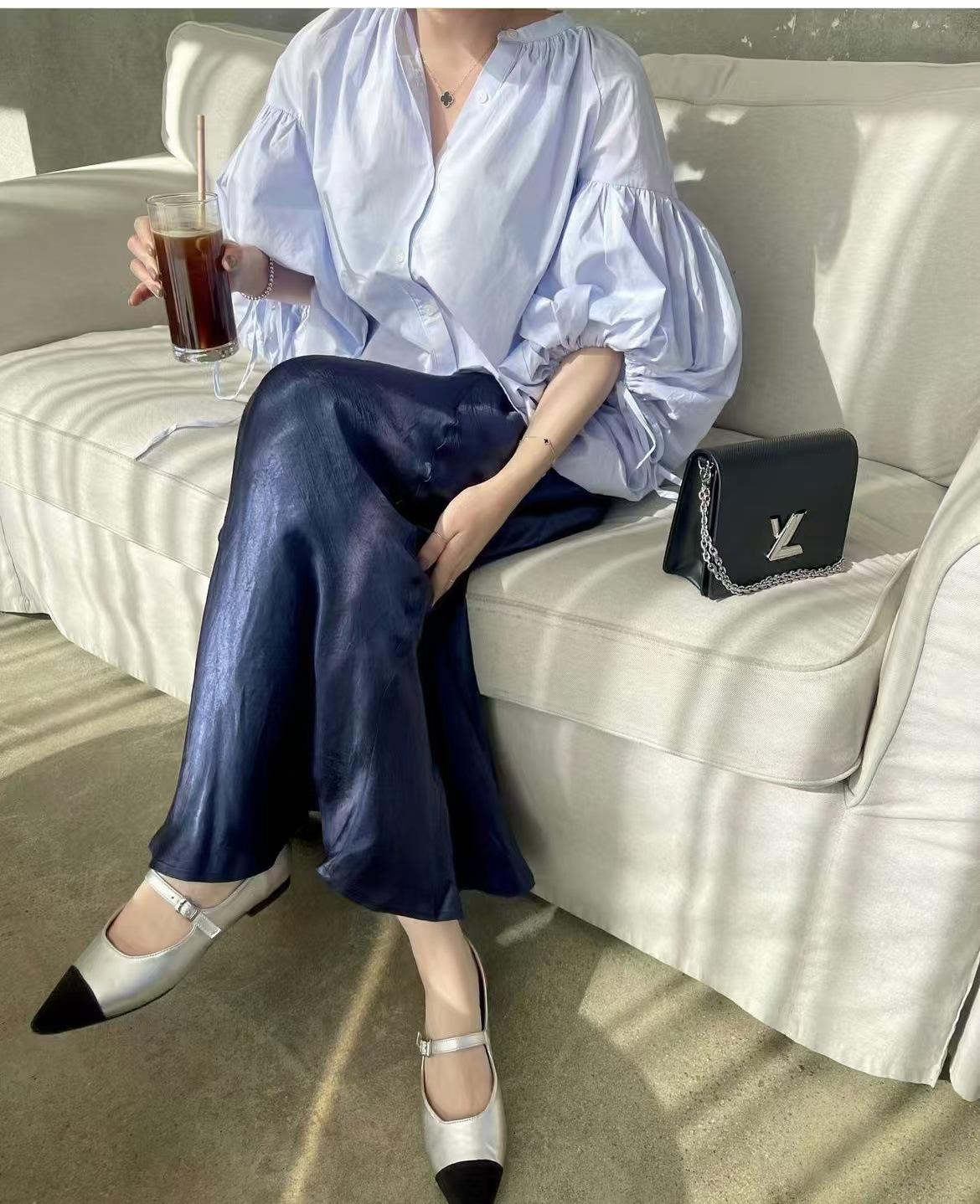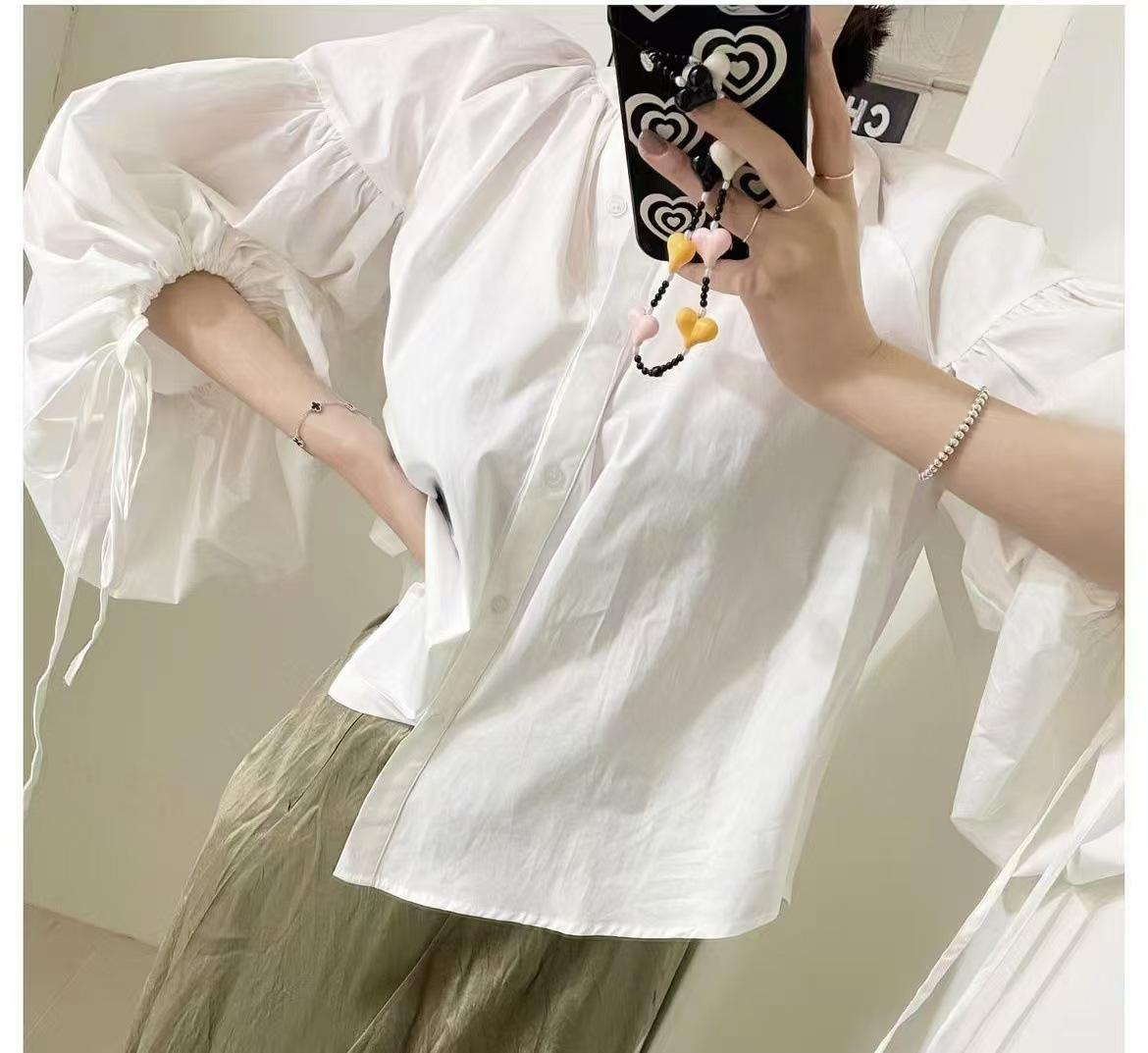 2025 Nueva Moda Diseño Nicho Cuello Redondo Lazo de Botón Pequeño Suelto Versátil Manga Linterna Camisa Top Mujer