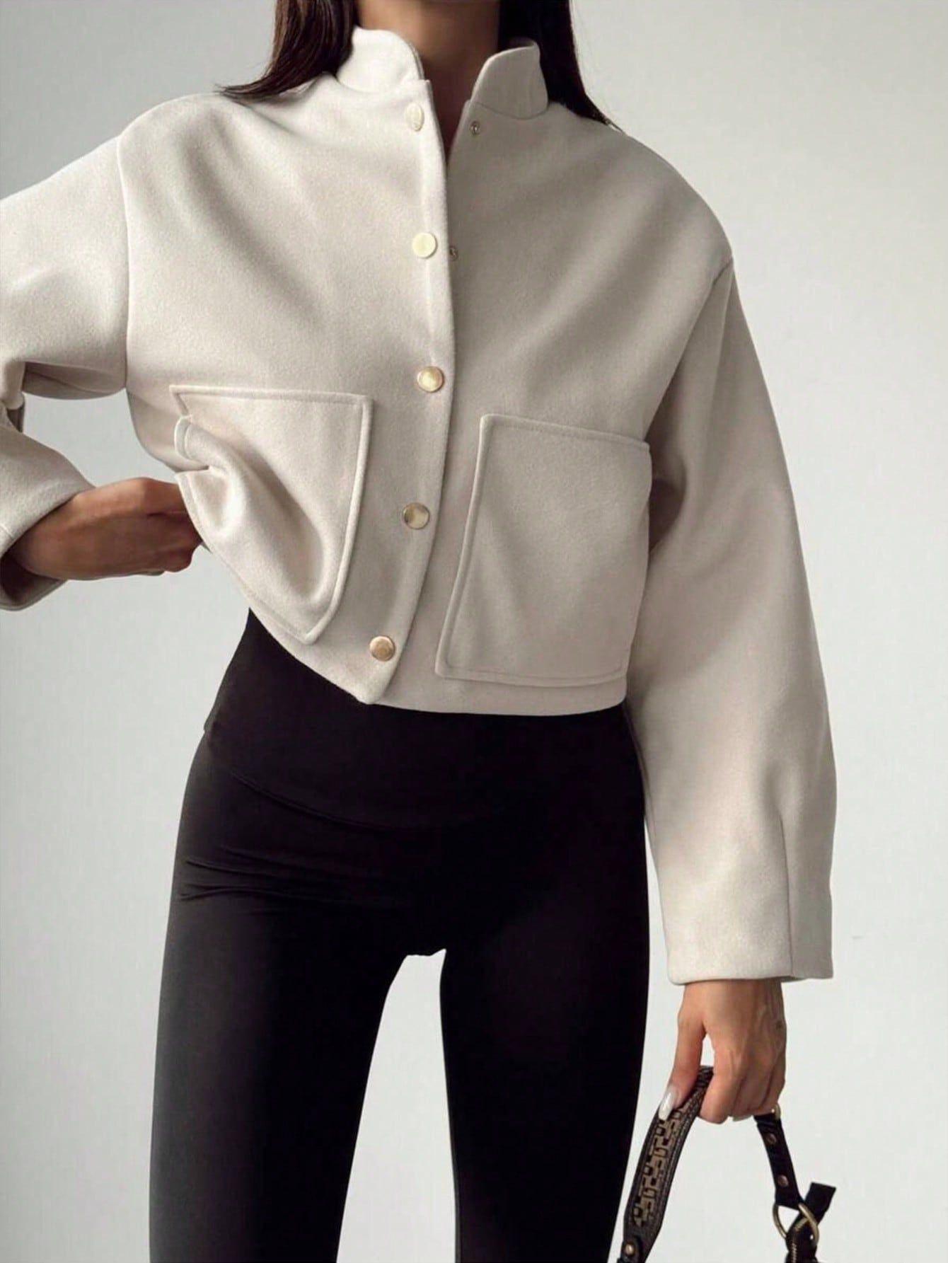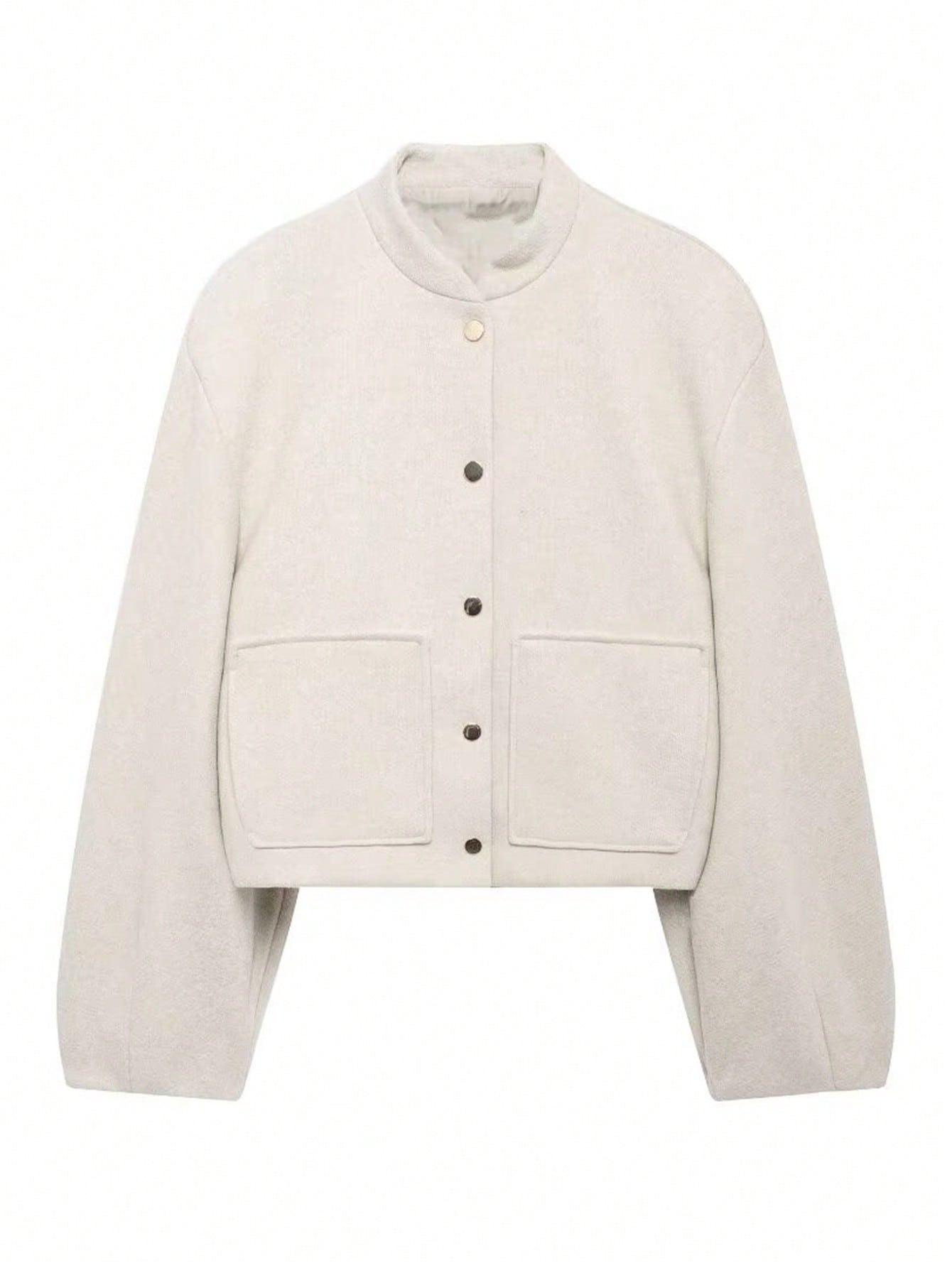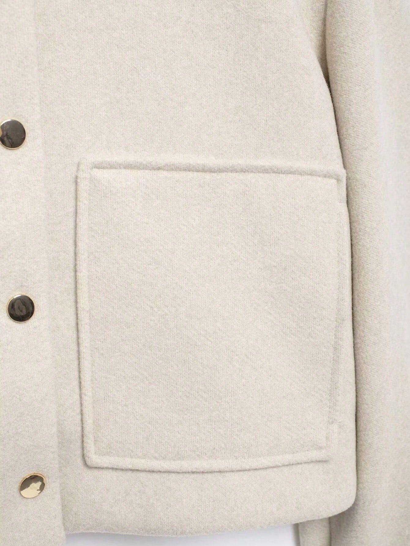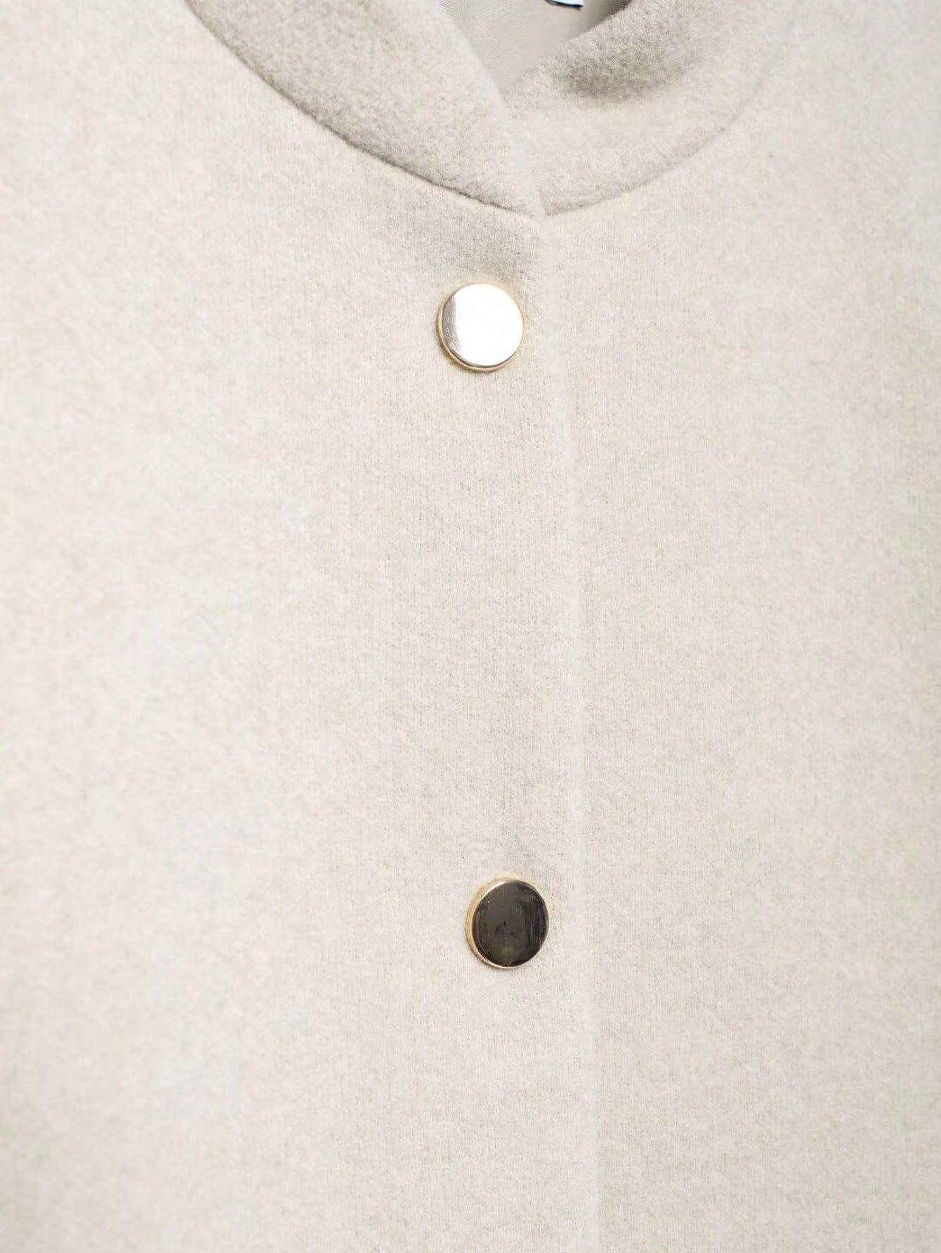 Ropa de Mujer Transfronteriza al Por Mayor Estilo Europeo y Americano Temperamento a la Moda Versátil Chaqueta Imitación Lana con Botón Oculto