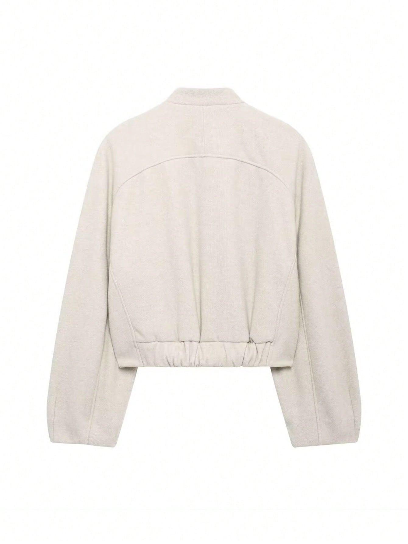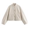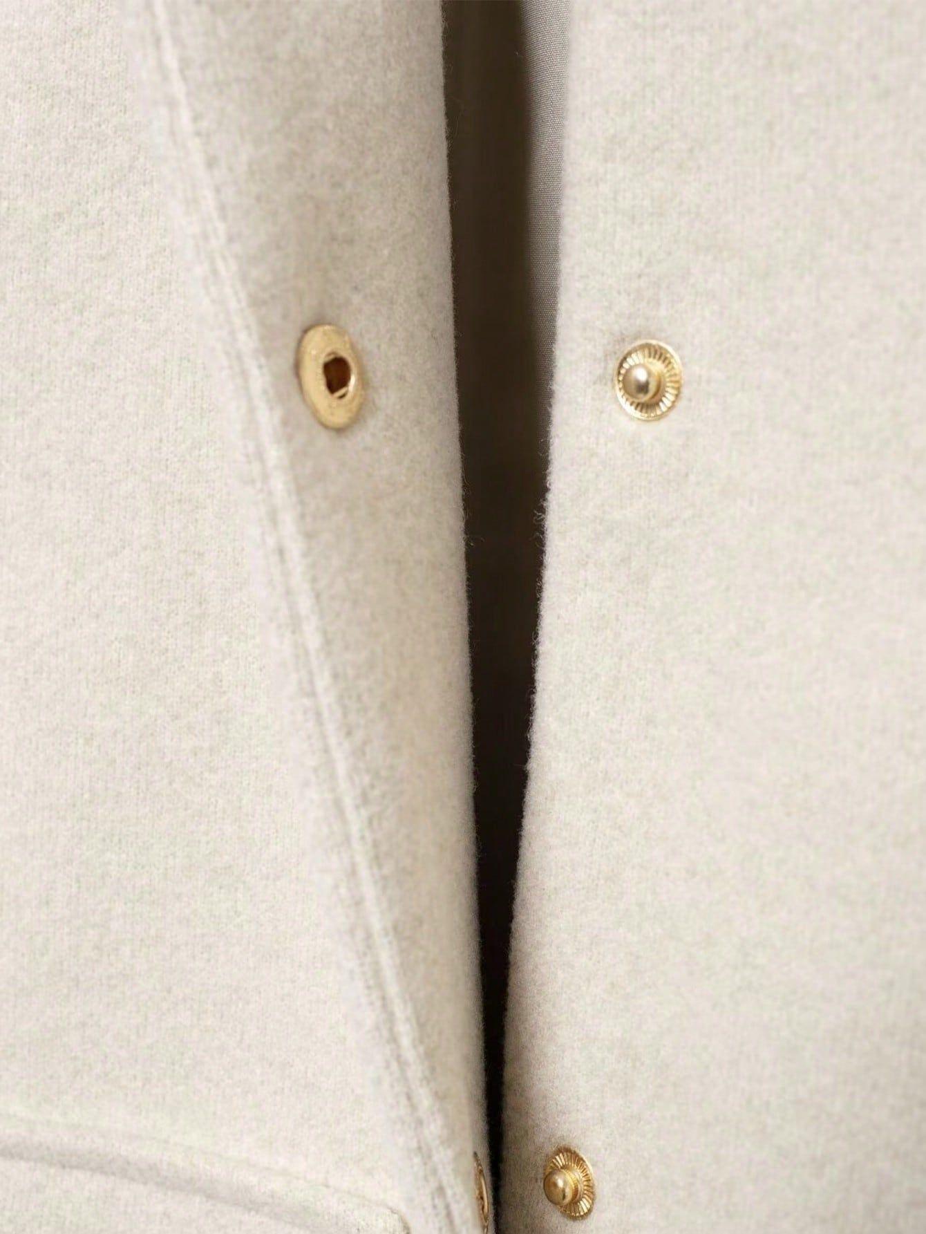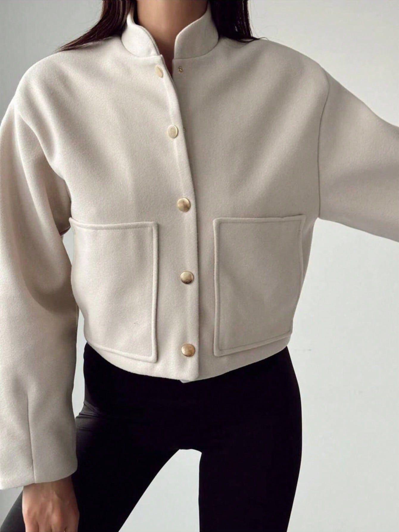 Ropa de Mujer Transfronteriza al Por Mayor Estilo Europeo y Americano Temperamento a la Moda Versátil Chaqueta Imitación Lana con Botón Oculto