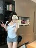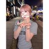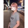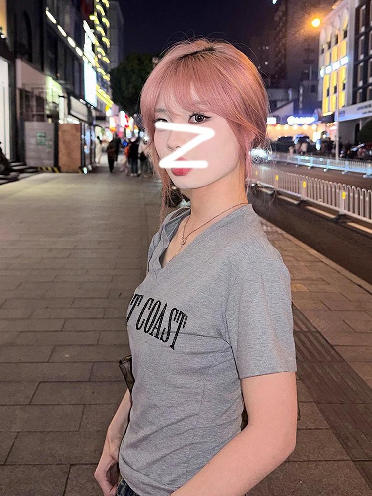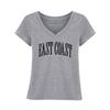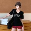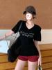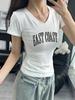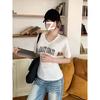 Playera Americana con Estampado de Letras, Cuello en V, Manga Corta con Hombro Derecho Descubierto para Mujer 2025 Verano Nuevo Estilo Europeo y Americano Entallada Sexy