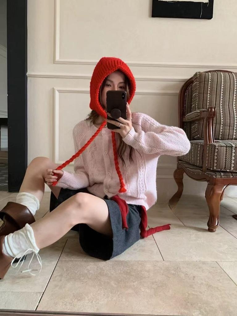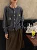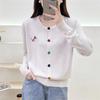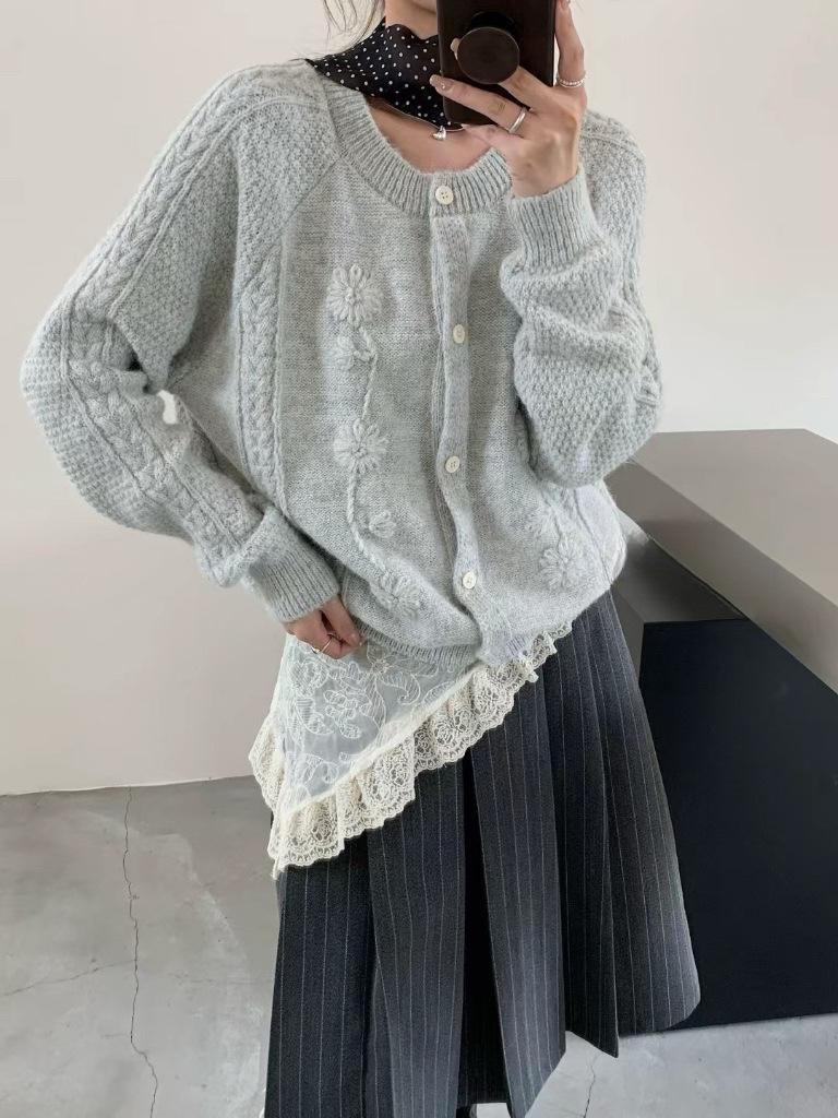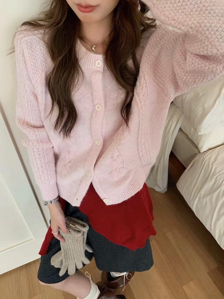 Cárdigan de Punto de Cuello Redondo de Crochet 3D Retro Estilo Coreano para Mujer Otoño 2025 Casual Suéter Abrigo Reductor de Edad