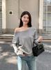 Nueva Camiseta Holgada Perezosa de Primavera y Otoño con Hombro Caído de Manga Larga y Hombros Descubiertos para Mujer Relajada Chica Sexy Temperamento Único Top