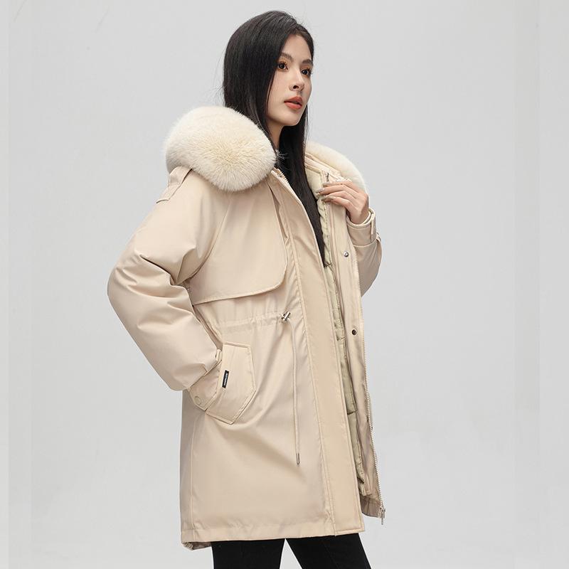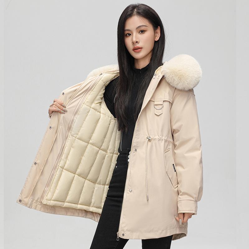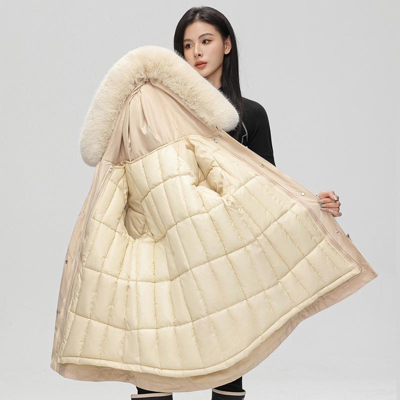 Parker para Mujer 2025 Invierno Nuevo Parker para Mujer con Capucha Versátil Cuello de Piel Desmontable Una Pieza Tres Usos Chaqueta para Mujer