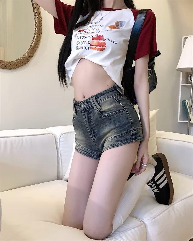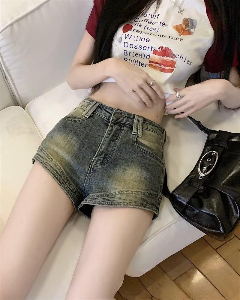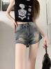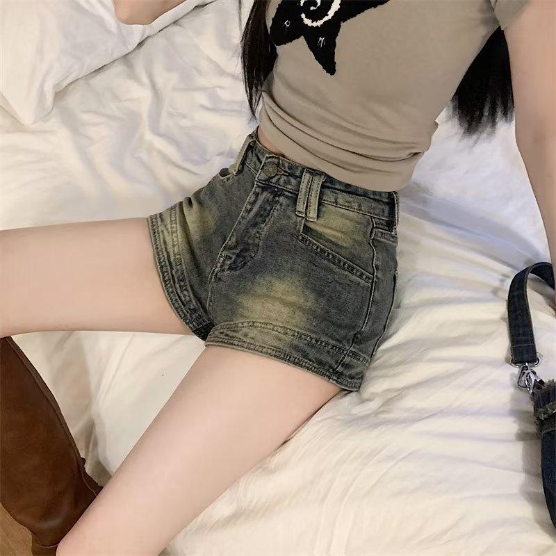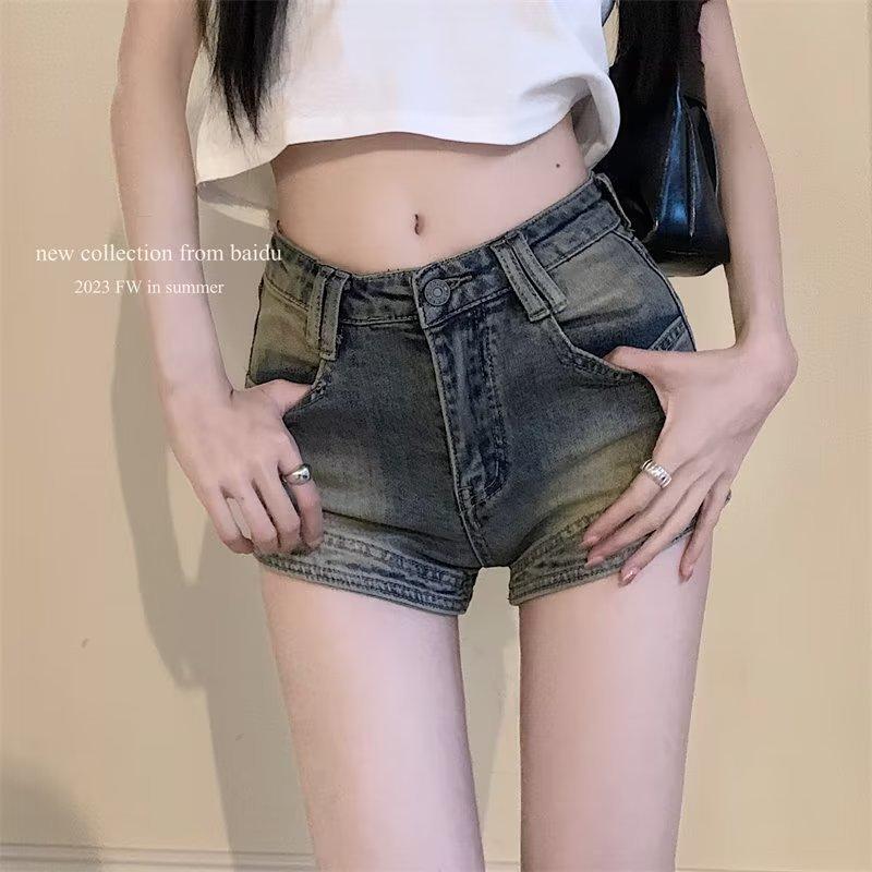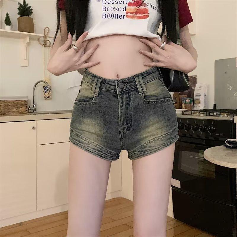Pantalones Cortos Hot para Chica Pantalones Cortos de Mezclilla Desgastados Americanos Retro para Mujer Verano Pequeños de Cintura Alta Elásticos para Fondo Cadera