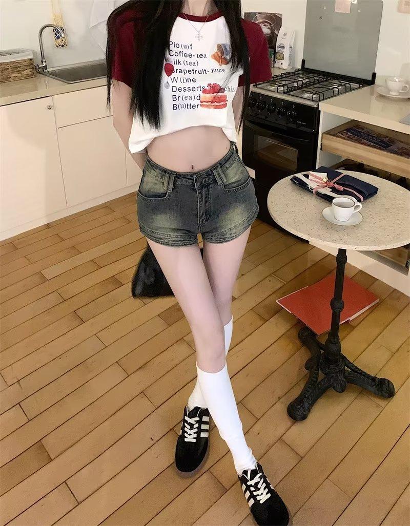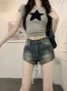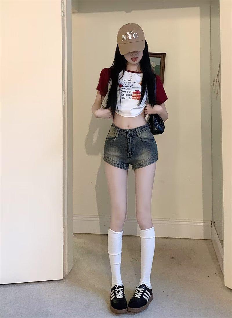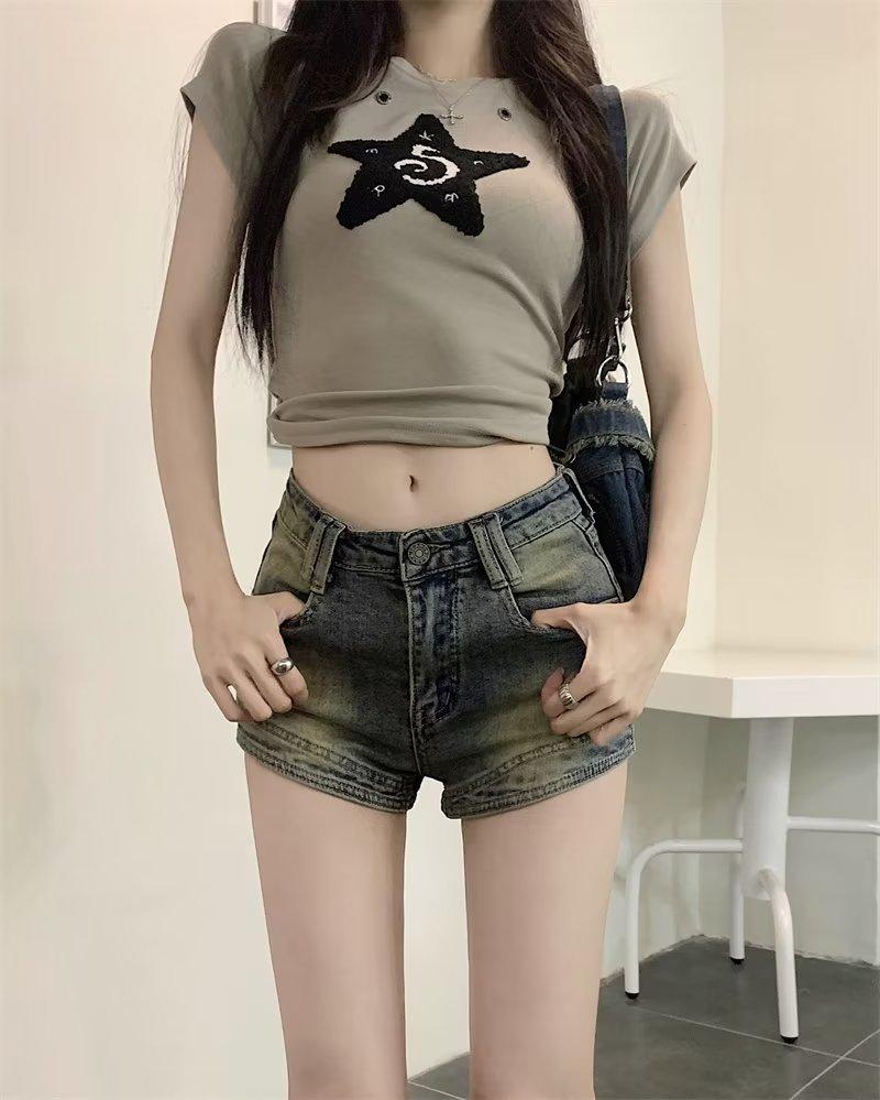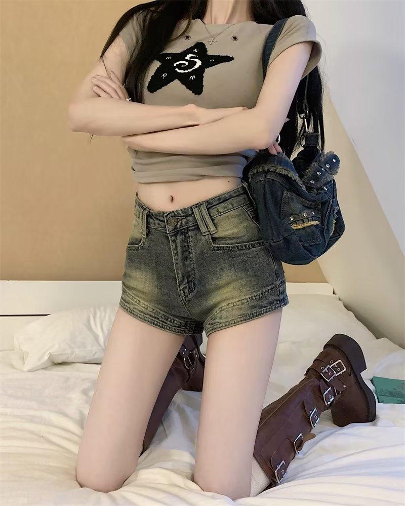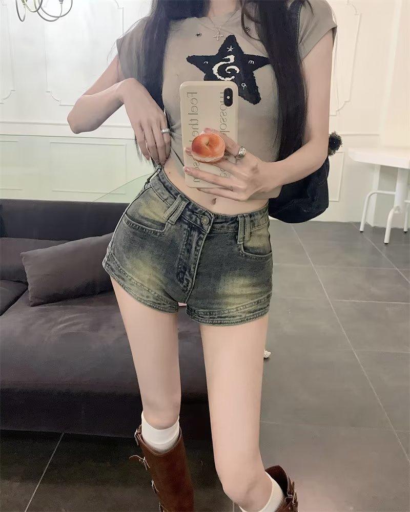 Pantalones Cortos Hot para Chica Pantalones Cortos de Mezclilla Desgastados Americanos Retro para Mujer Verano Pequeños de Cintura Alta Elásticos para Fondo Cadera