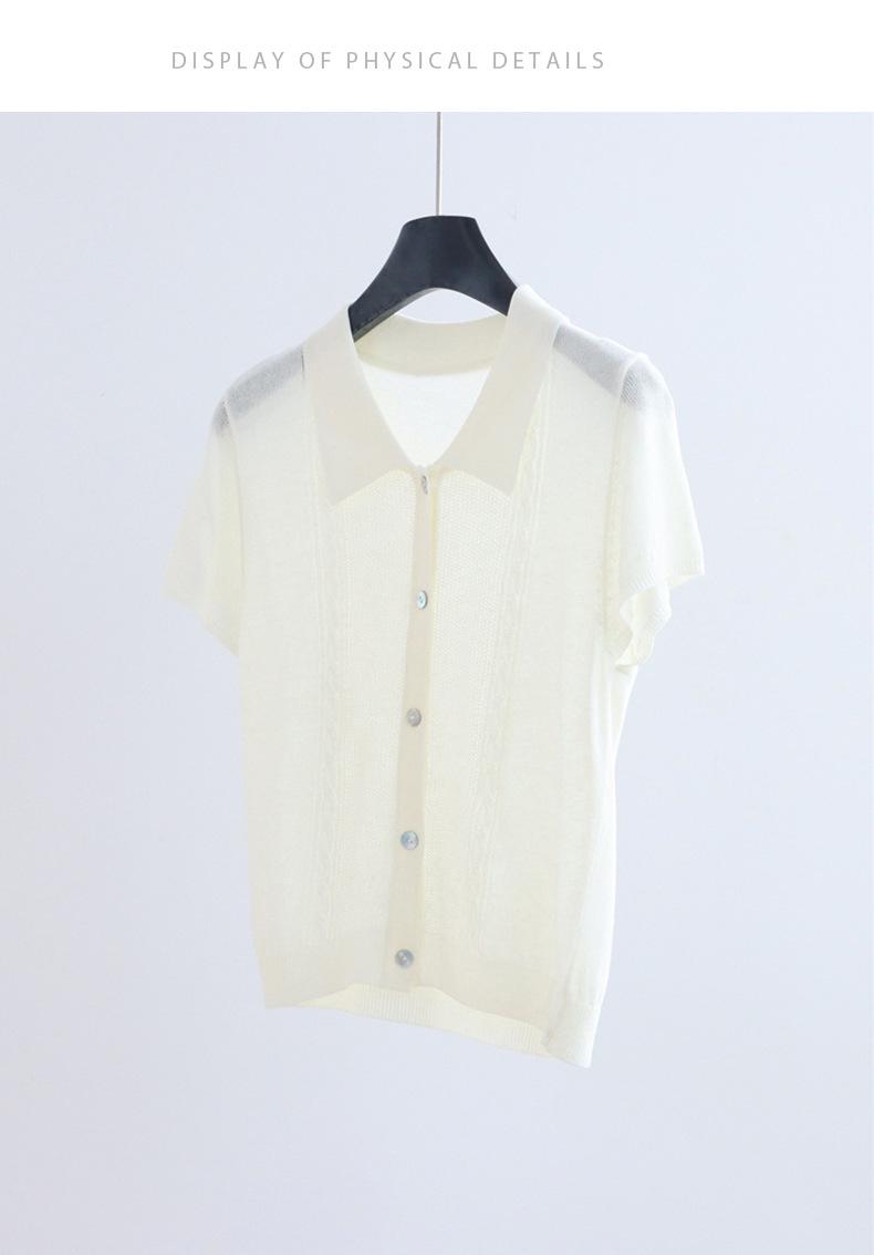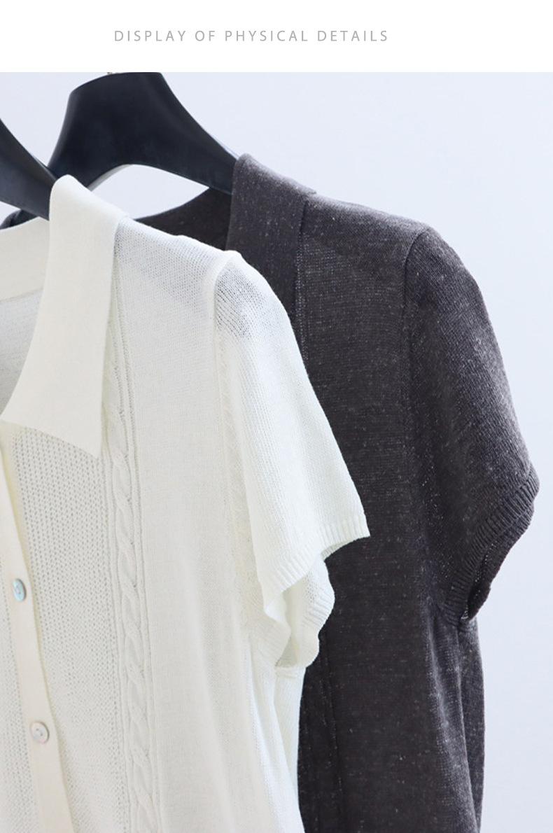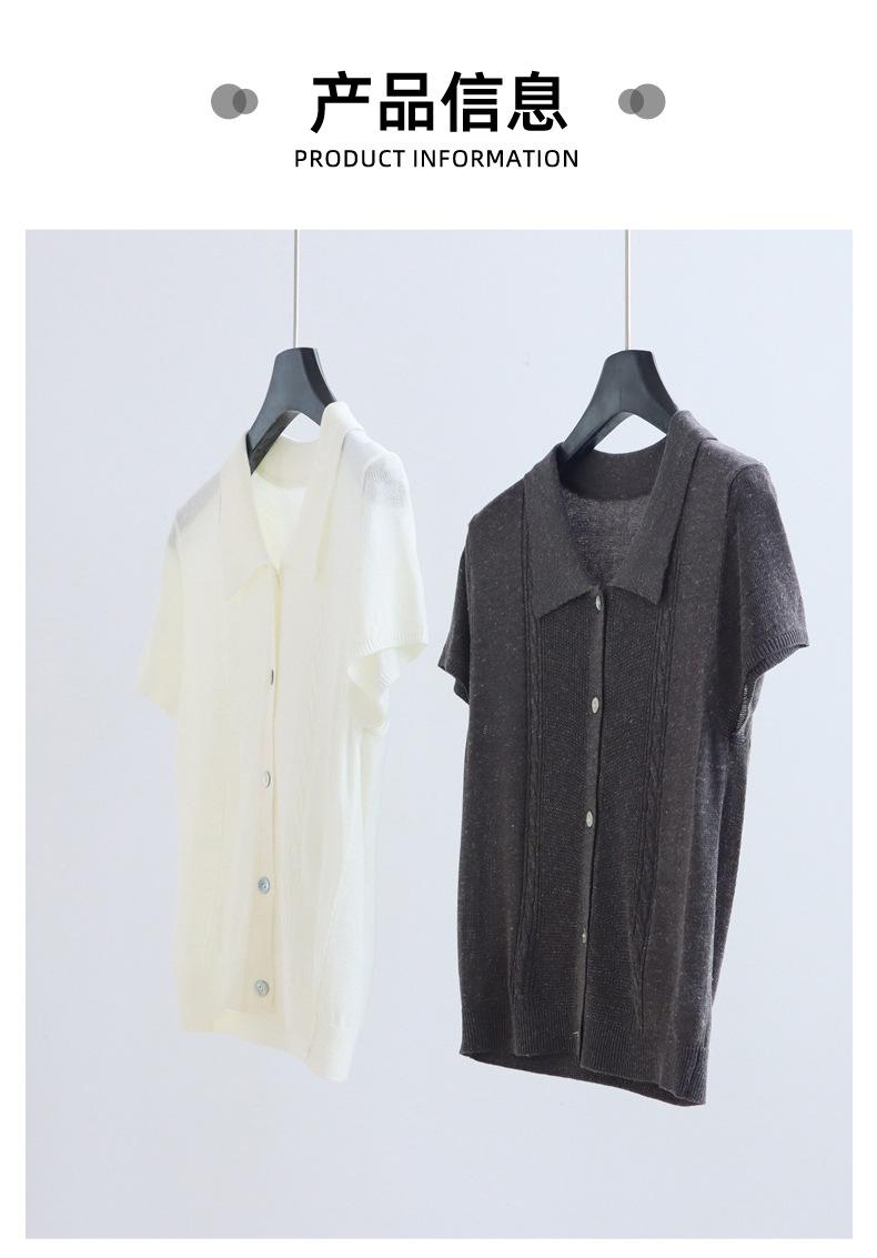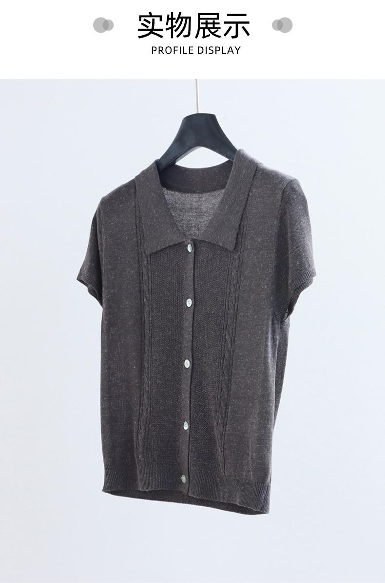 Cárdigan de Punto de Manga Corta de Lino Lyocell Estilo Verano para Mujer, Slim y Versátil, Top de Punto con Solapa Ligero y Fresco