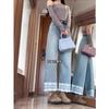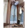 Jeans Retro Azules de Talla Grande para Mujer Verano 2025 Gordo mm Suelto Cintura Alta Slim Rectos Pierna Ancha Pantalones Nueve Puntos